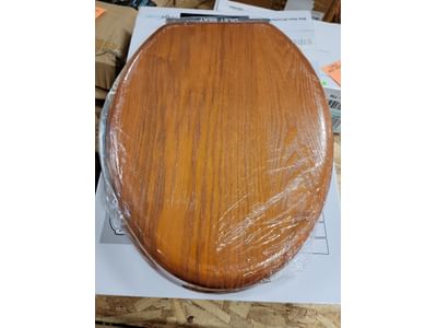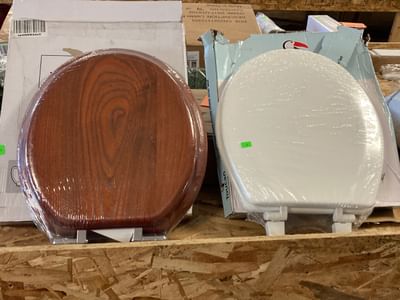 10 2-Toilet seats-1 round white/ crack on seat, 1 round wood toilet seat