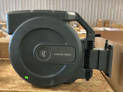 24 Giraffe Tools Retractable Hose Reel 5/8 inch x 90 ft Wall Mounted Garden Hose Reel Heavy Duty with Automatic Rewind, 180 Deg Swivel Bracket, Any Length Lock,