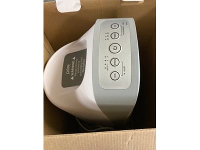 35 8 1/2” Tall white tumbler with broken lid,no brand