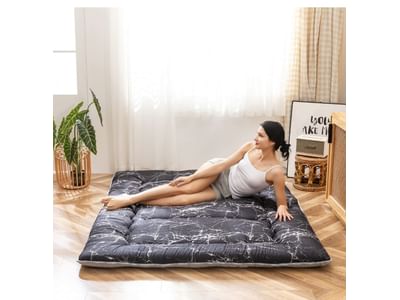 107 Black Marble Printed Japanese Futon Floor Mattress King Size