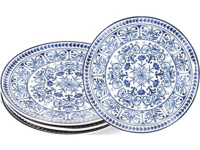 110 Sonemone 8.75 inch Ceramic Salad Plates Set of 4, Blue Marrakesh Tile Floral Round Plates, for Salad, Appetizer, Pasta, Pancakes, Steak Microwave & Dishwasher Safe