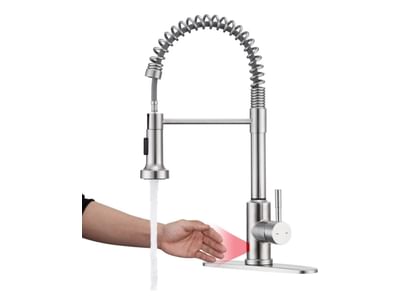 138 Touchless Kitchen Faucets with Pull Down Sprayer, Infrared Motion Brushed Nickel Spring Sink Faucets with 10'' Deck Plate, Single Handle Stainless Steel Sink Faucet Suit to 1 or 3 Holes Countertop