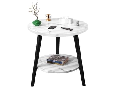 1532 Toys In The Box, Round Coffee Table, Accent Table Sofa Table, Tea Table with Storage, 2-Tier for Living Room, Office Desk, Balcony, Wood Desktop and Metal Legs, Black 27.6 Inches