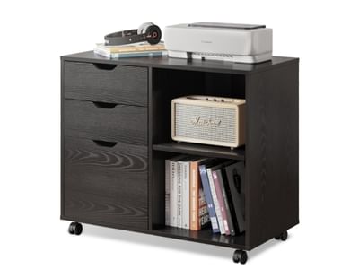 1562 Urbundy Low Dresser For Bedroom with Fabric Covered Wood Storage Drawers - Unique Modern Design Chest Of Drawers For Bedroom, Livingroom & Closet - Also use as TV Stand for Bed Room (Black & Rustic Brown)