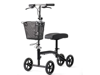 1564 Win Love Black Steerable Knee Walker Roller Scooter with Basket Dual Braking System for Angle and Injured Foot Broken Economy Mobility