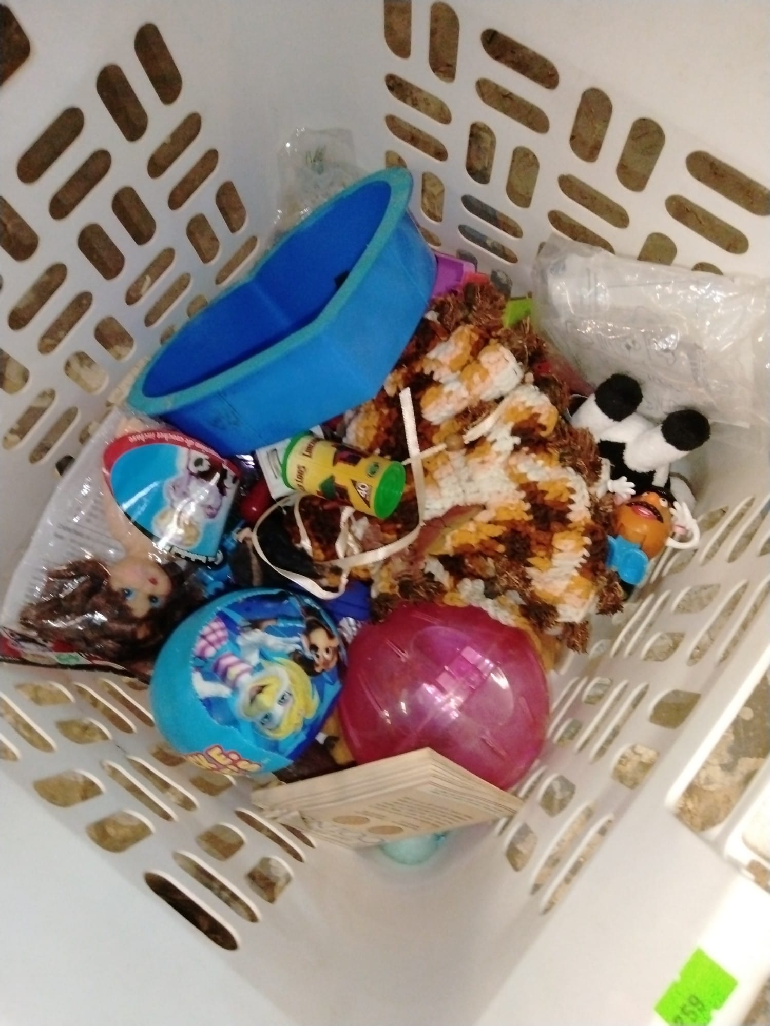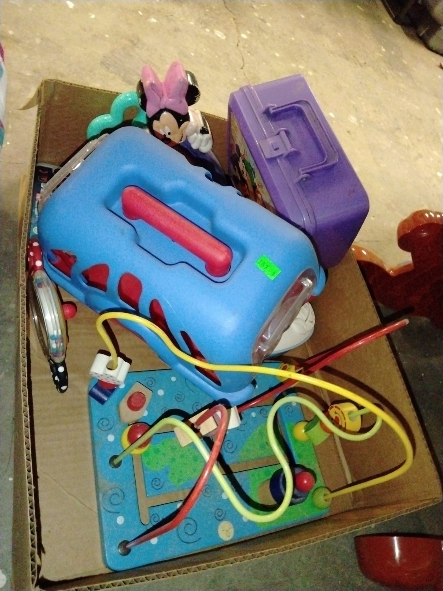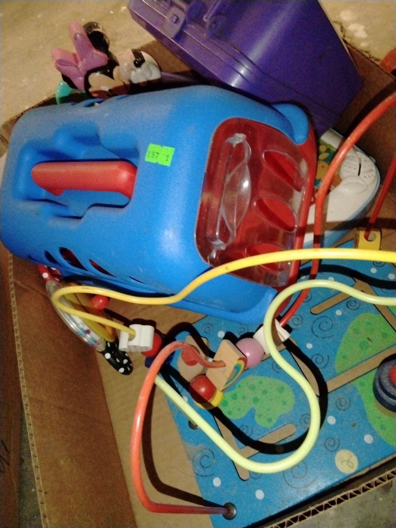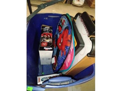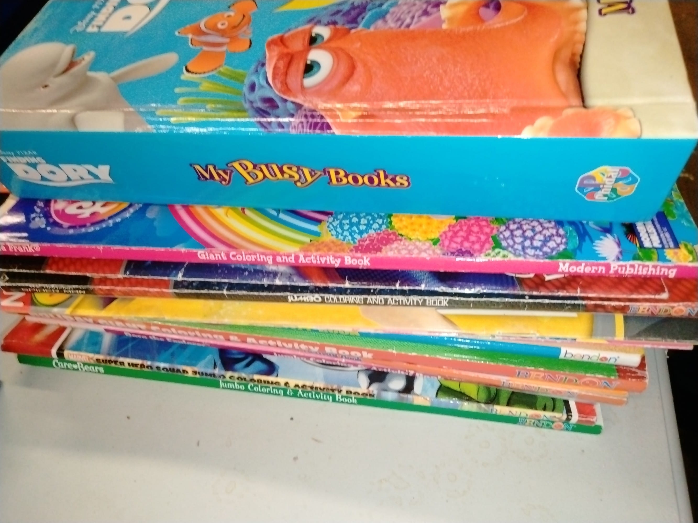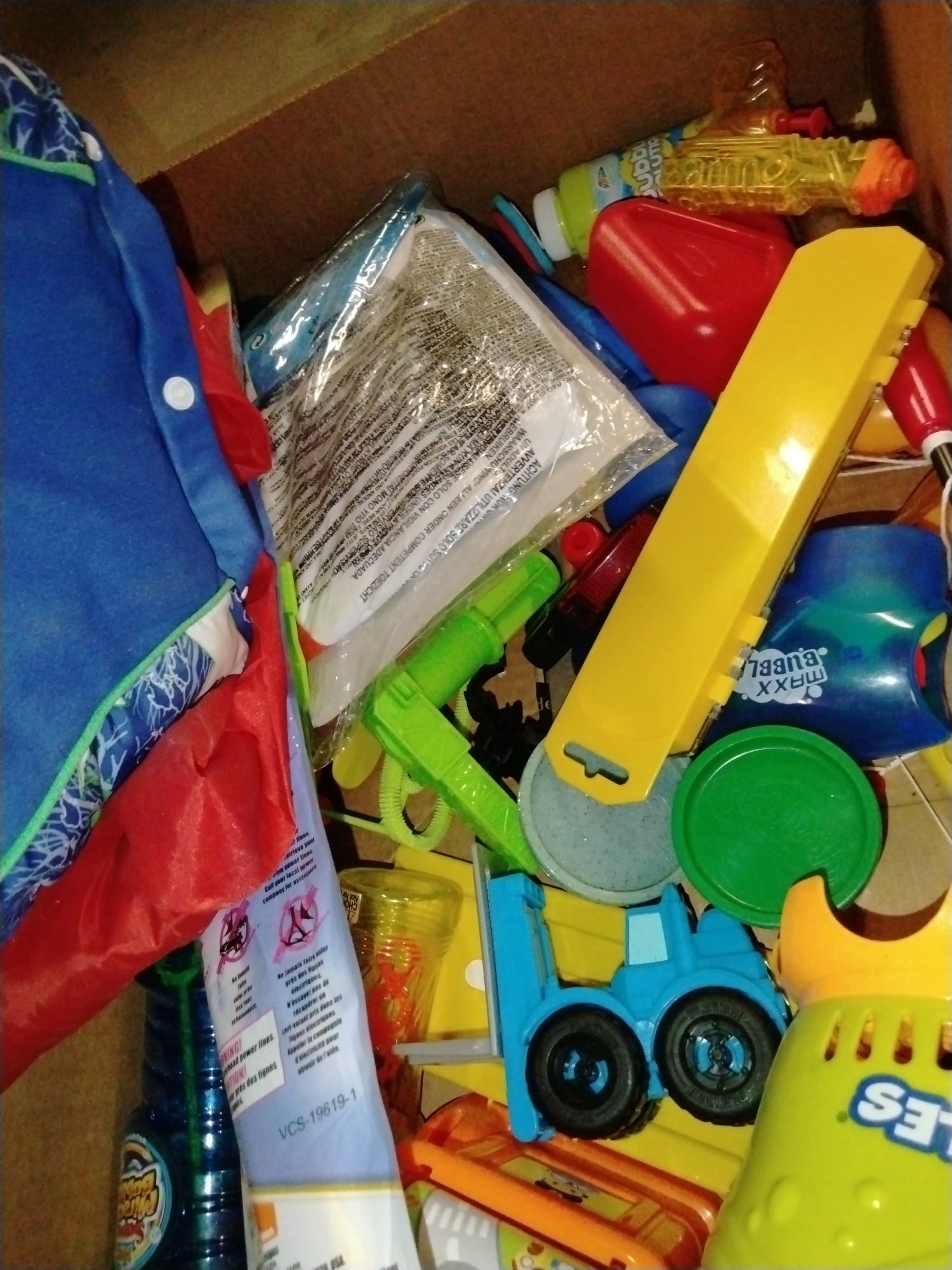 145 Child’s Tote, coloring book, art box, cap gun, miscellaneous