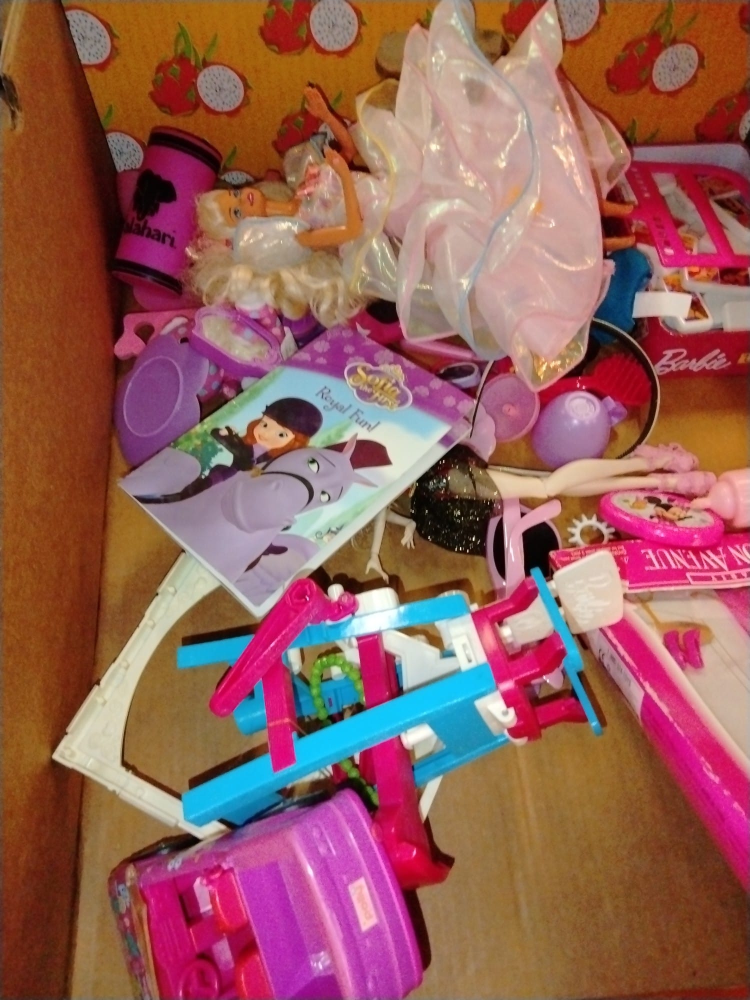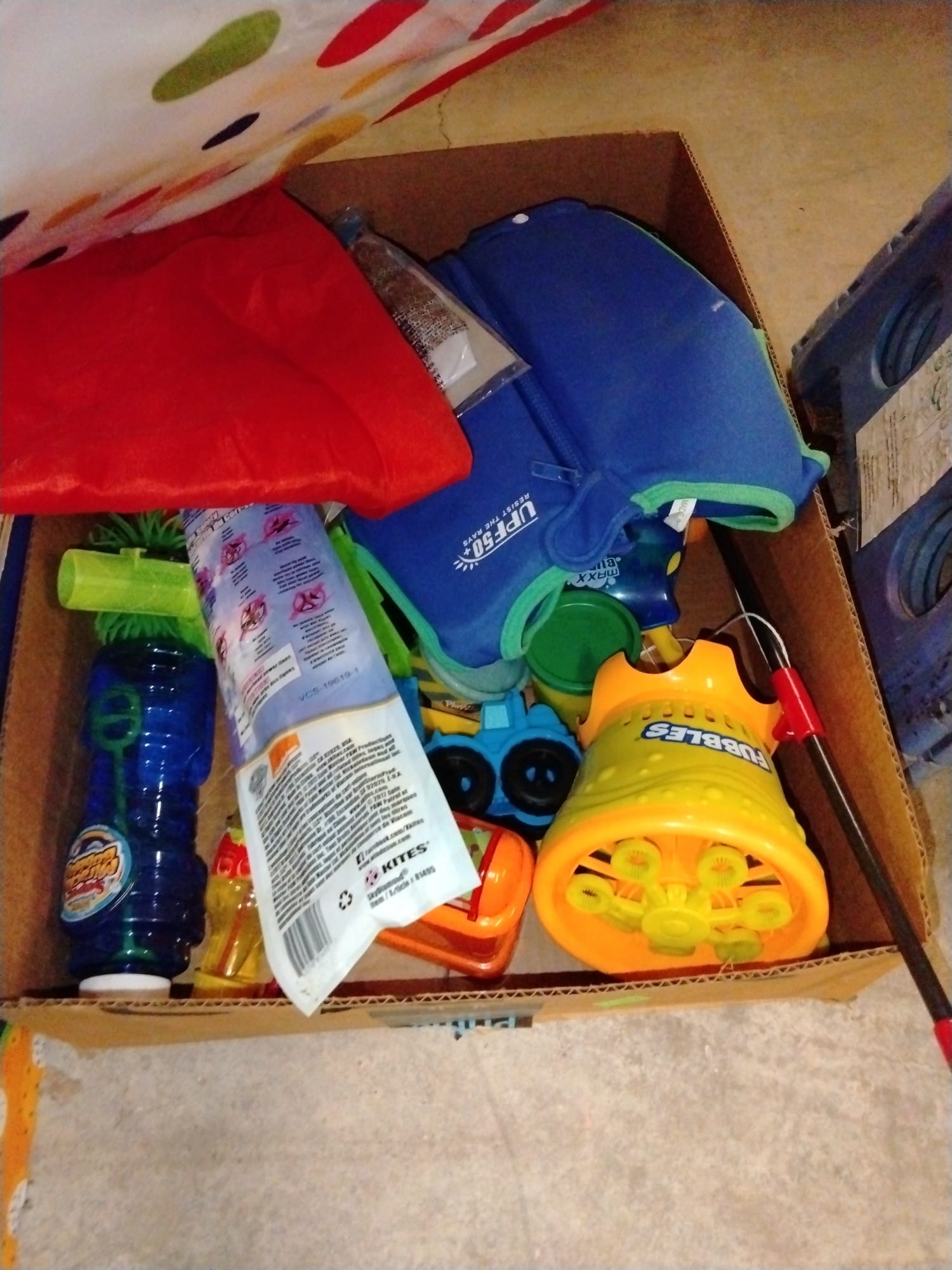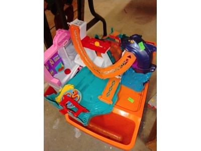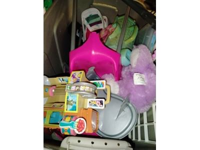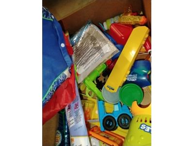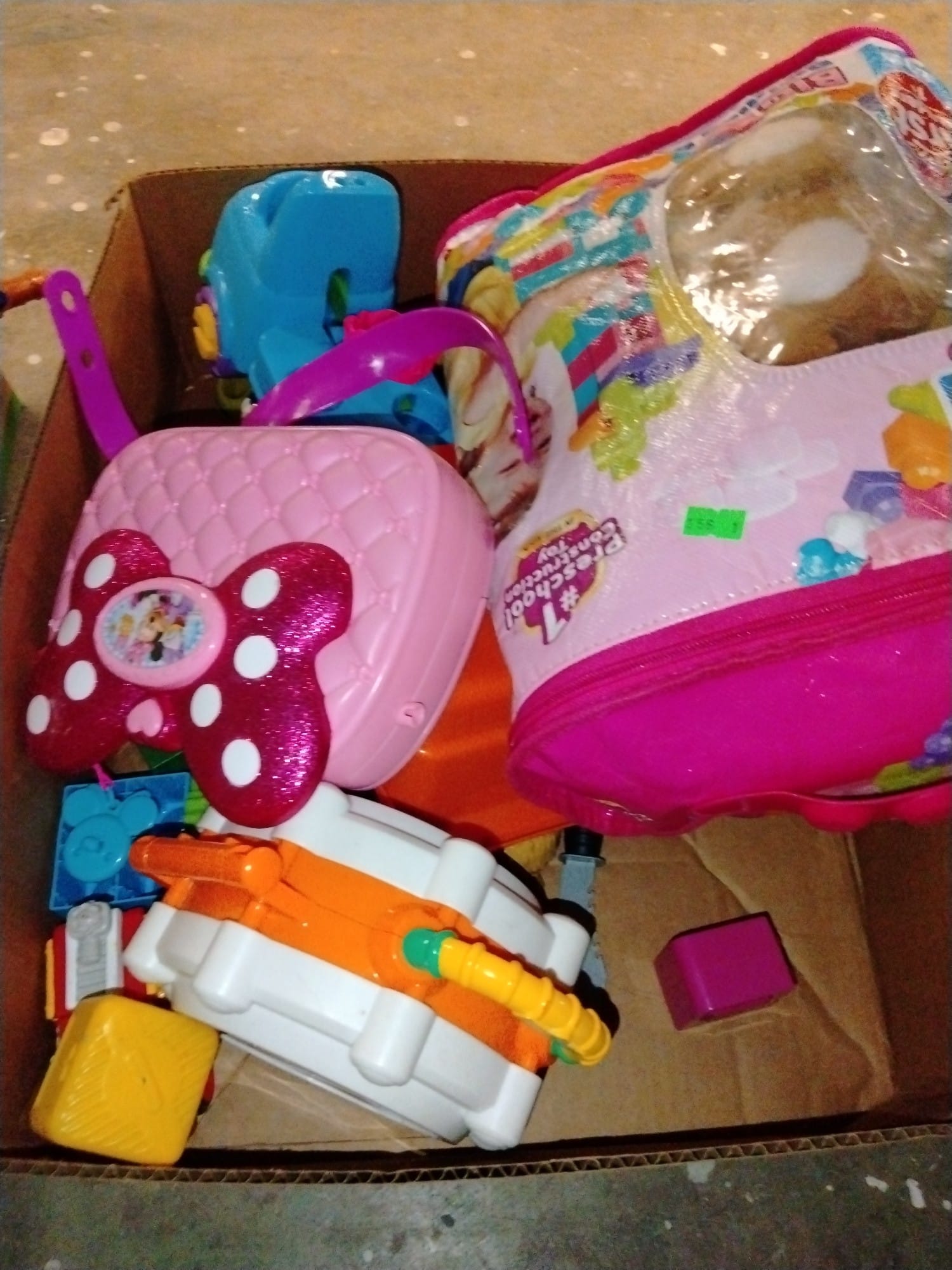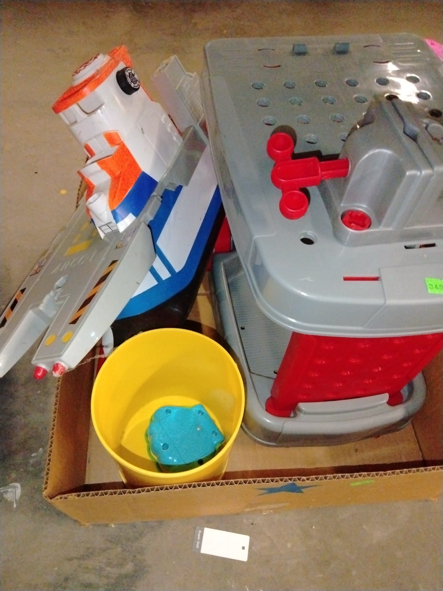 145 Child’s Tote, coloring book, art box, cap gun, miscellaneous