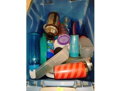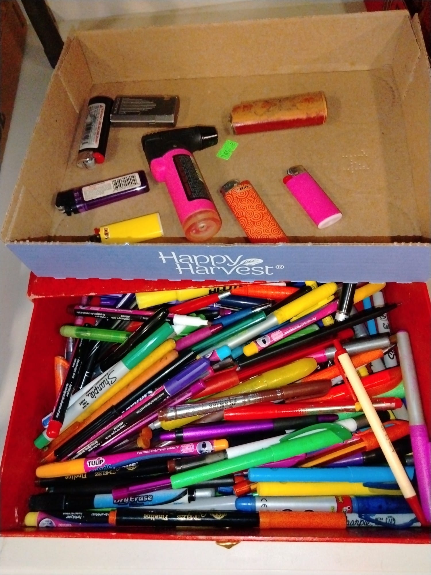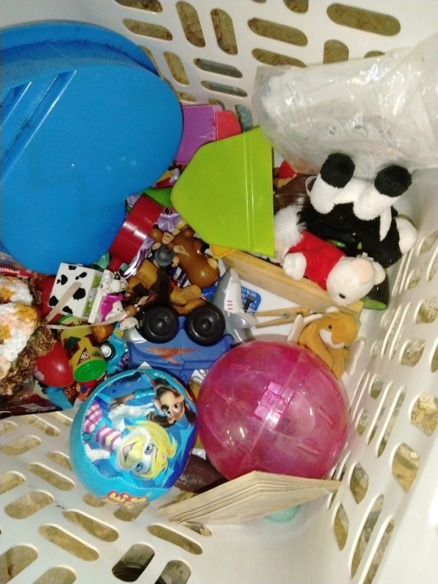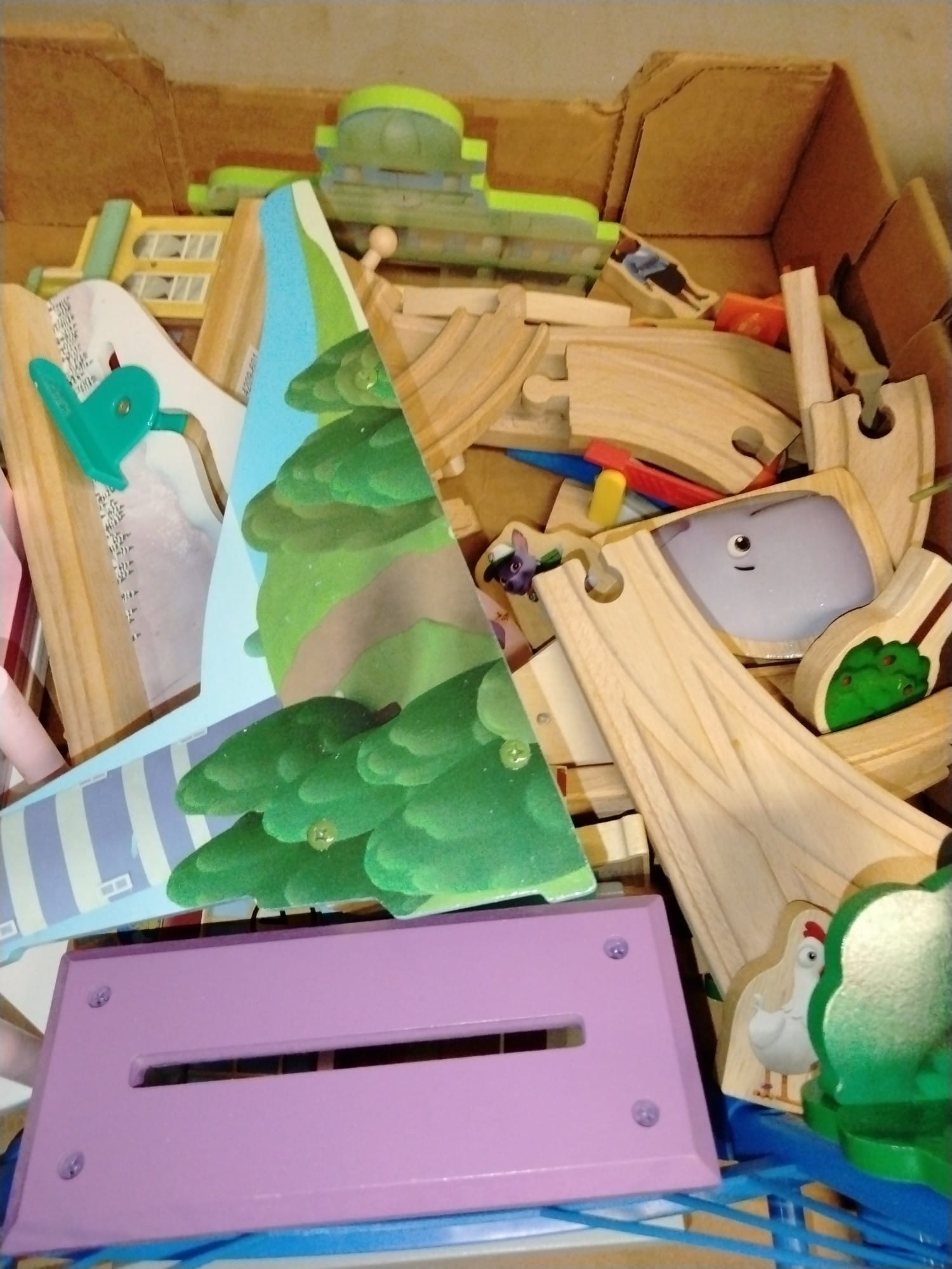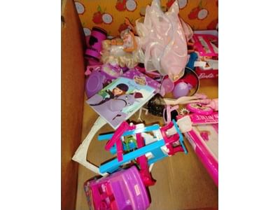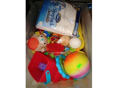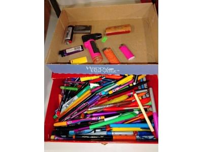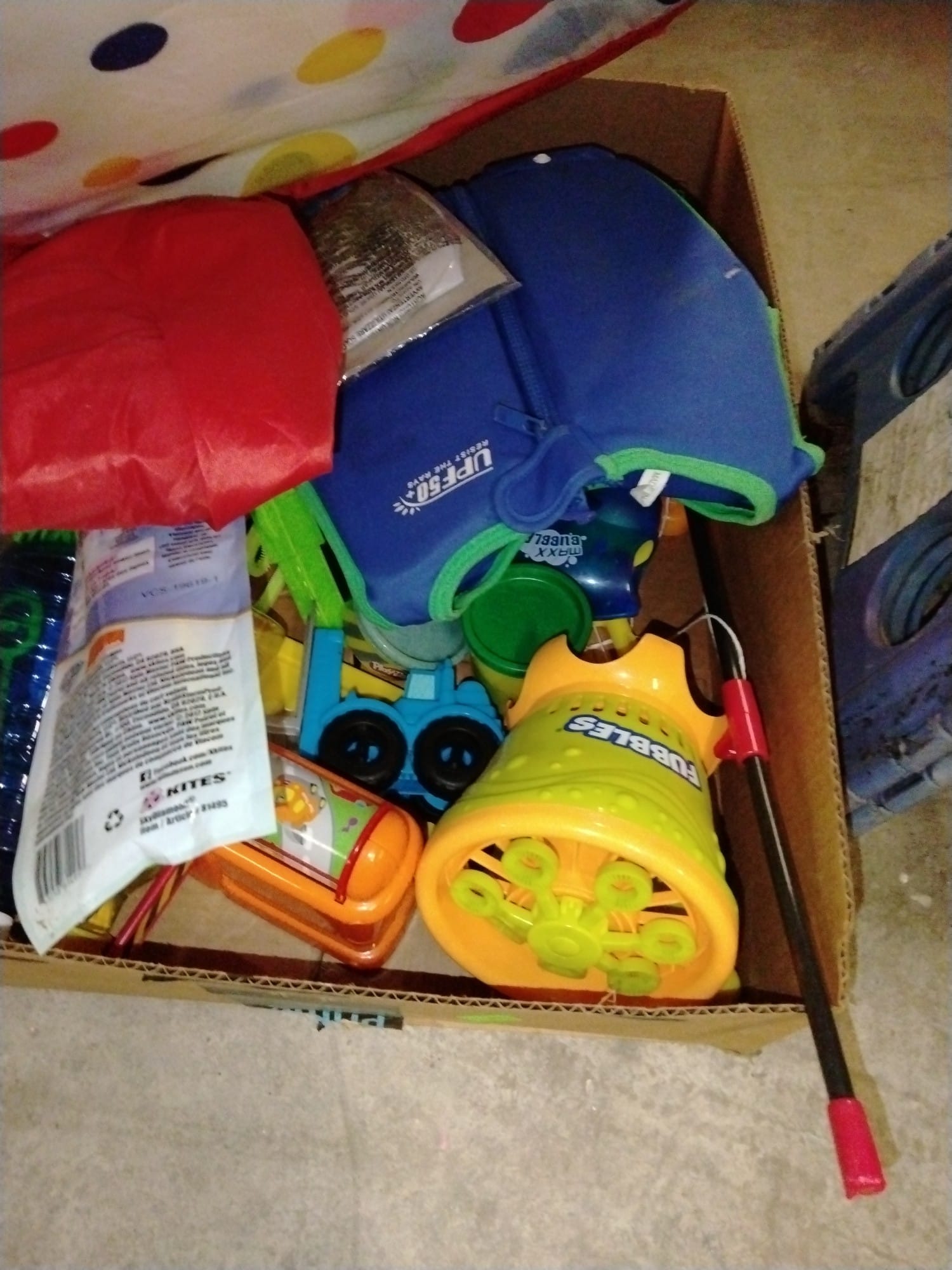 145 Child’s Tote, coloring book, art box, cap gun, miscellaneous