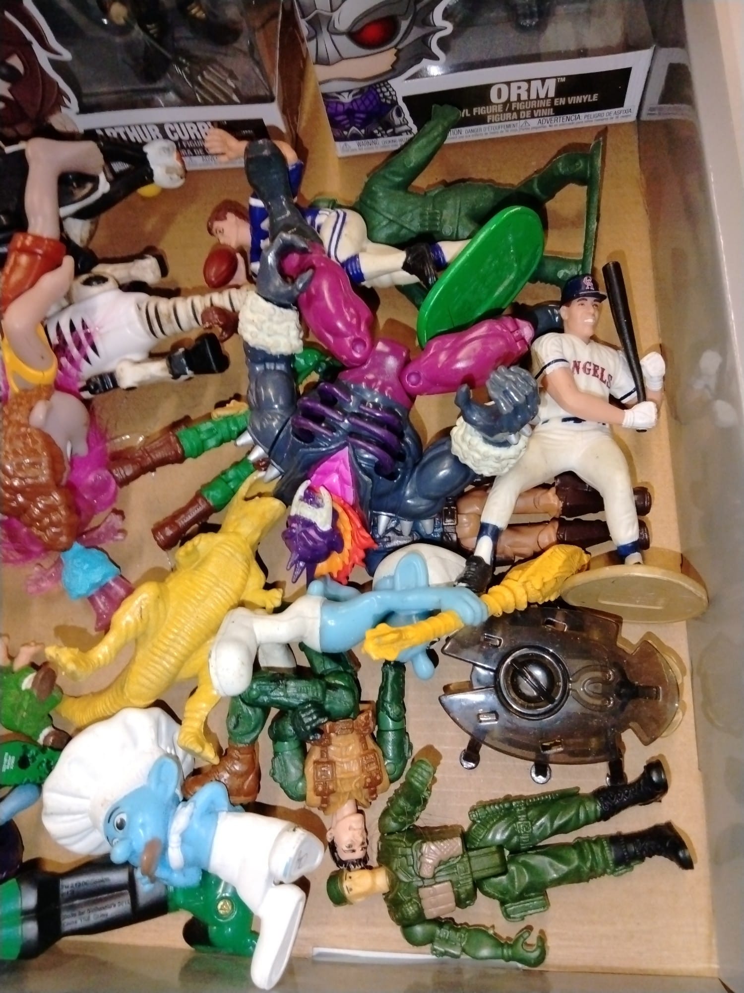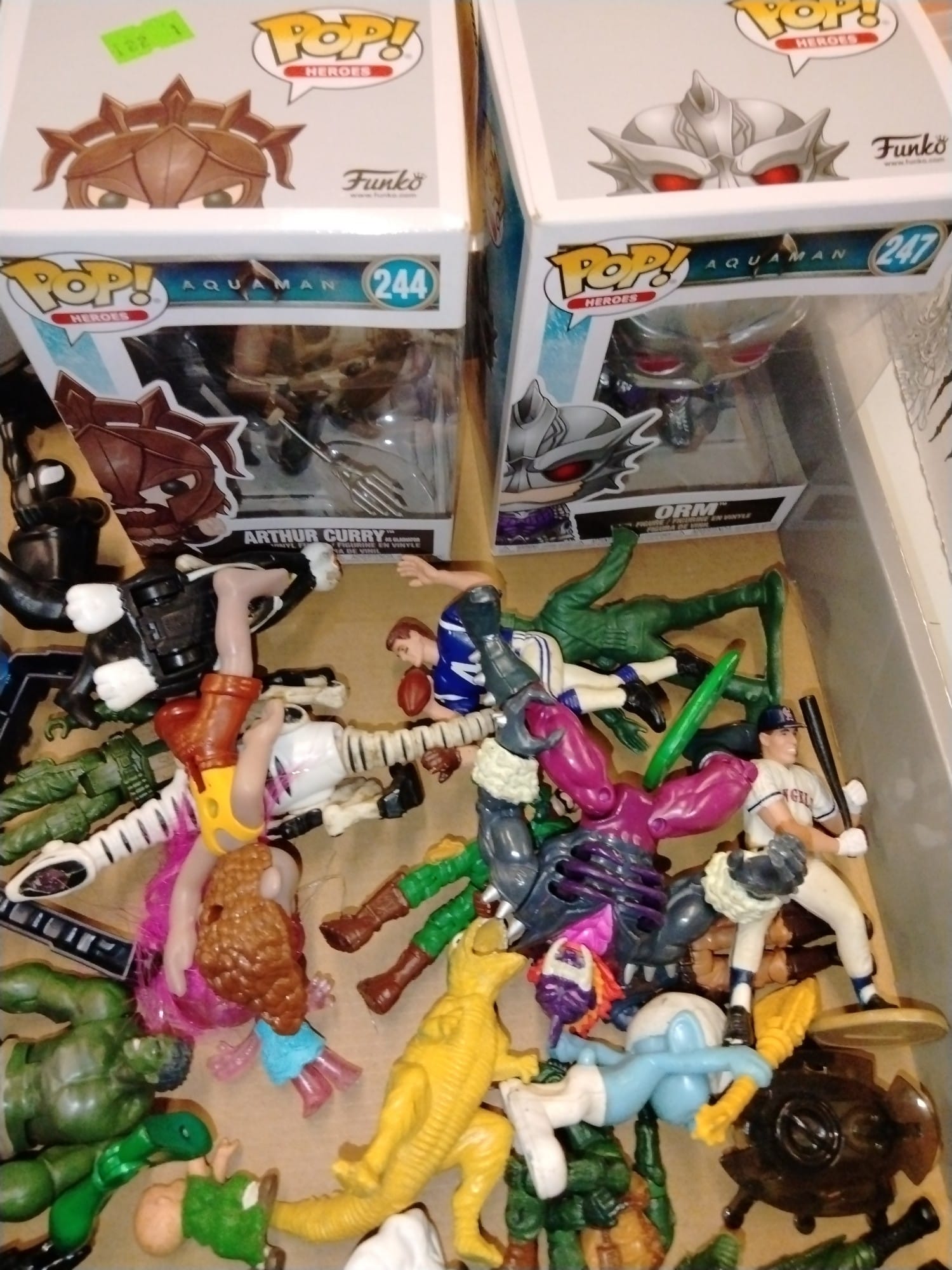 122 Smurf’s, military, football, baseball and assorted figurines, Pop Heroes Arthur Curry and Orm
