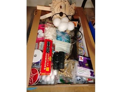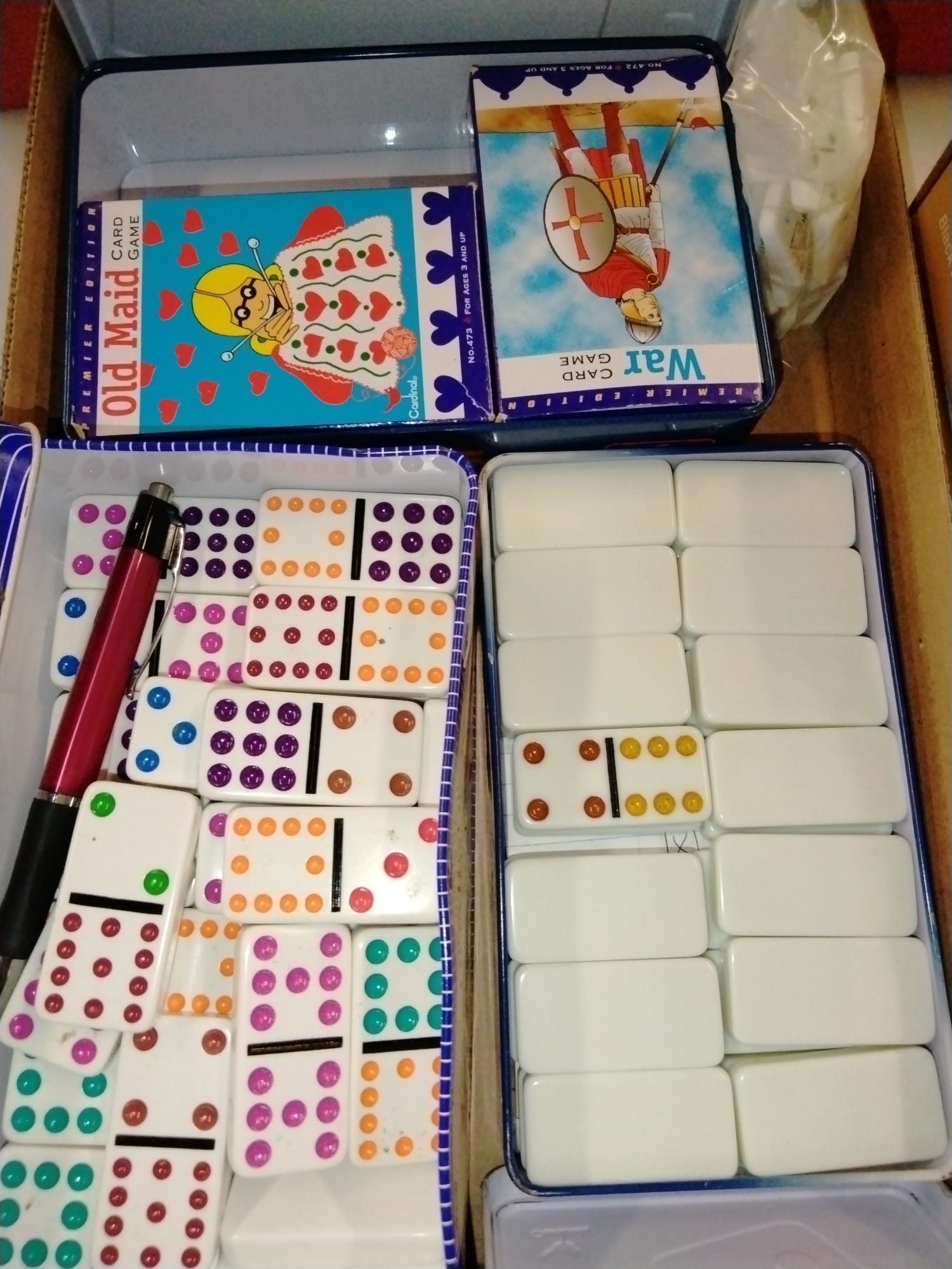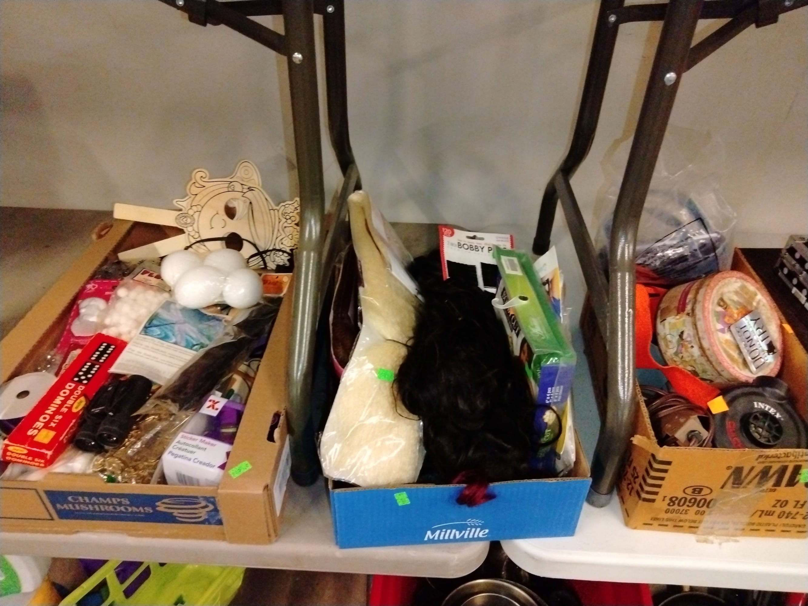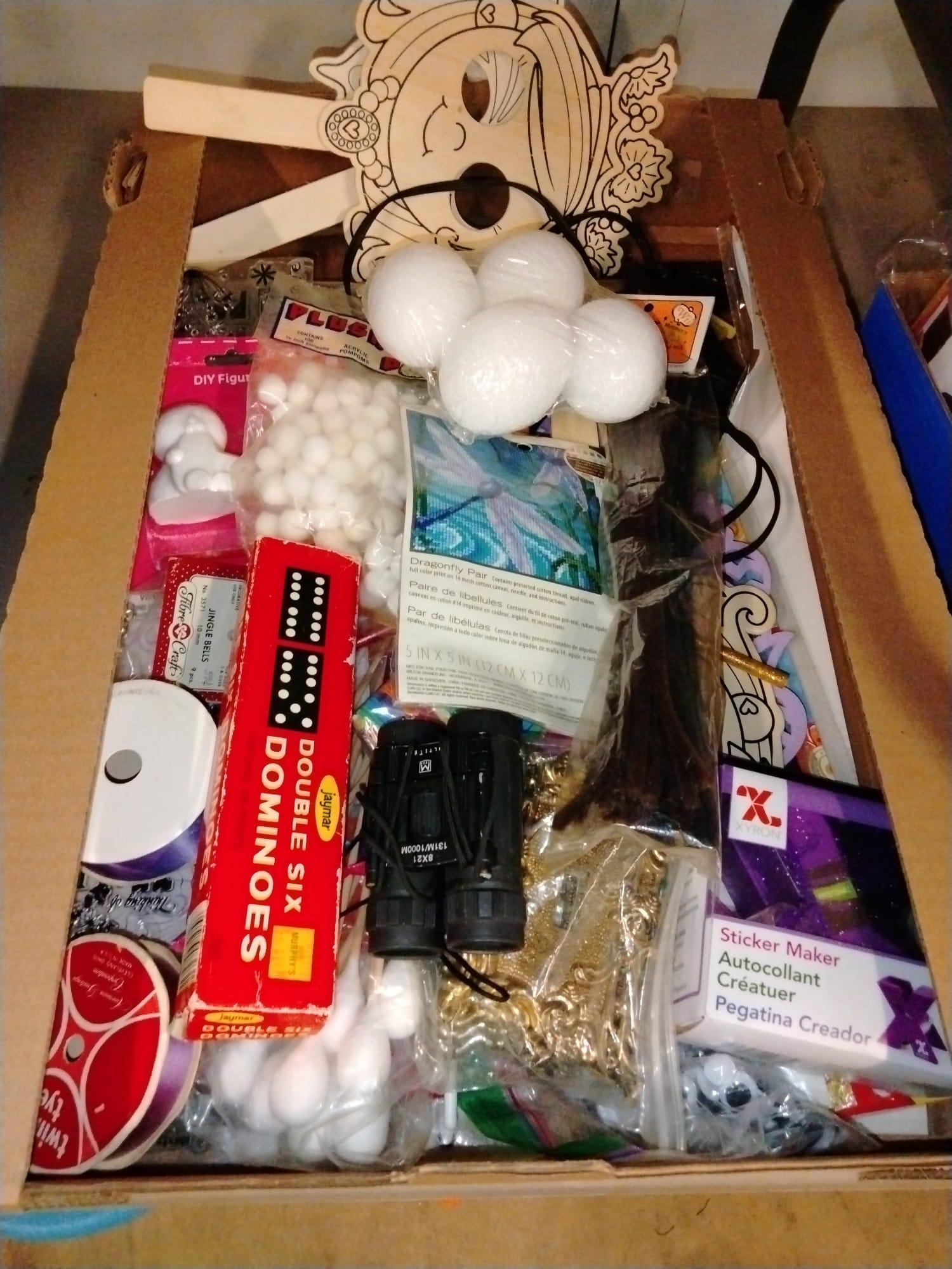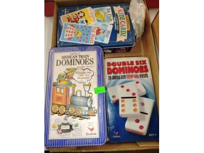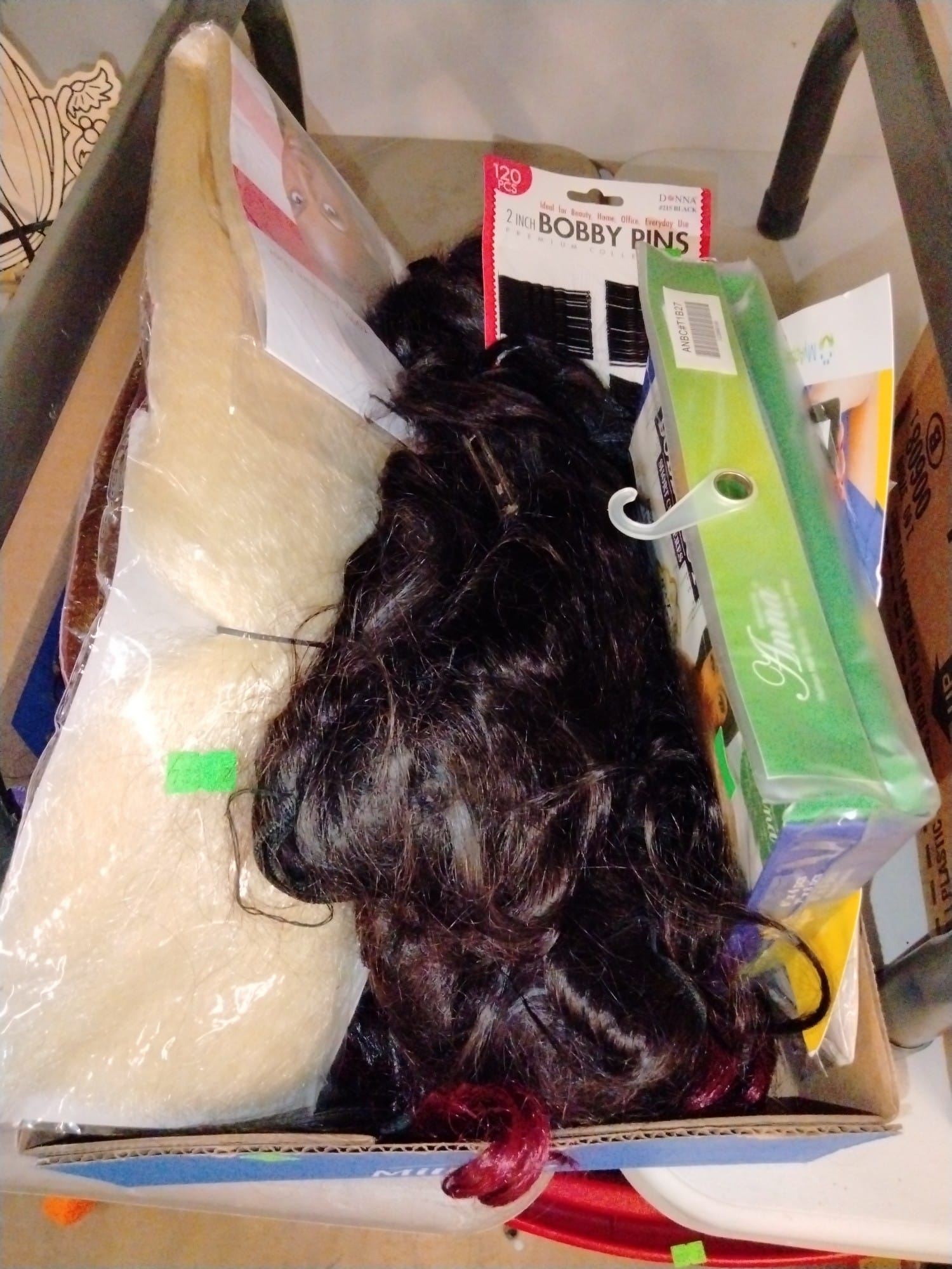 753 Wig assortment, craft assortment, dominoes, miscellaneous