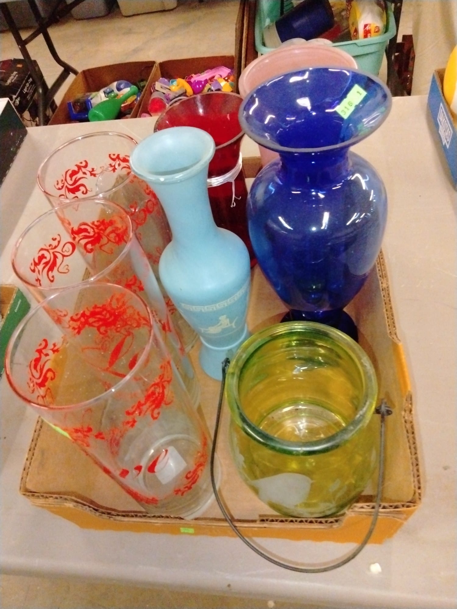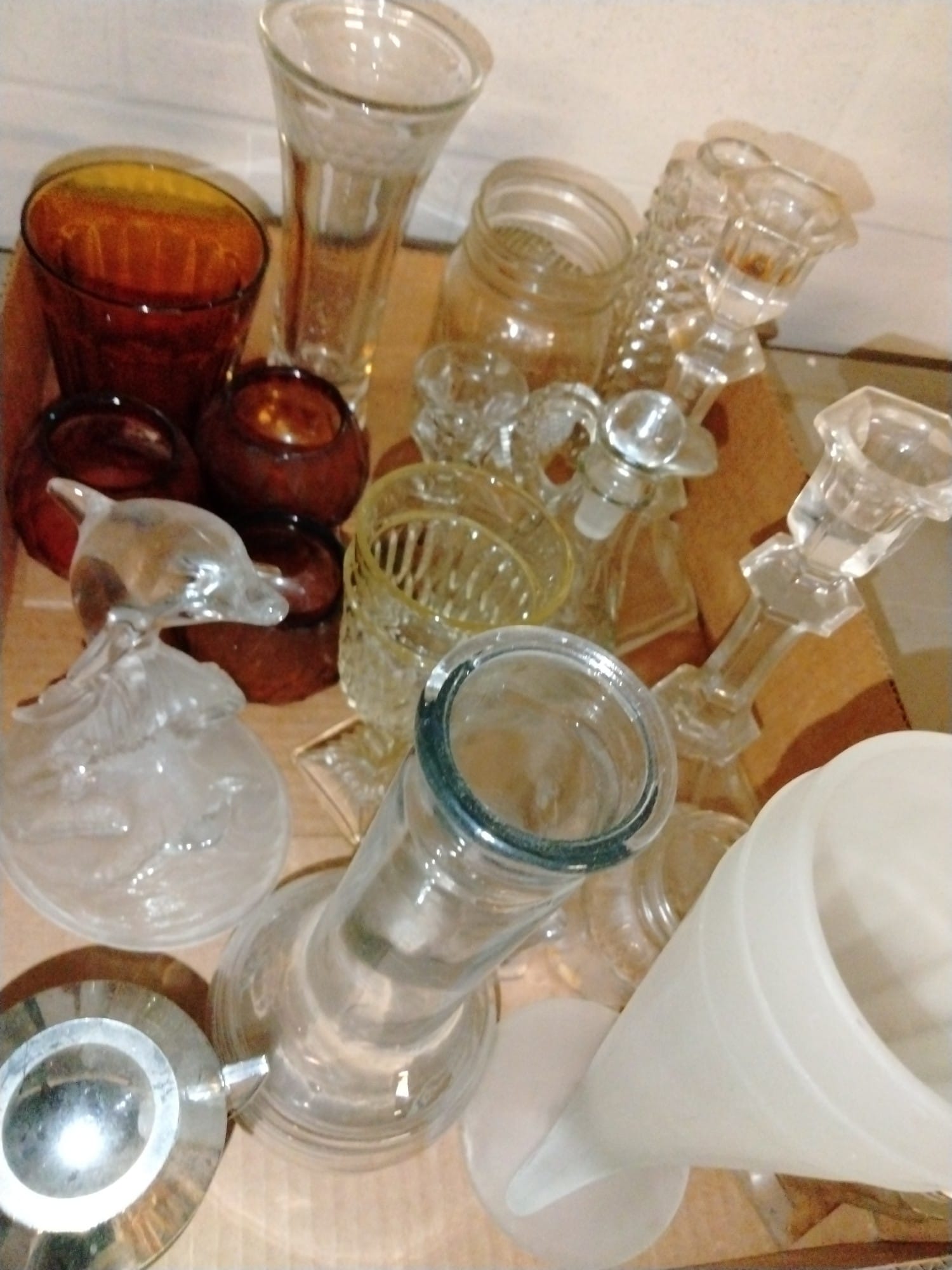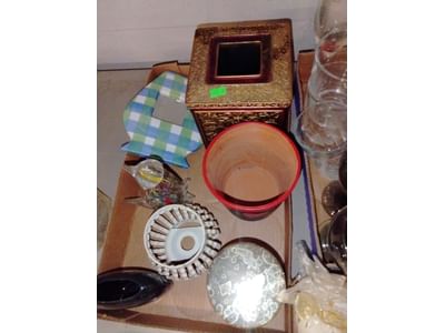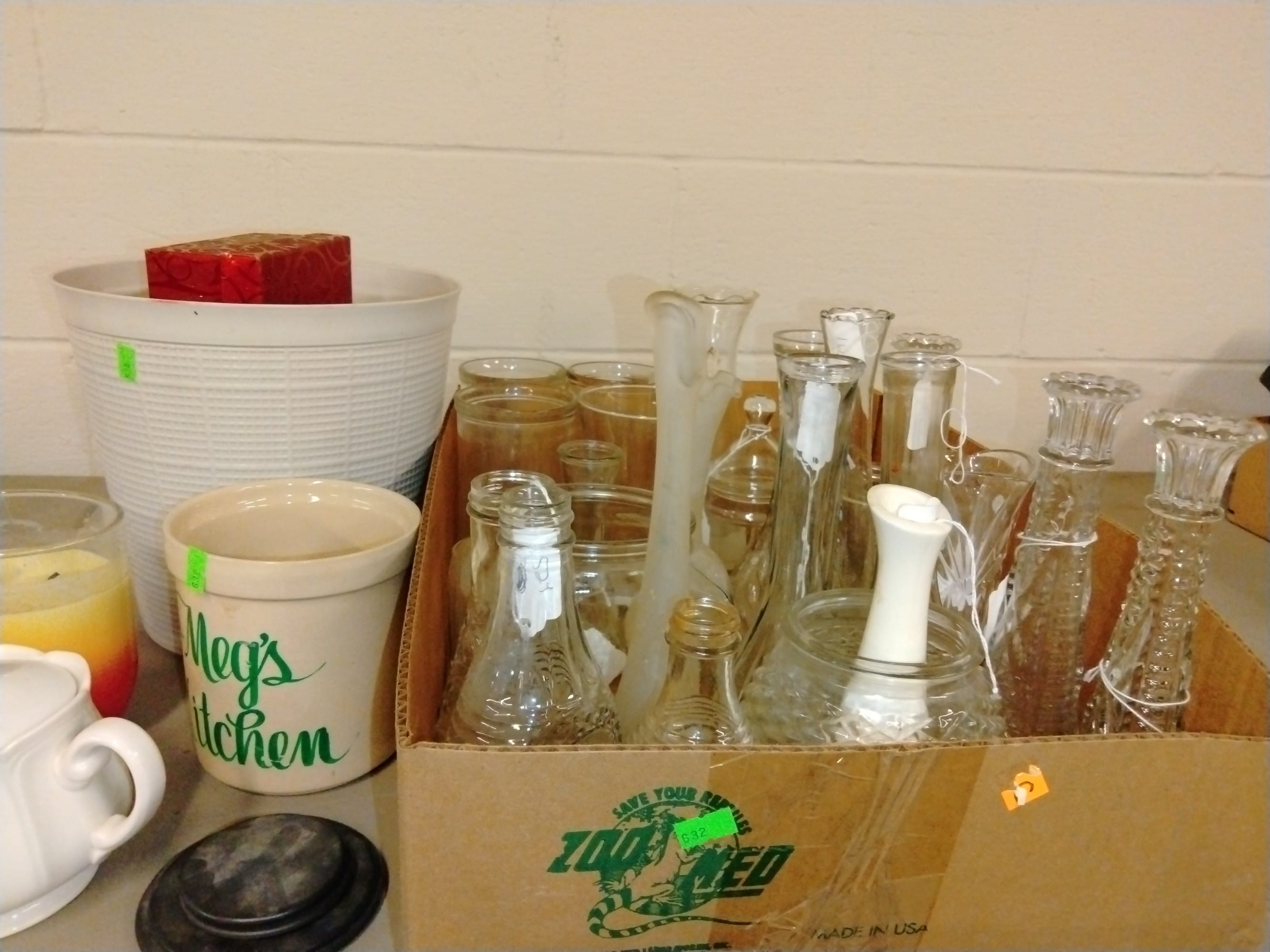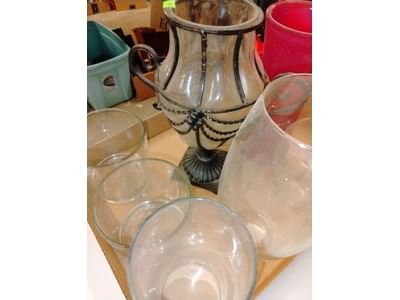 751 Vase, canisters, mirror, shot glasses, candle holders, miscellaneous