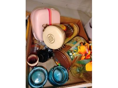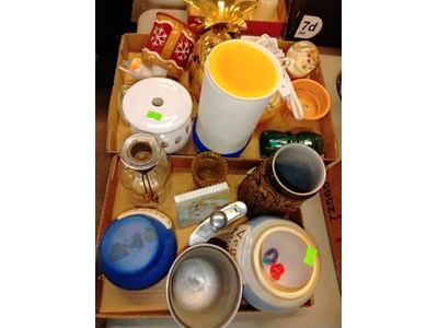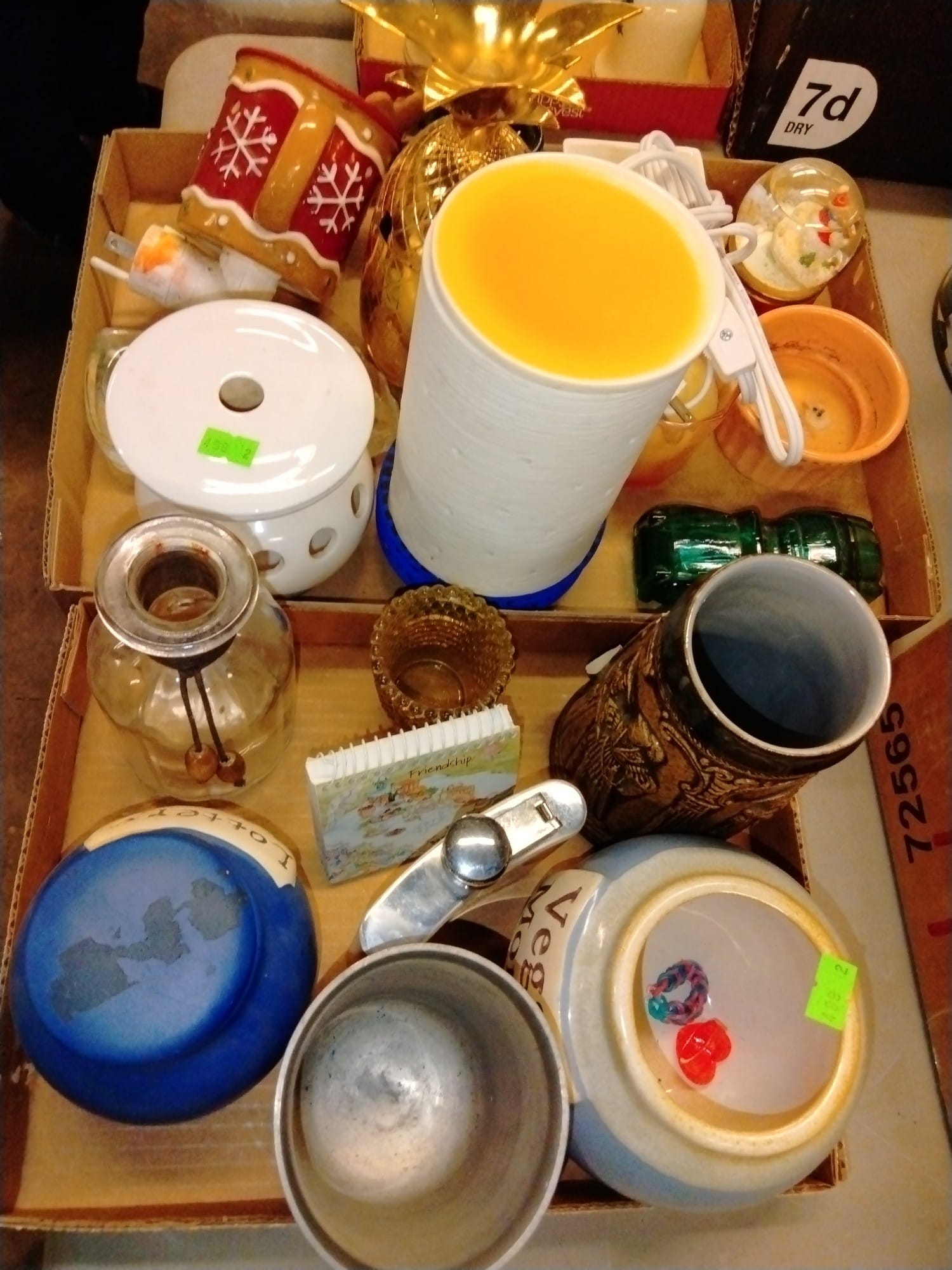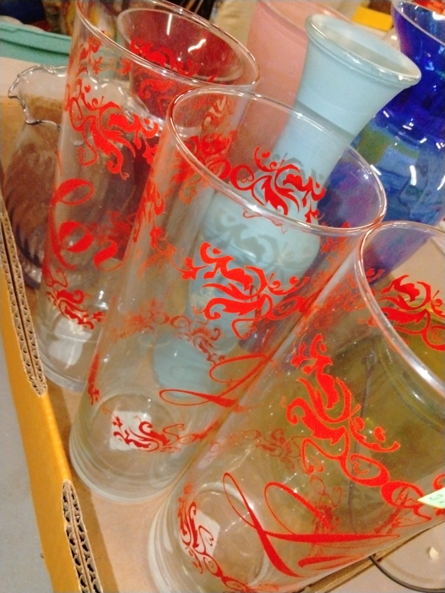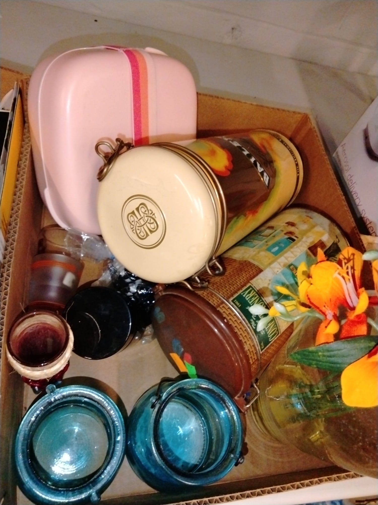 751 Vase, canisters, mirror, shot glasses, candle holders, miscellaneous
