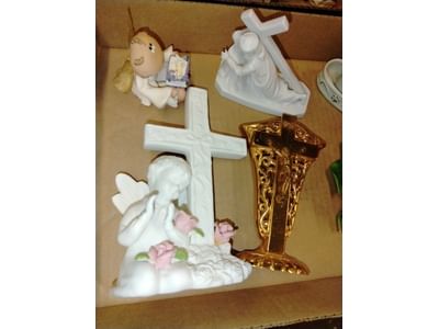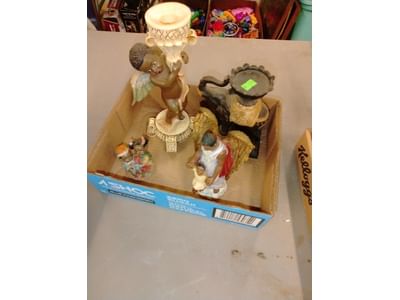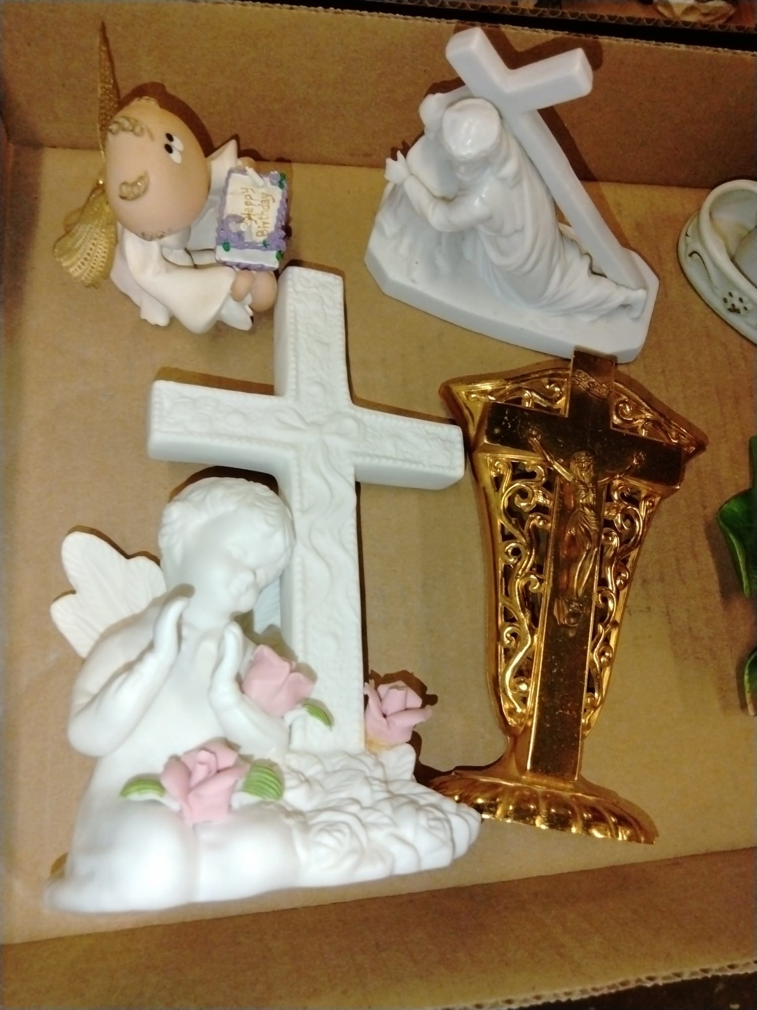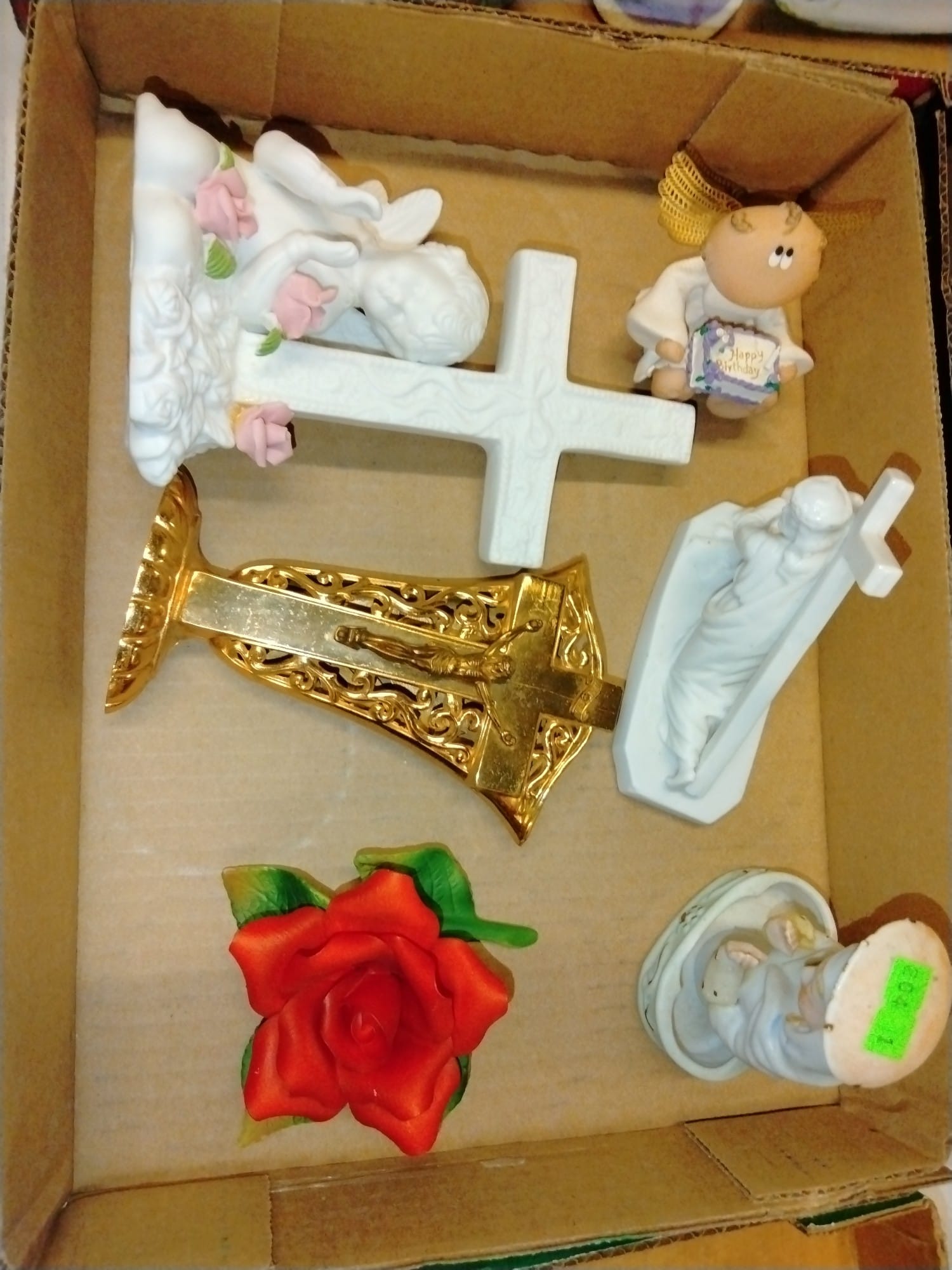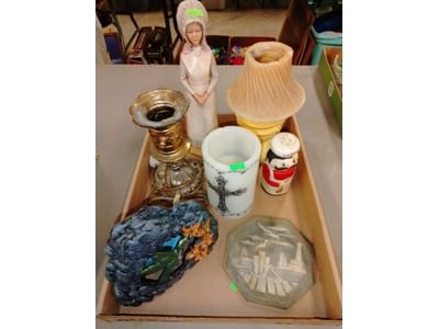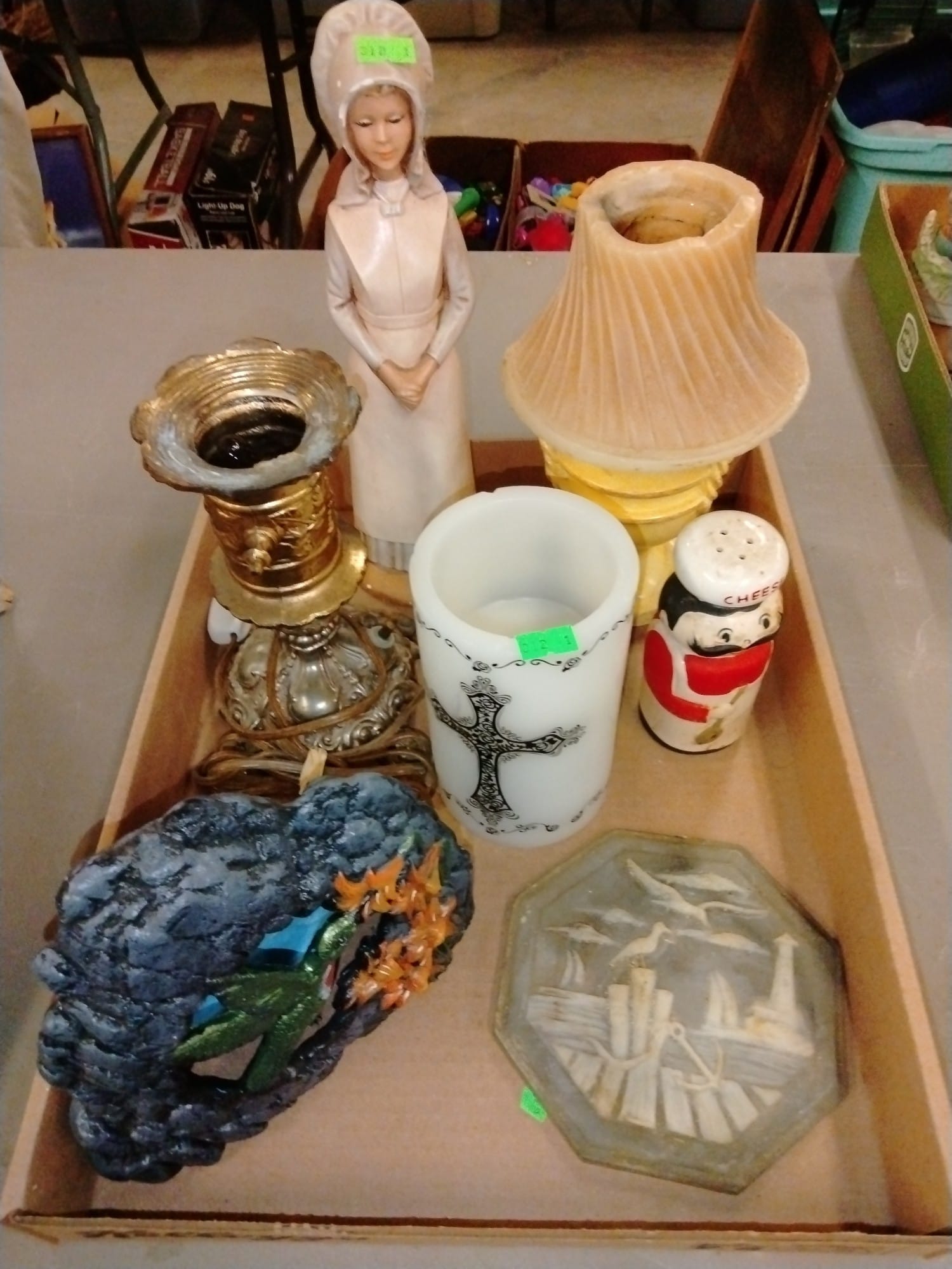 212 Bell, candle holders, figurines, shell, Avon Cross, miscellaneous