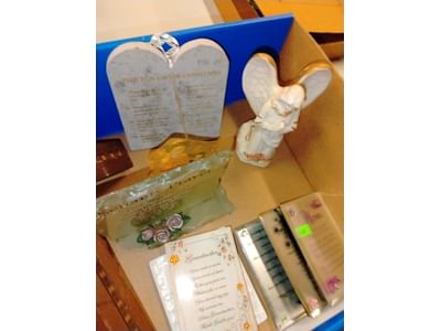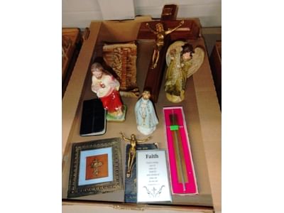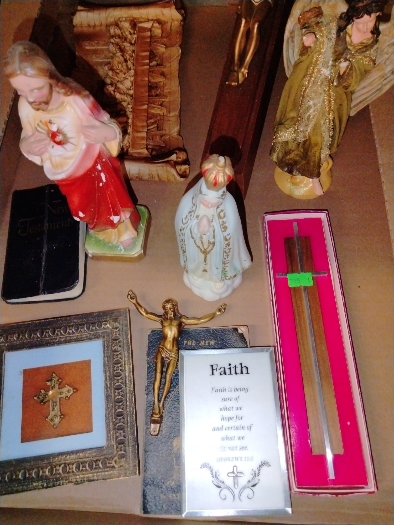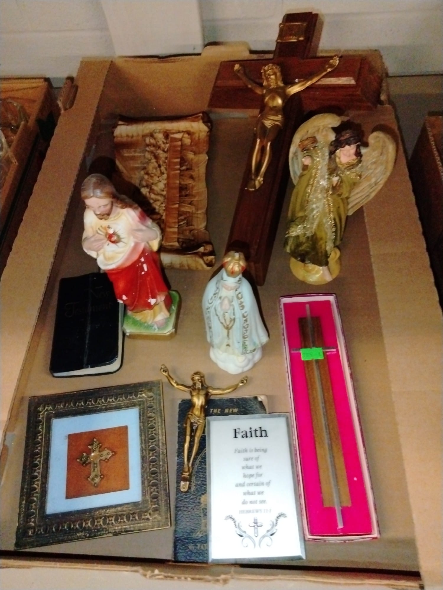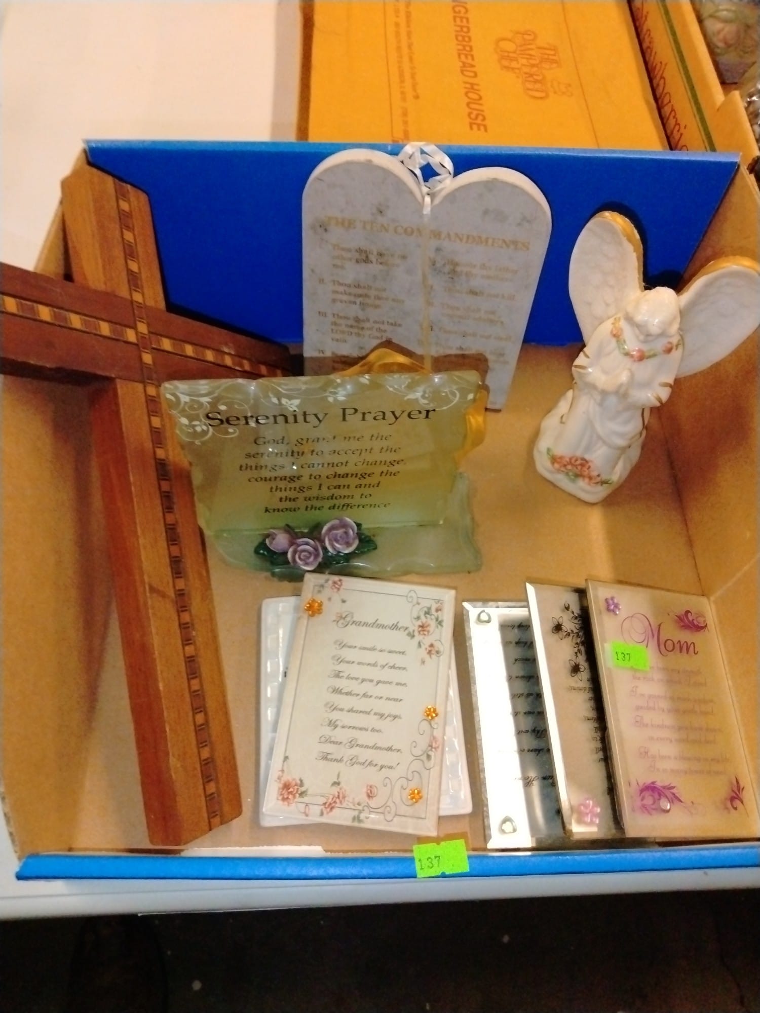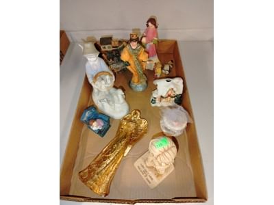 212 Bell, candle holders, figurines, shell, Avon Cross, miscellaneous
