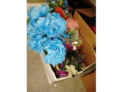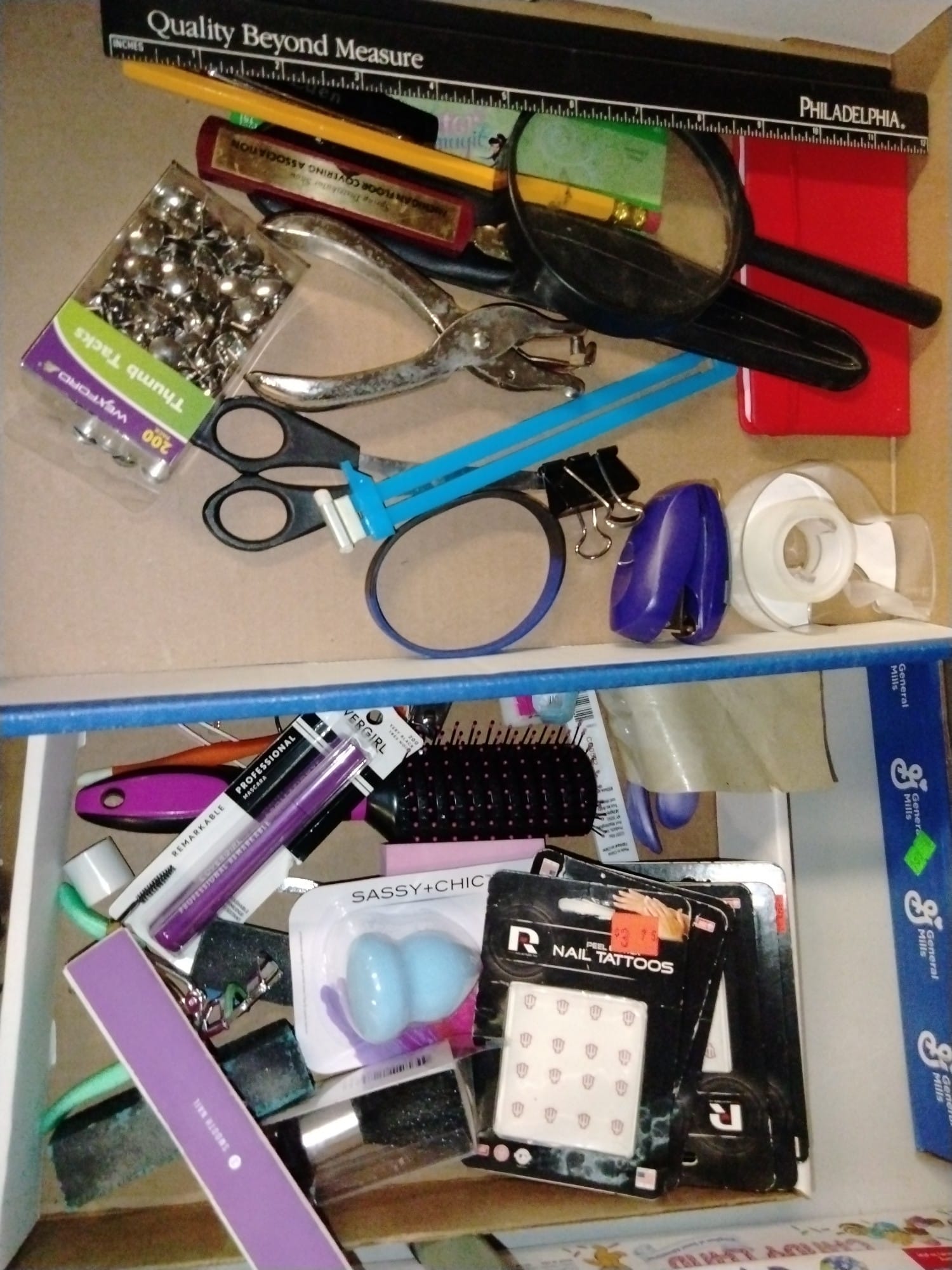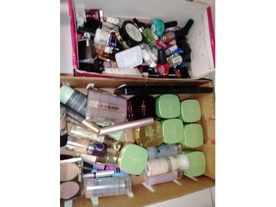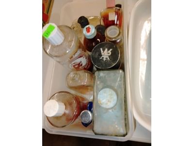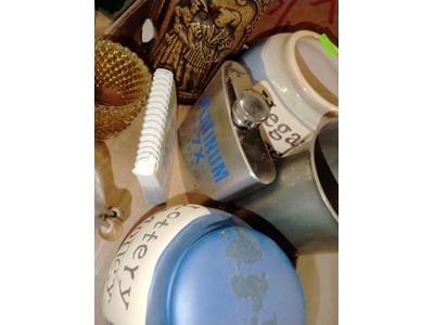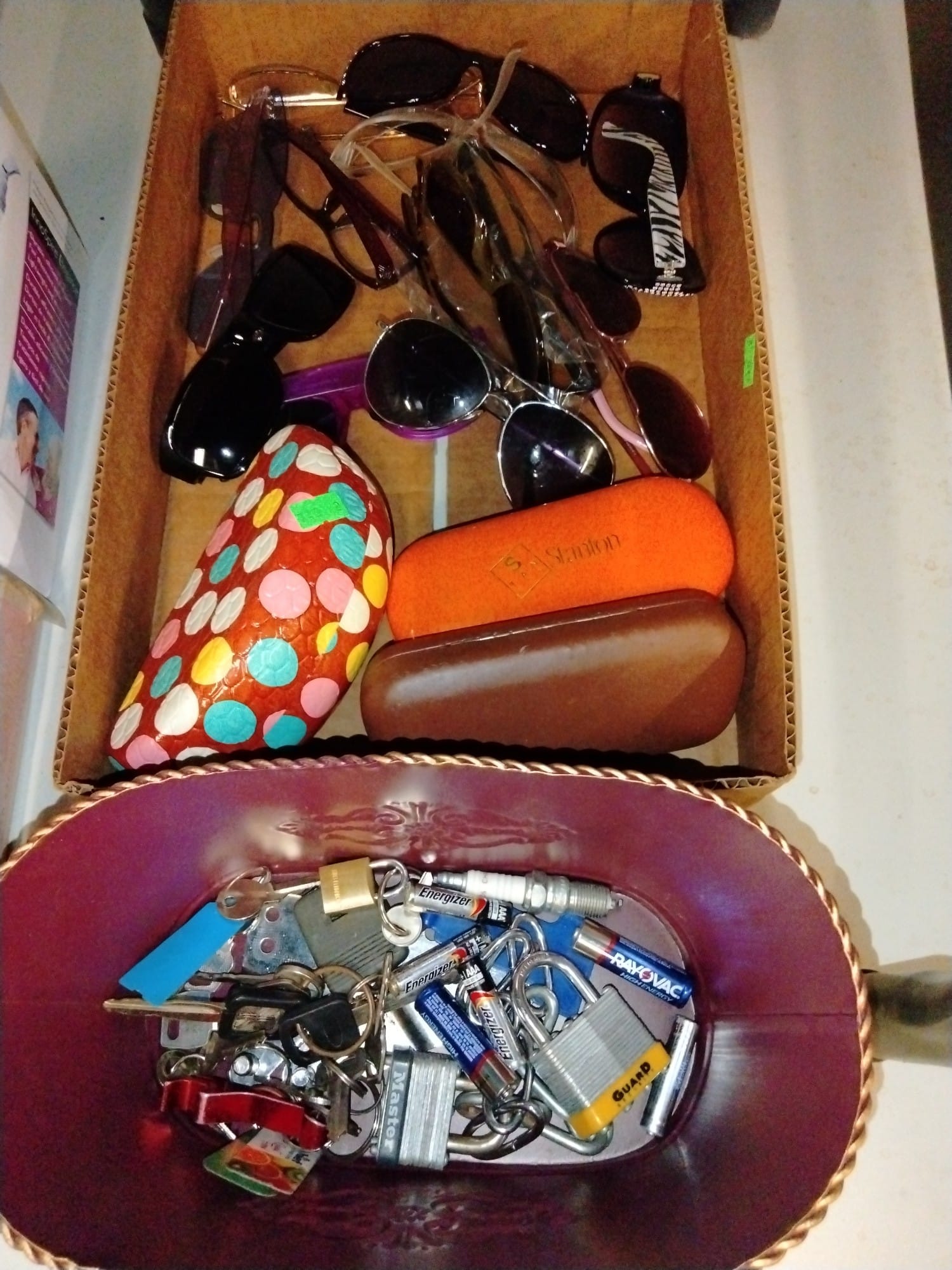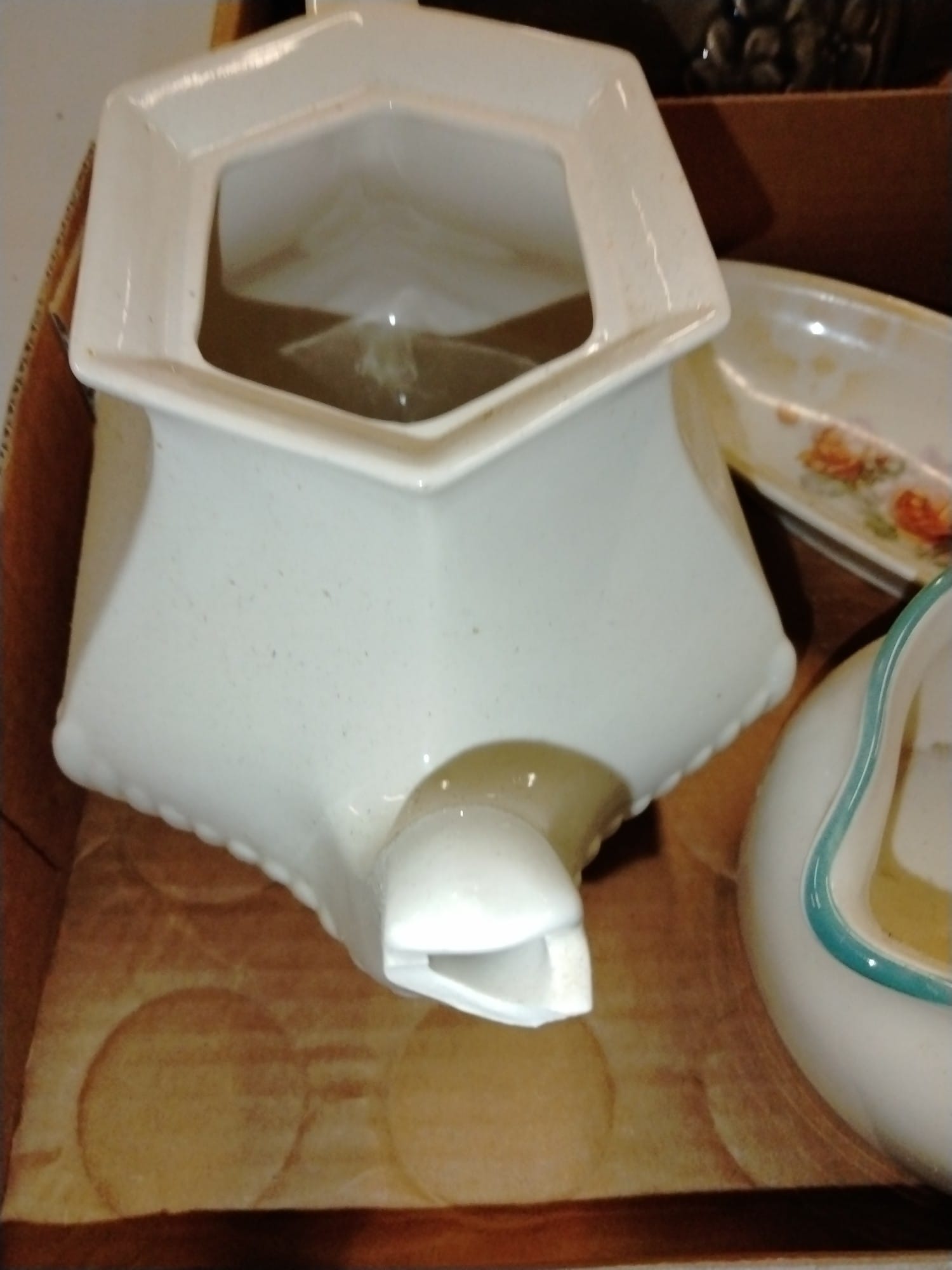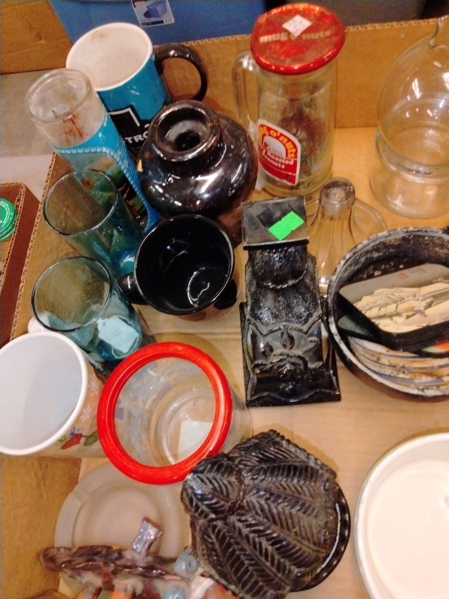 210 Jewelry box, Avon jar, Cobalt blue hand form and vase, pottery vase