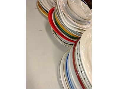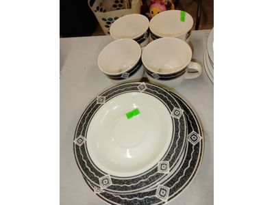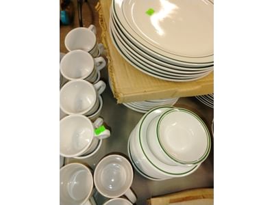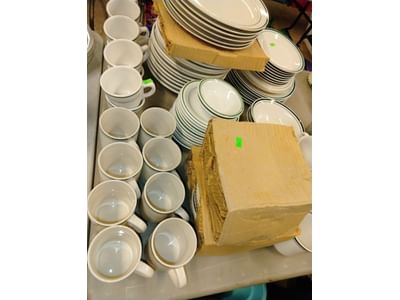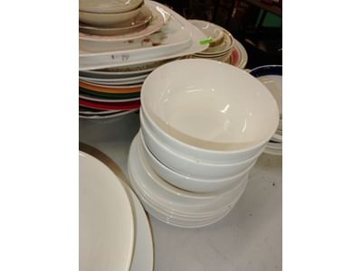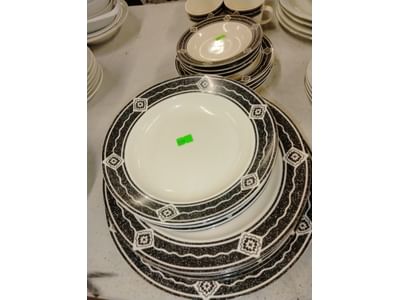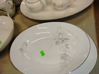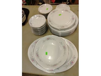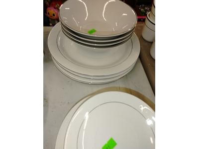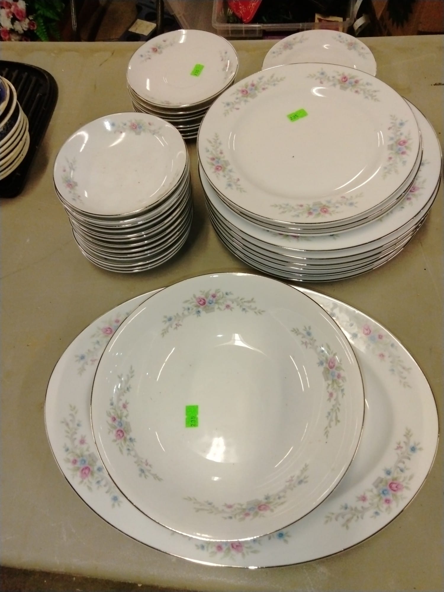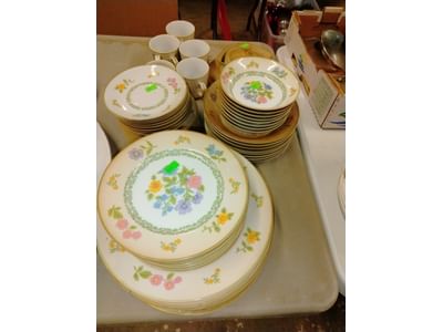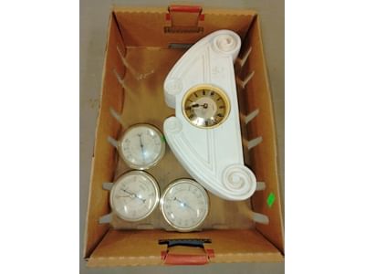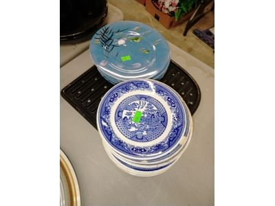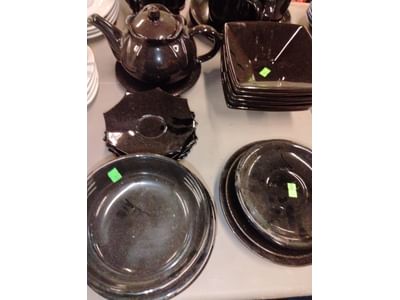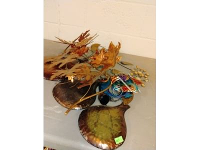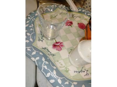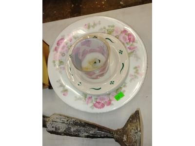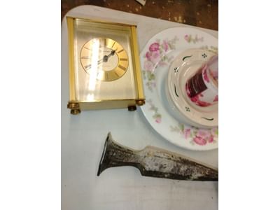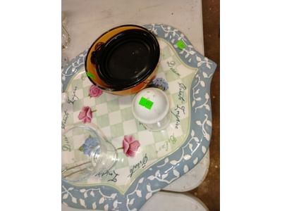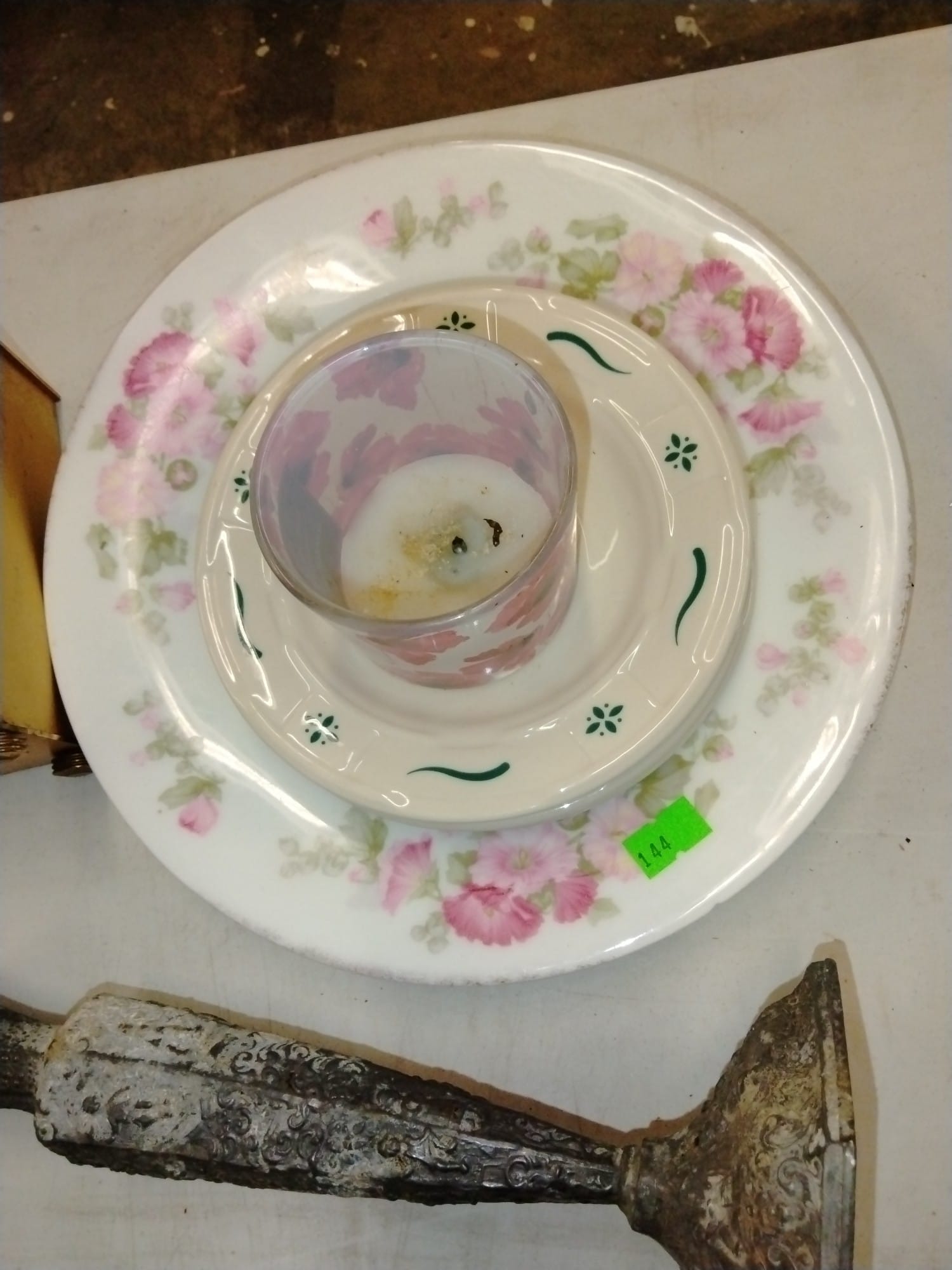 144 Porcelain Plate, Longaberger saucer, candle holder, clock, pot metal candle holder