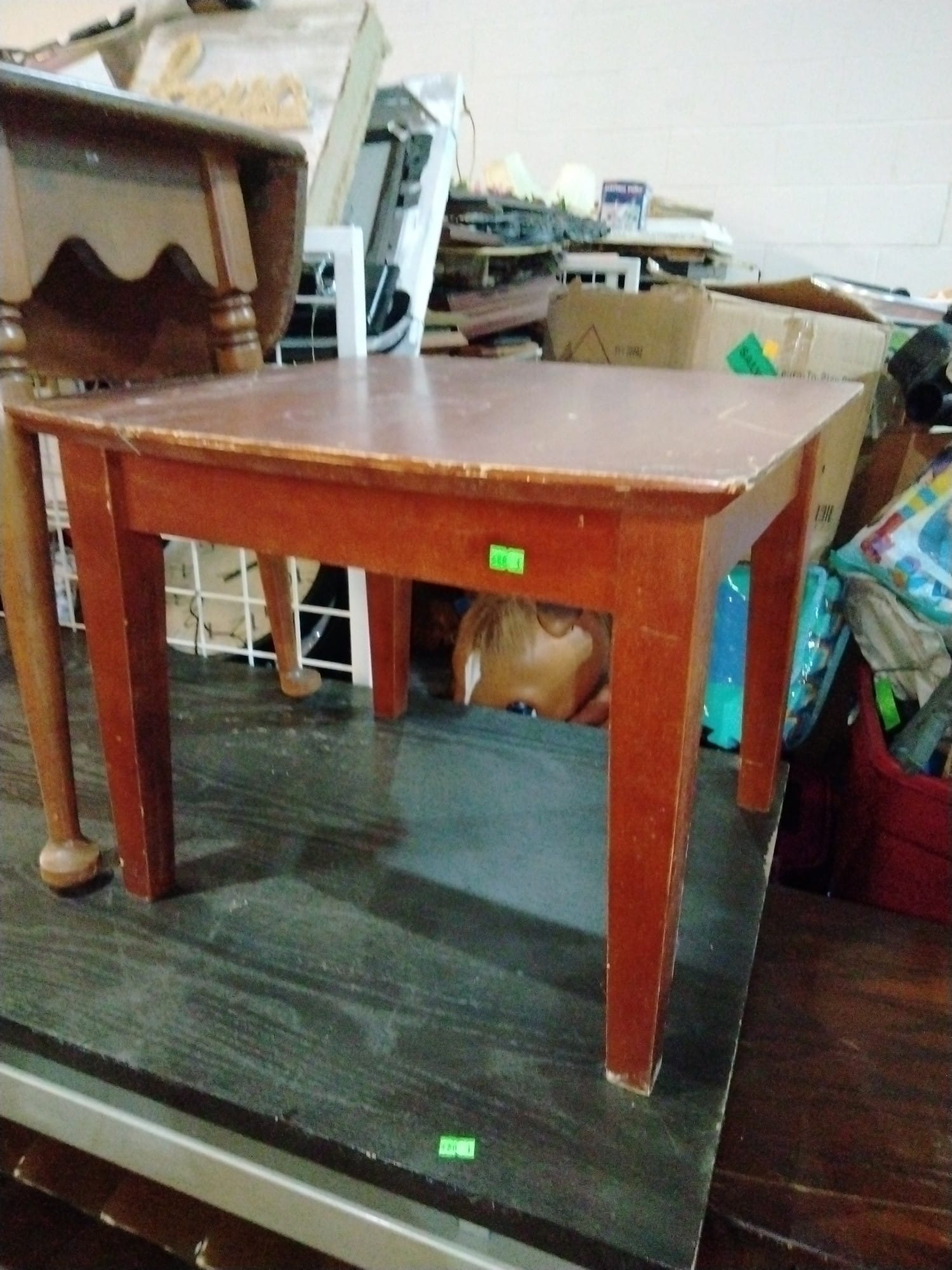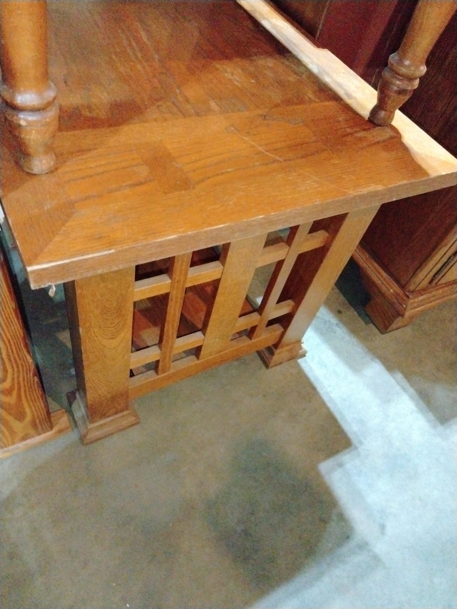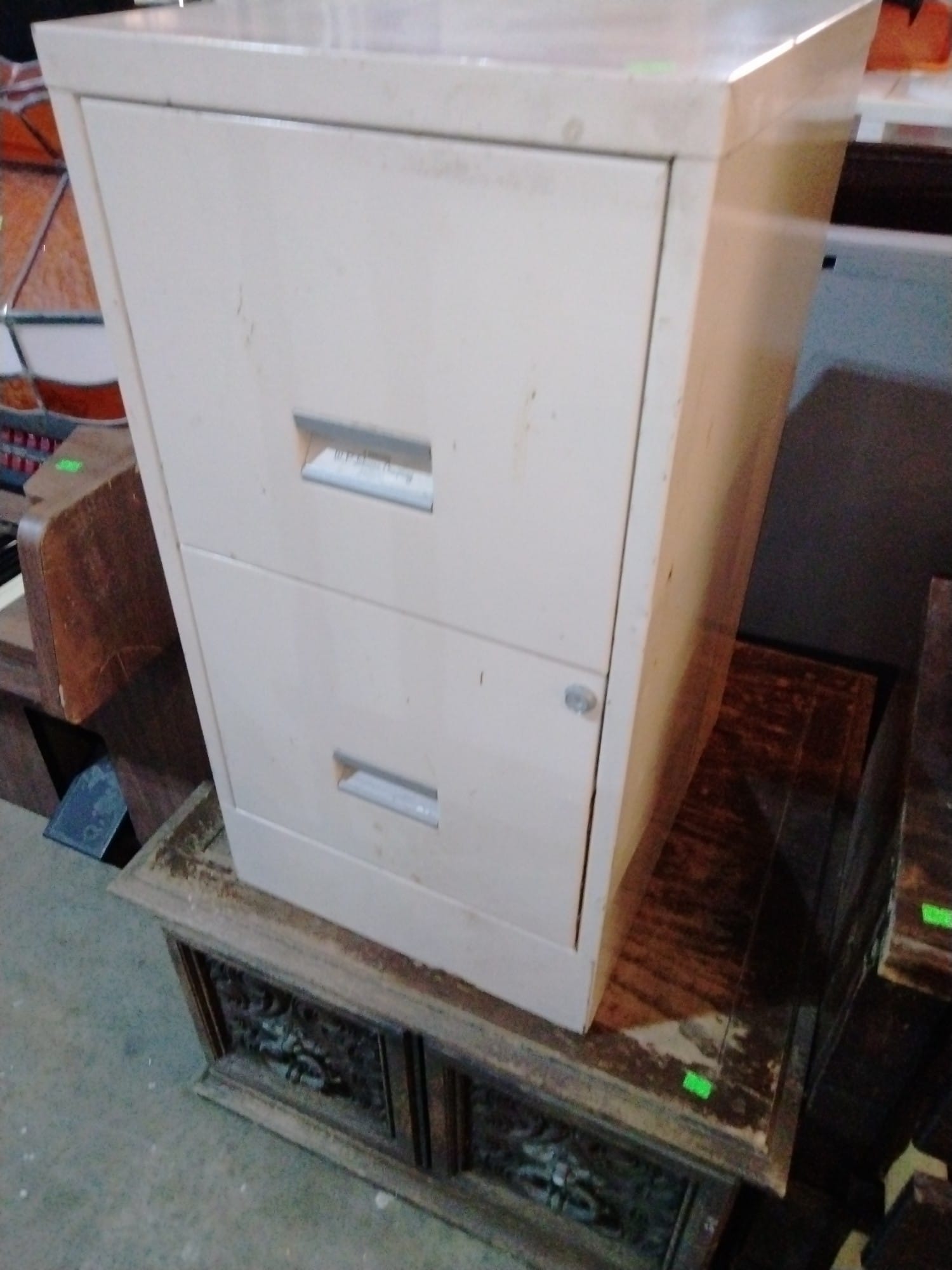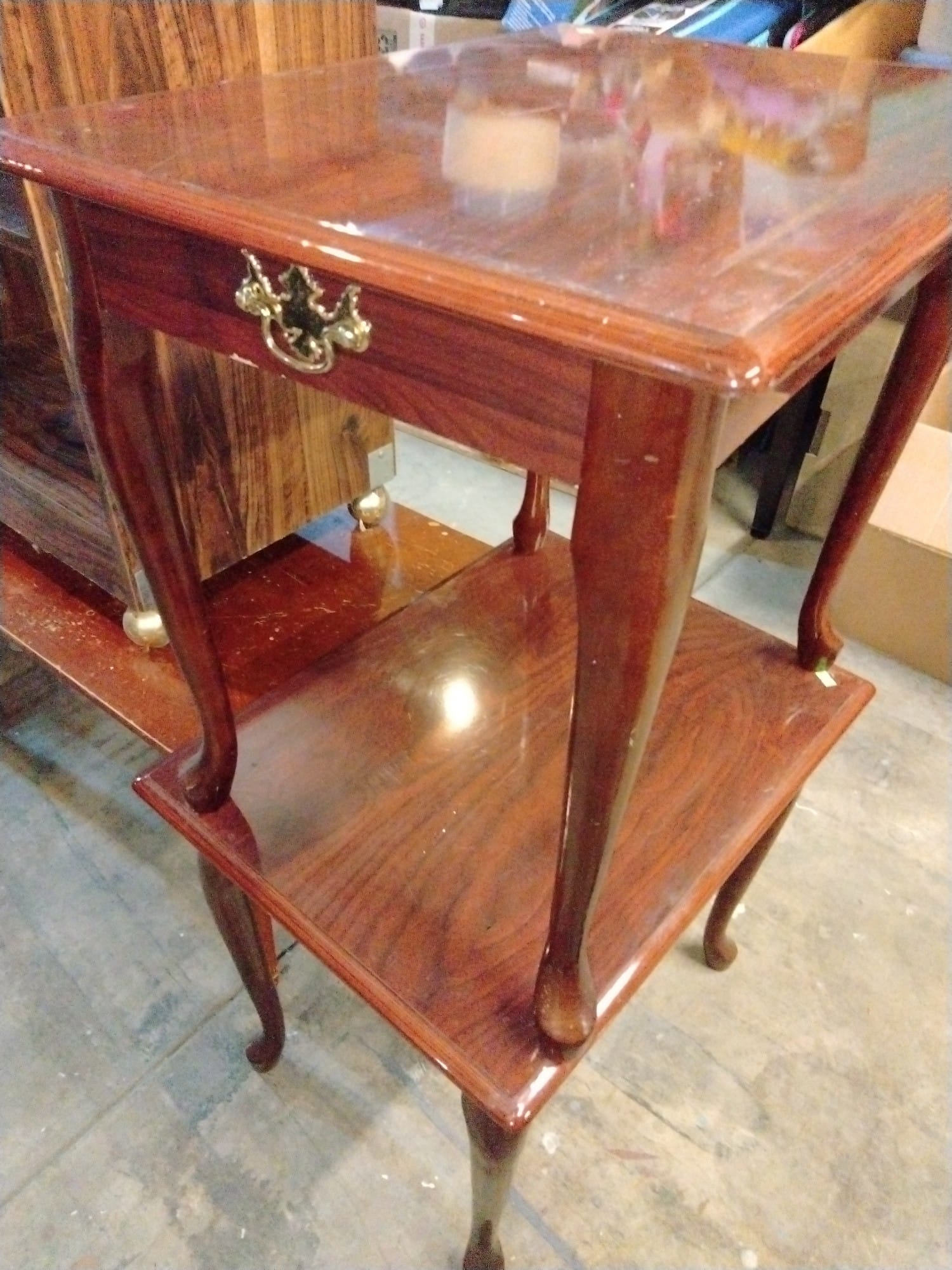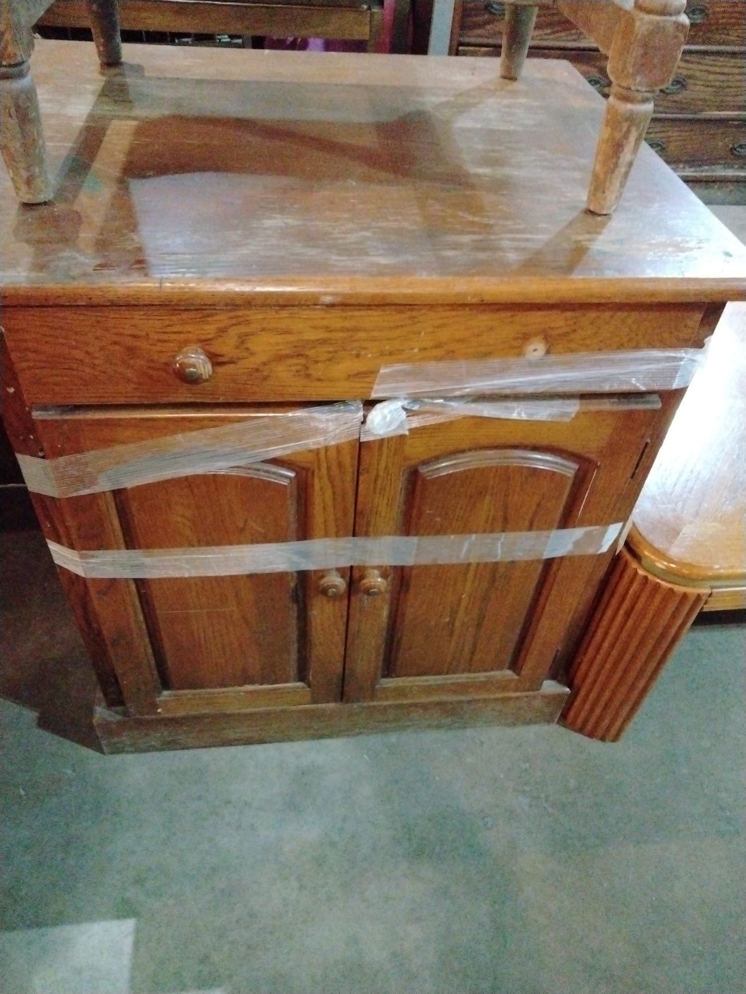 167 W P Johnson file cabinet and end table with damage 27x27x19