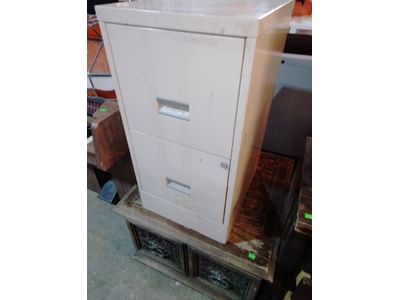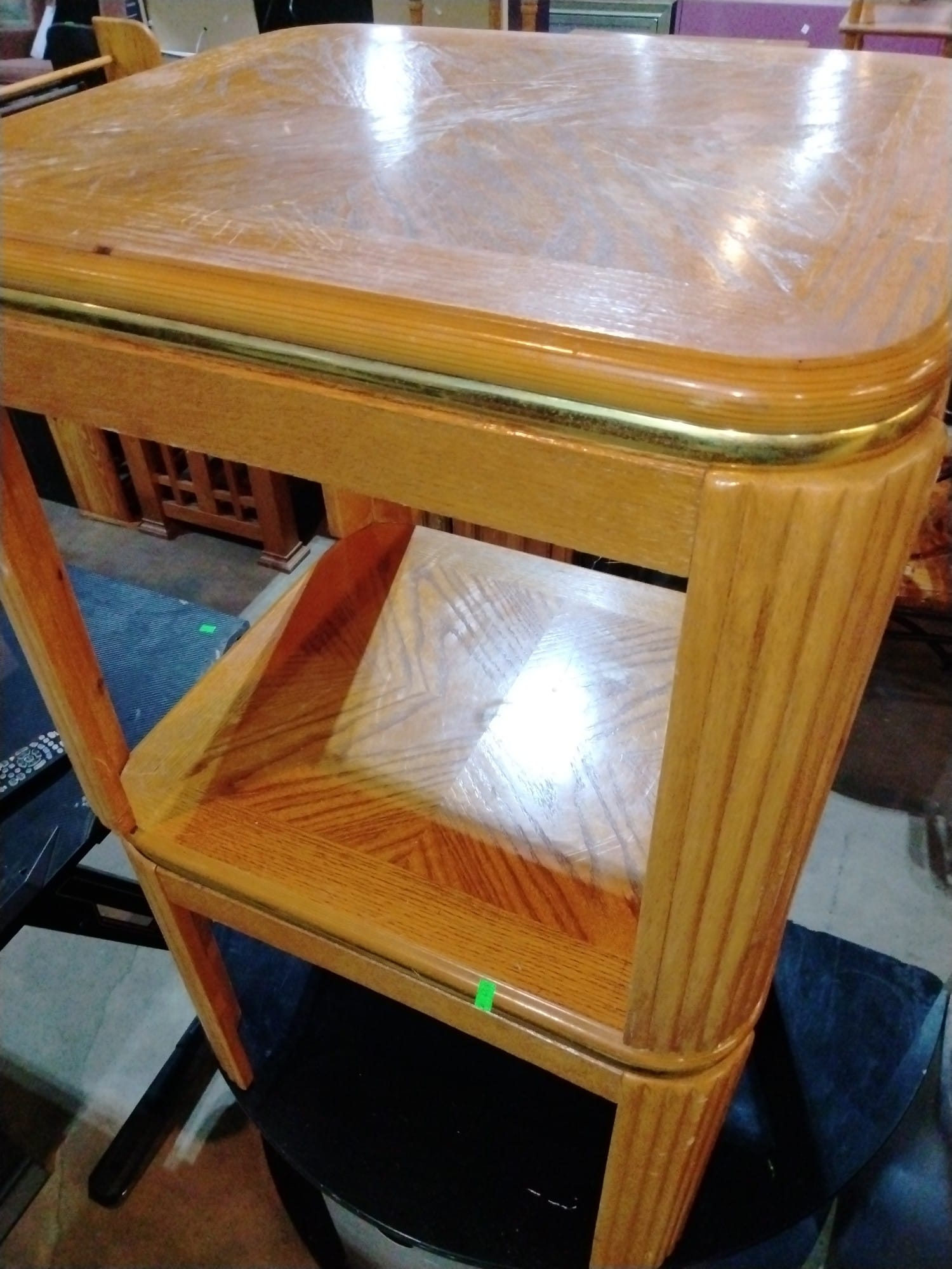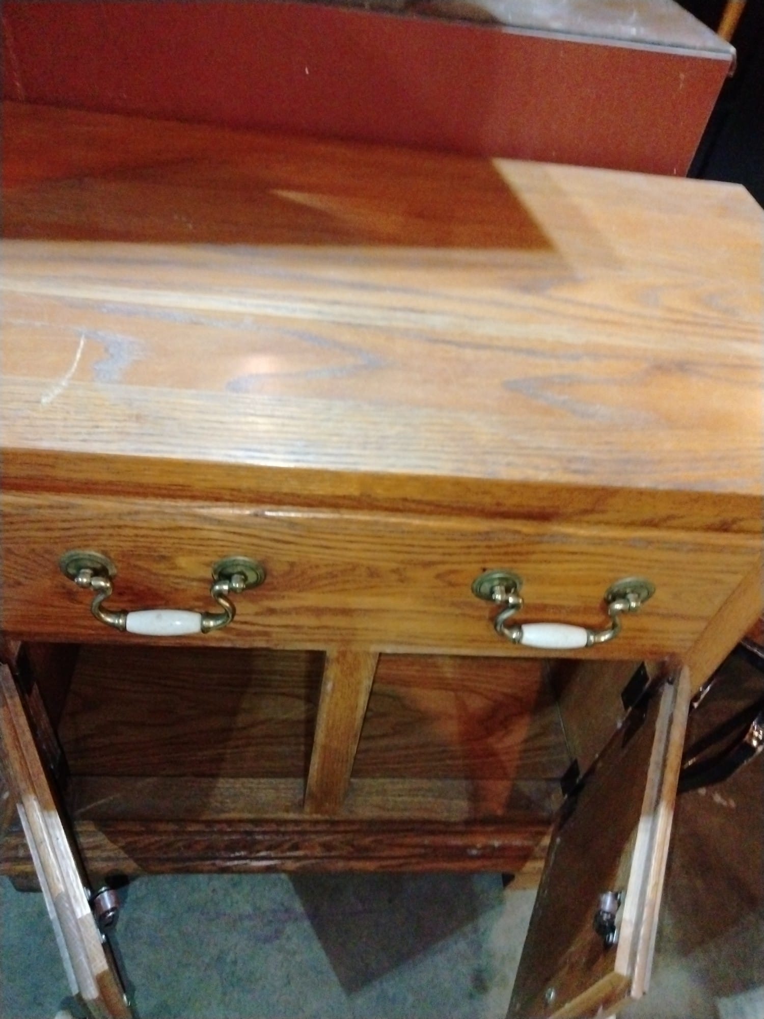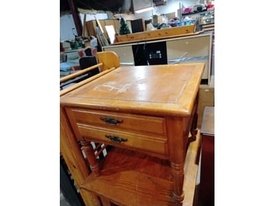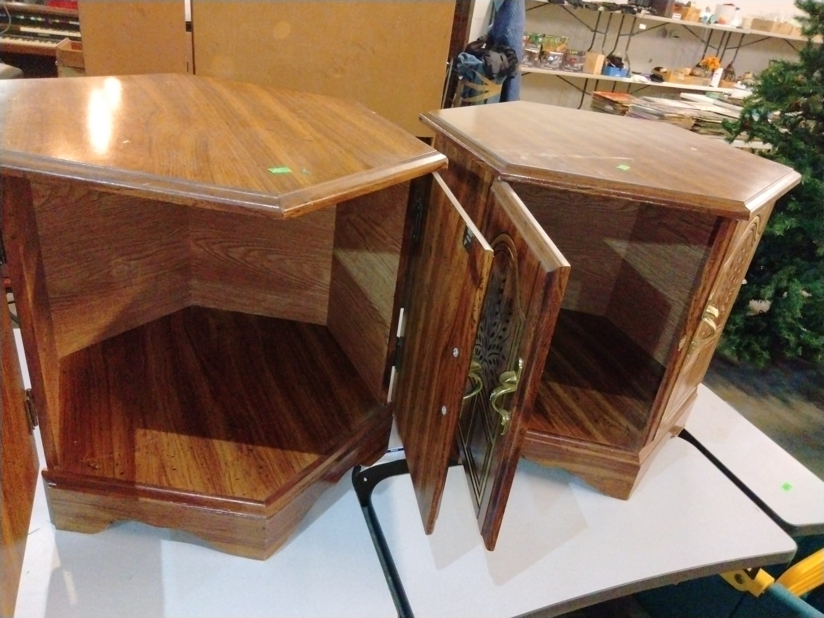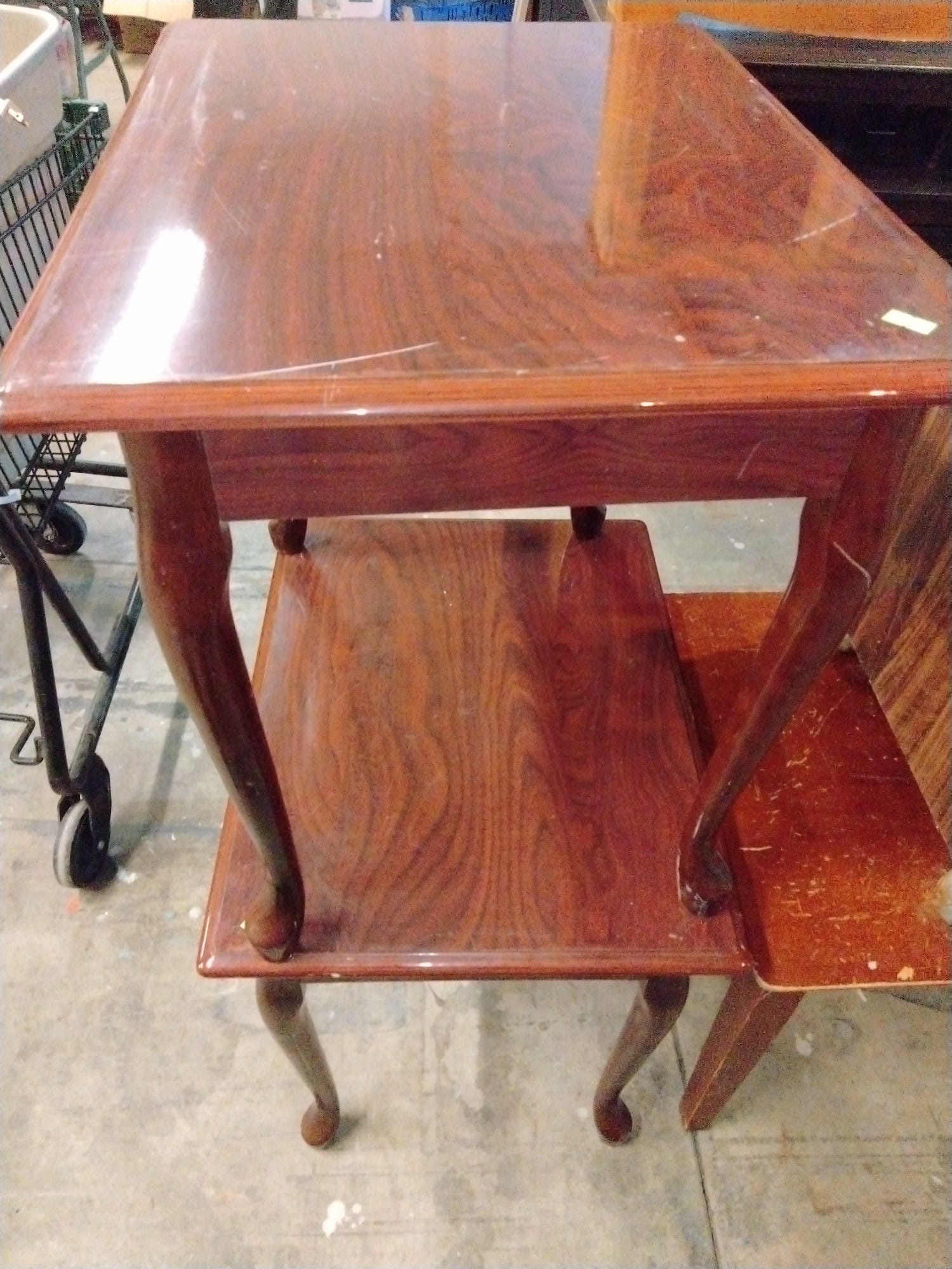 167 W P Johnson file cabinet and end table with damage 27x27x19