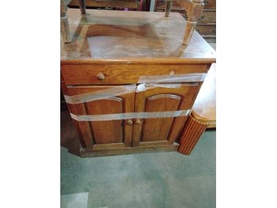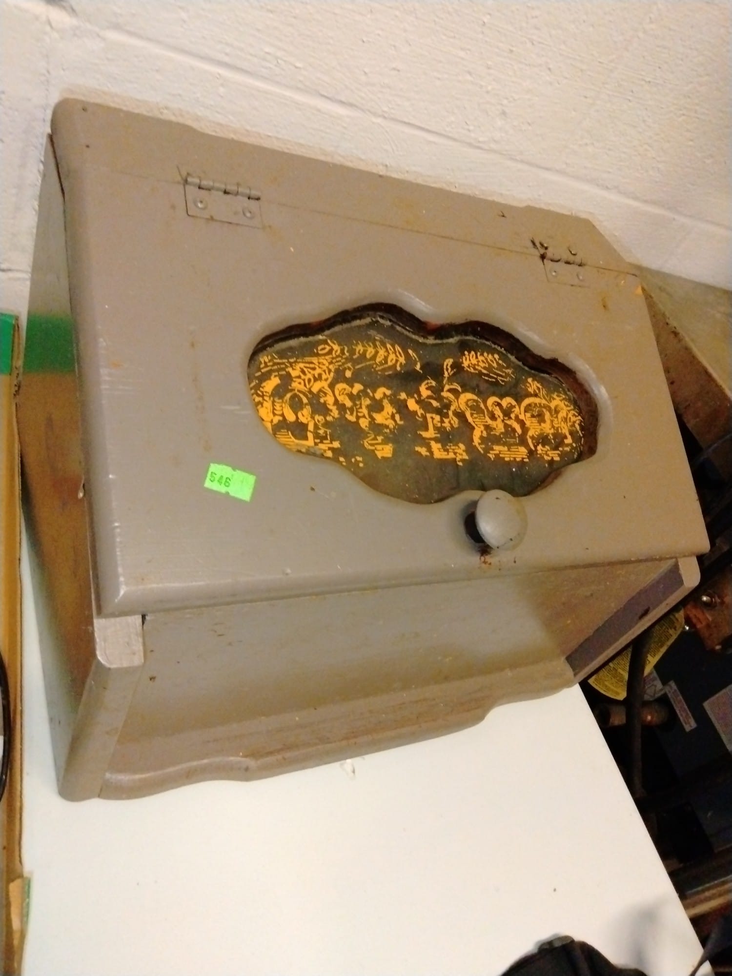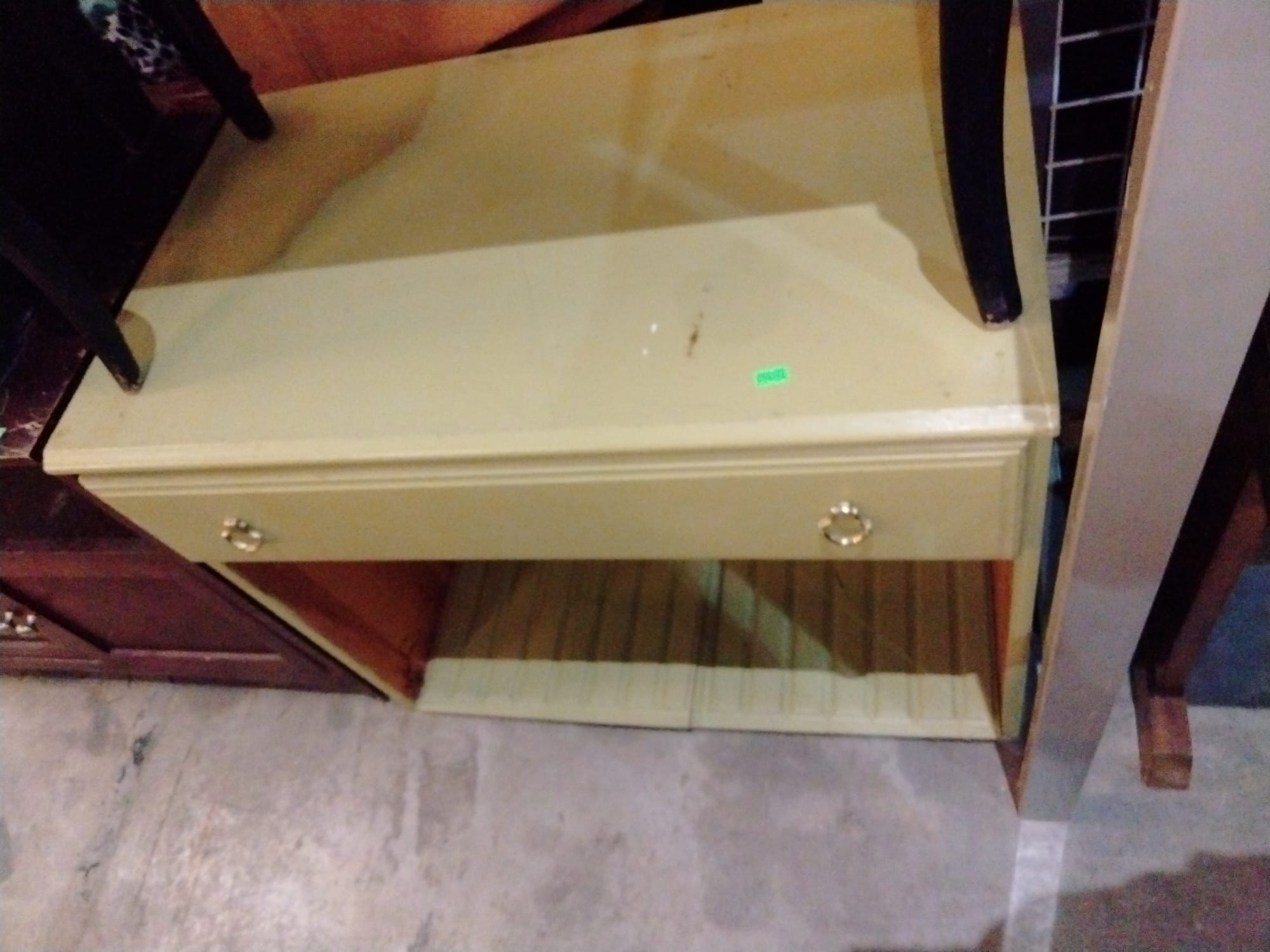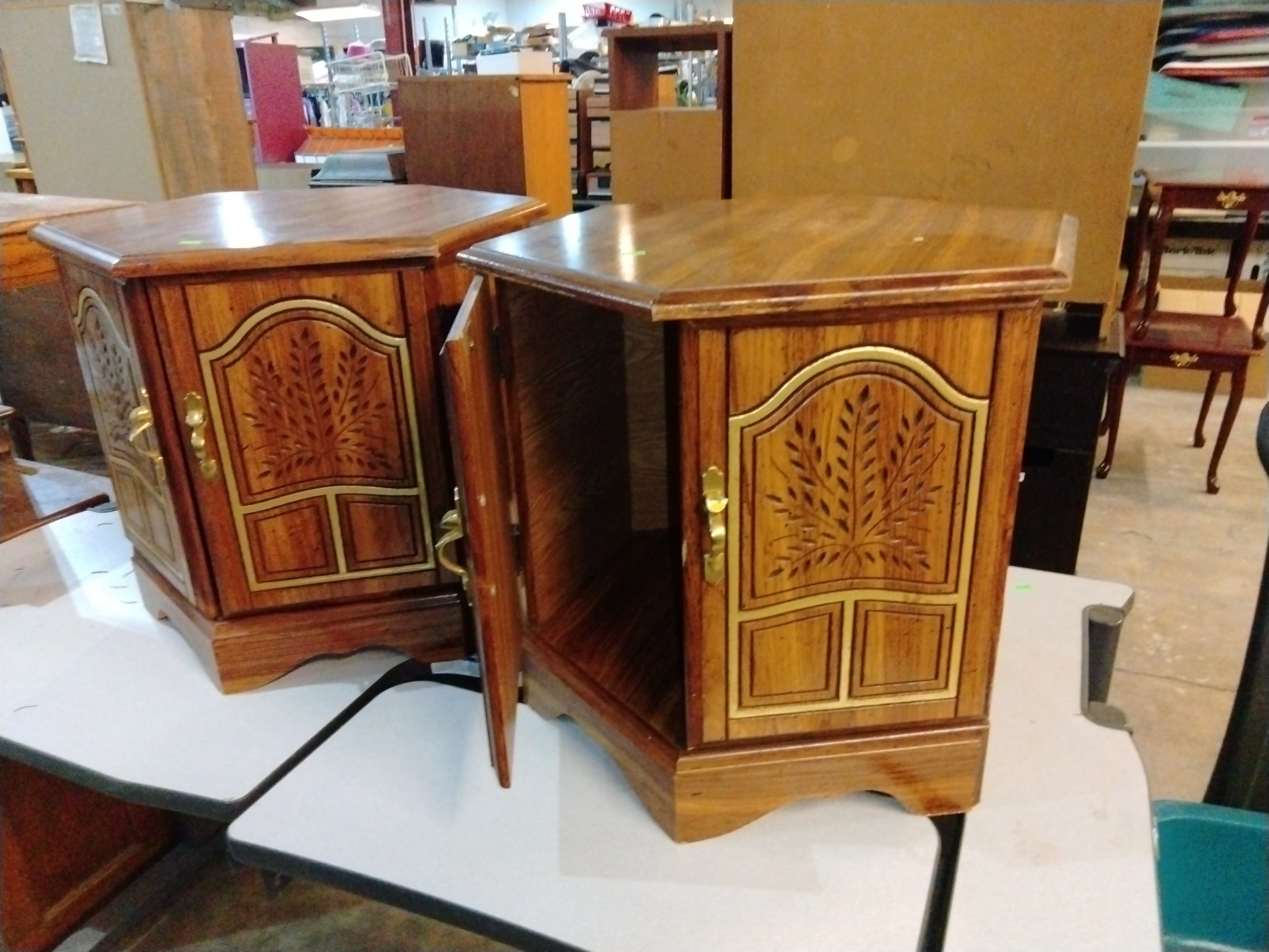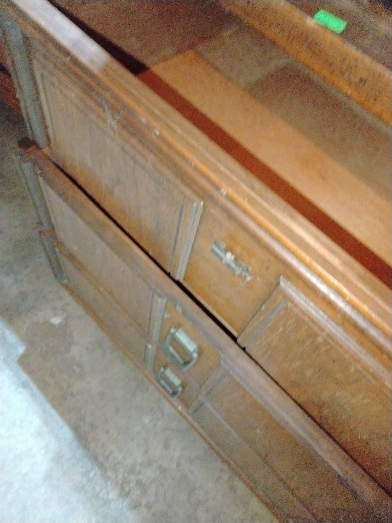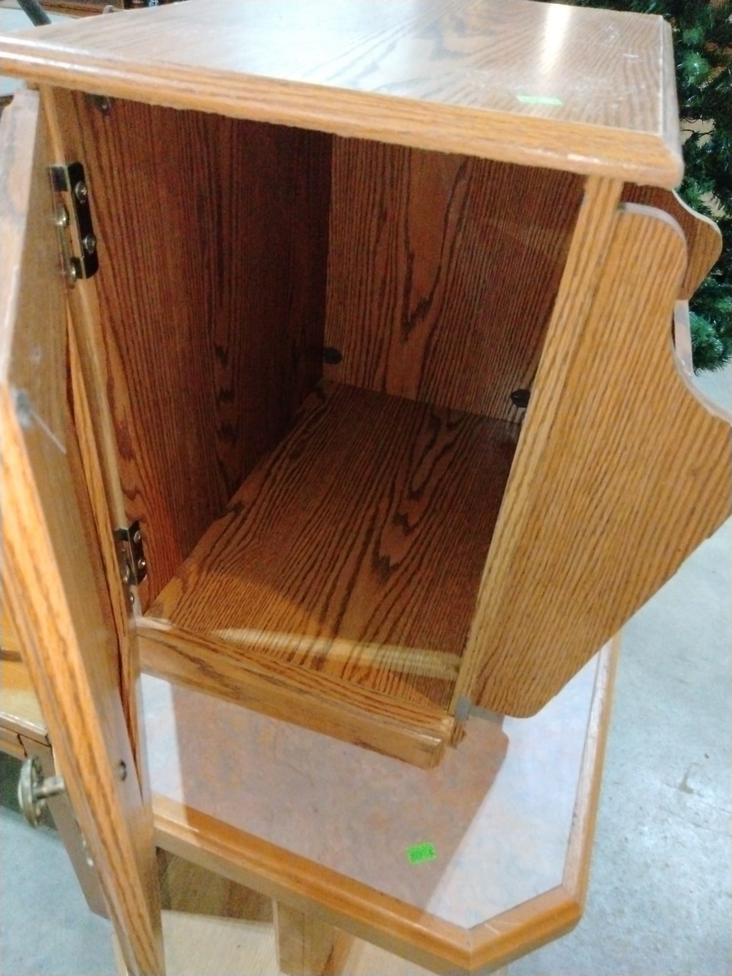 167 W P Johnson file cabinet and end table with damage 27x27x19