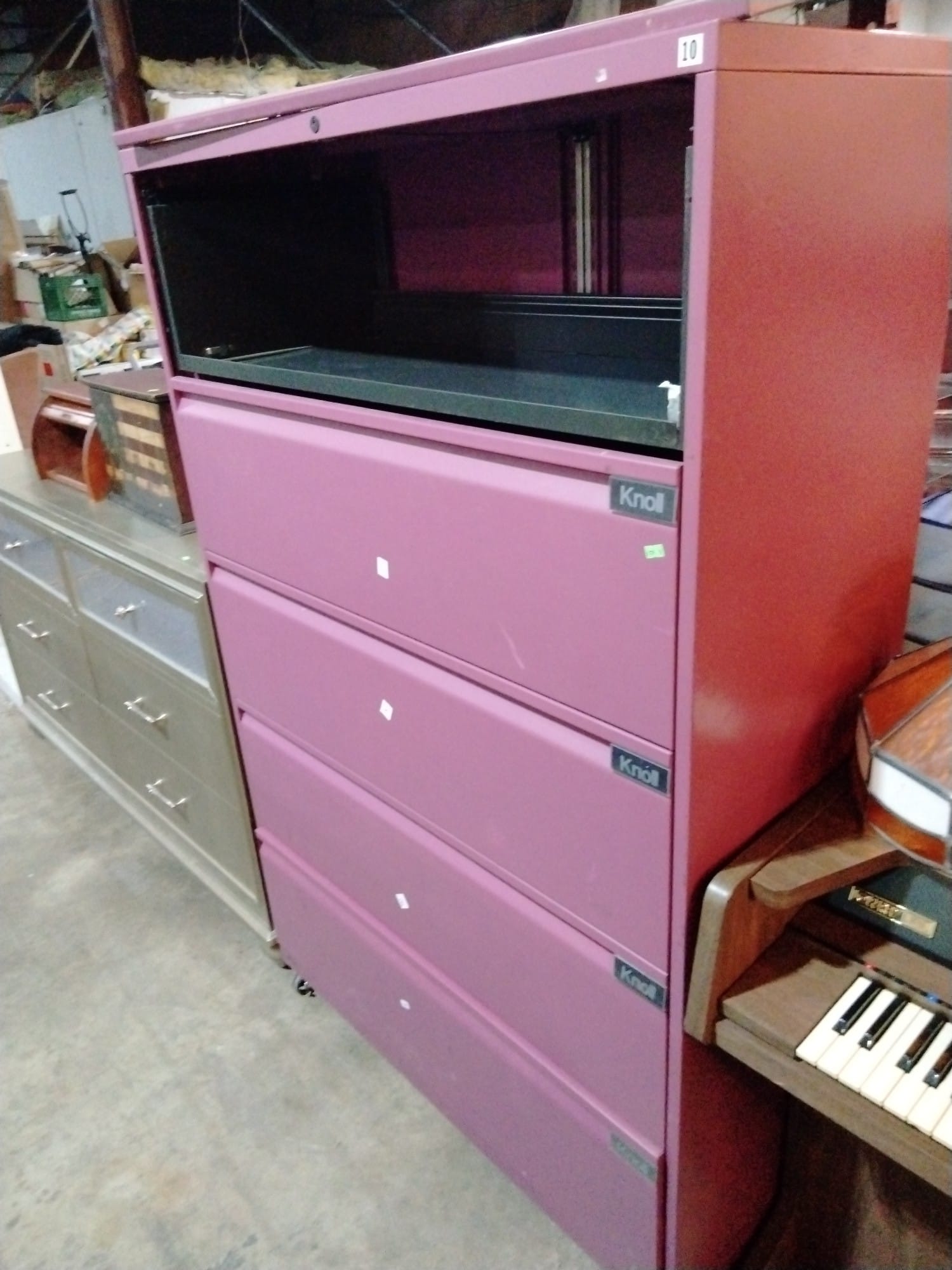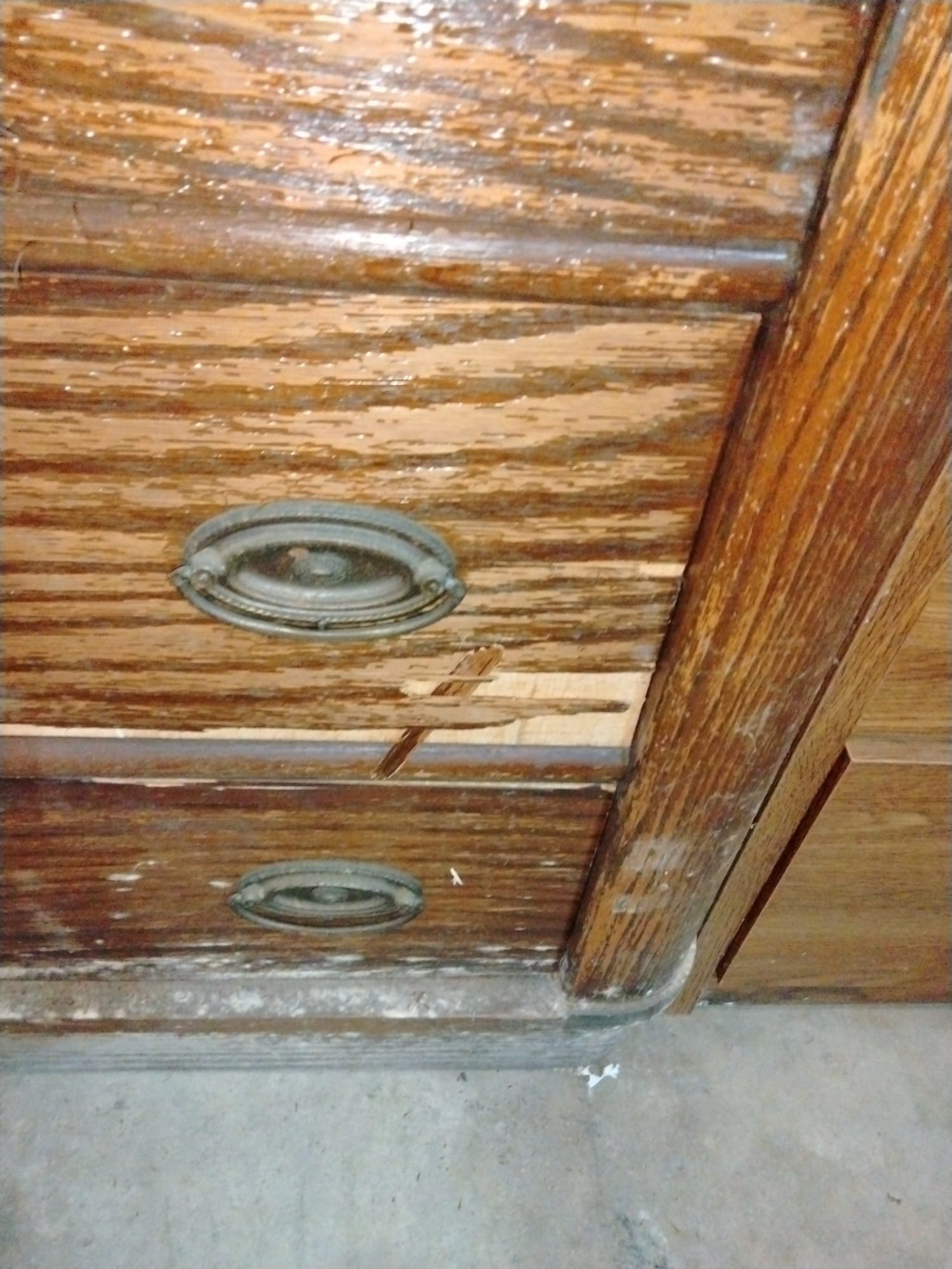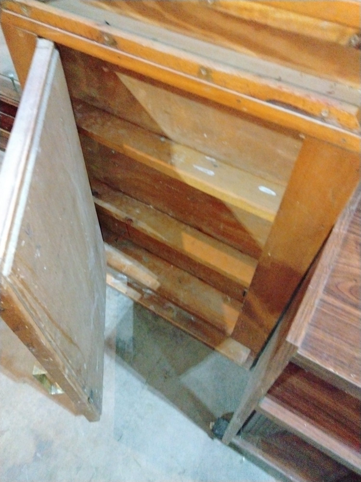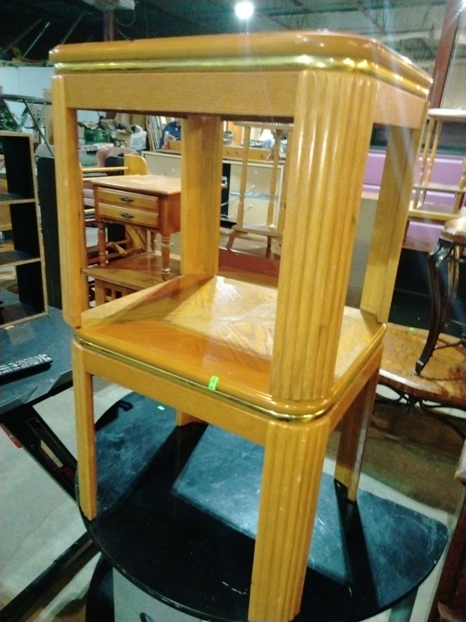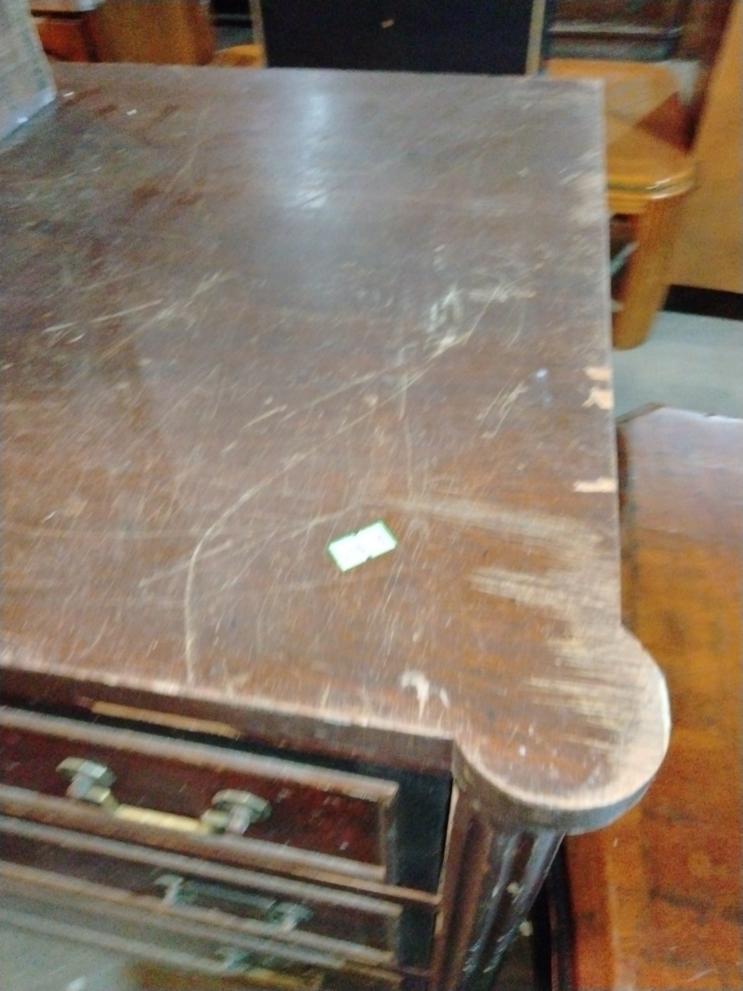 167 W P Johnson file cabinet and end table with damage 27x27x19