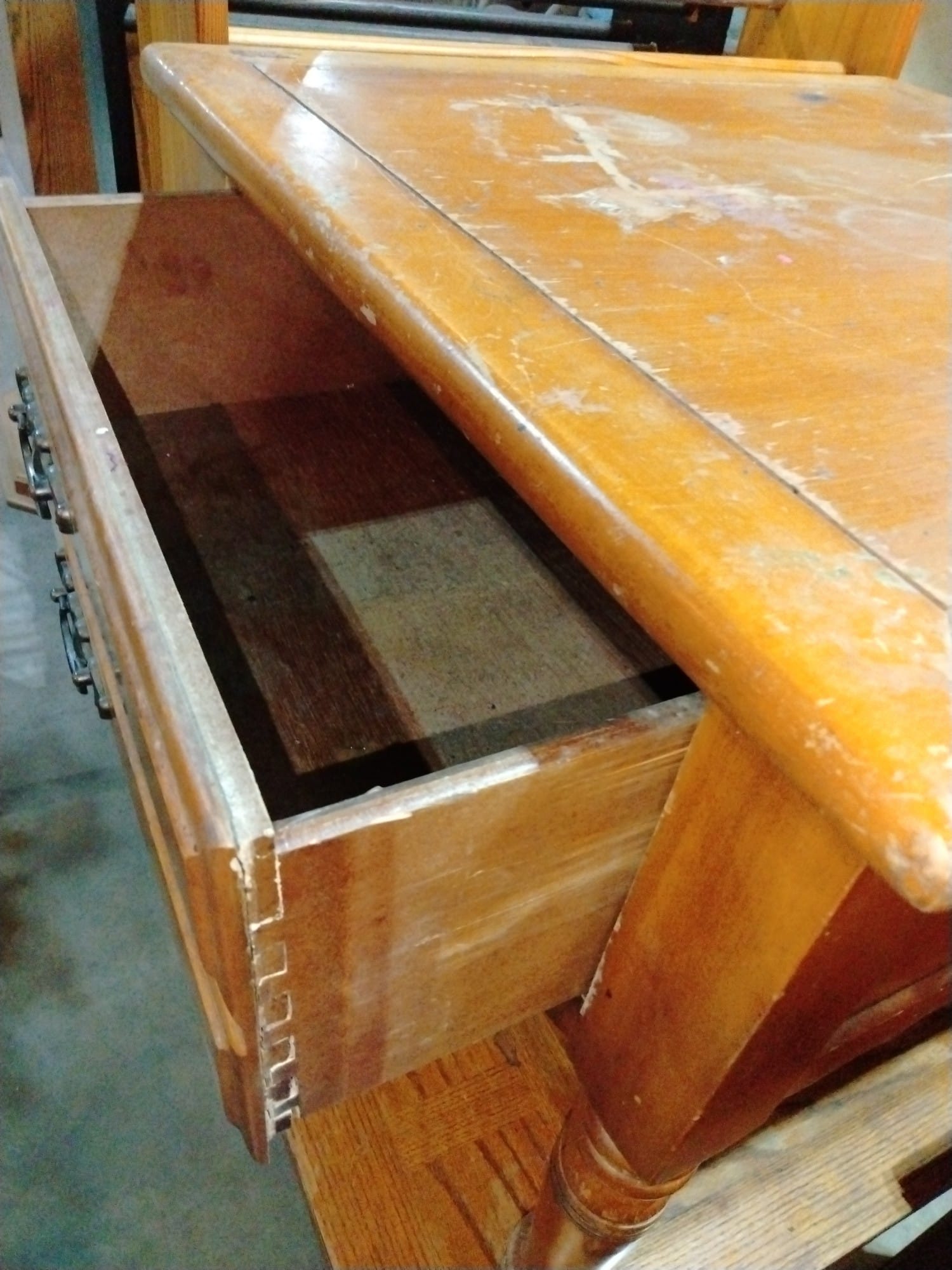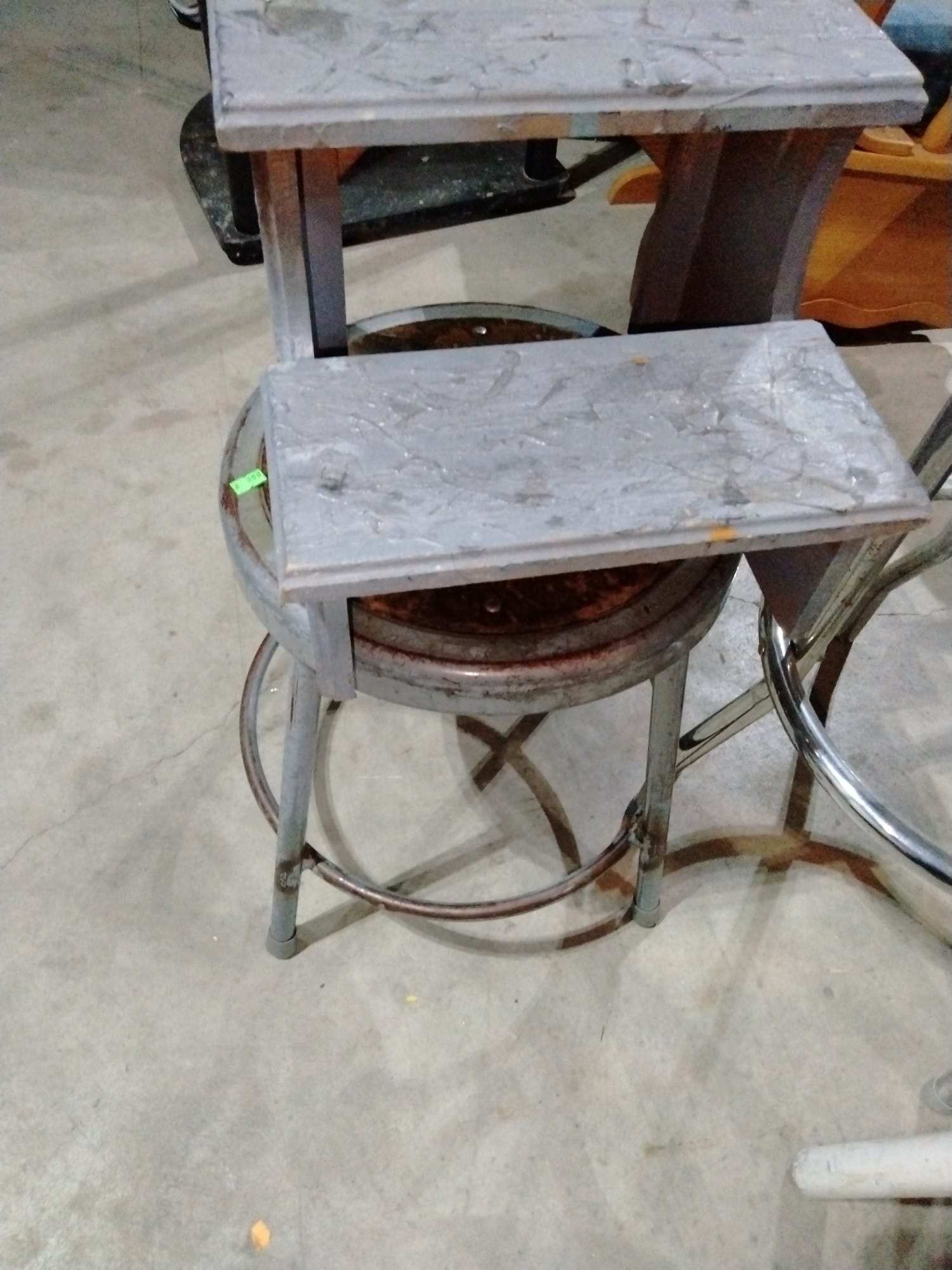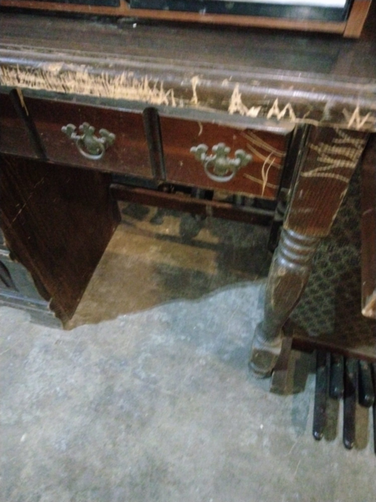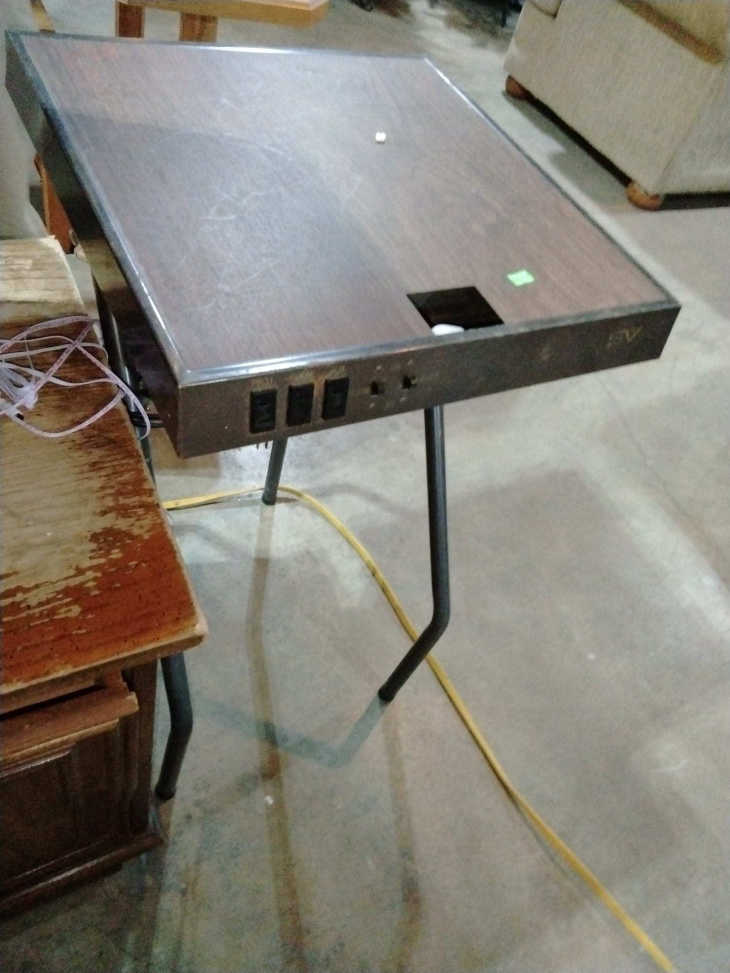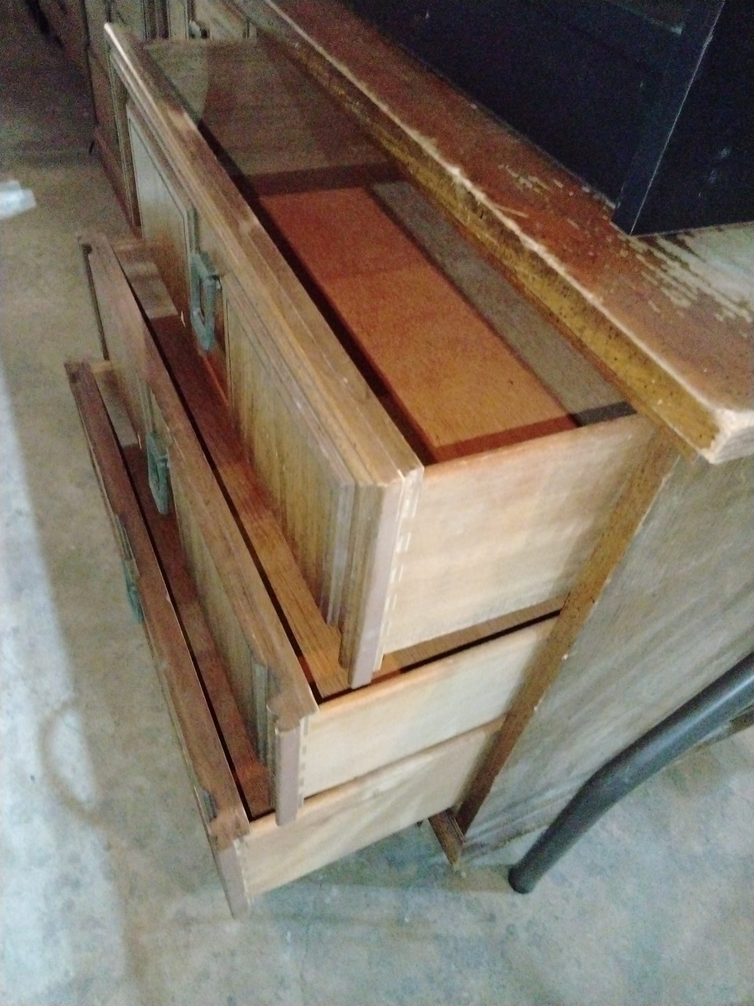 167 W P Johnson file cabinet and end table with damage 27x27x19