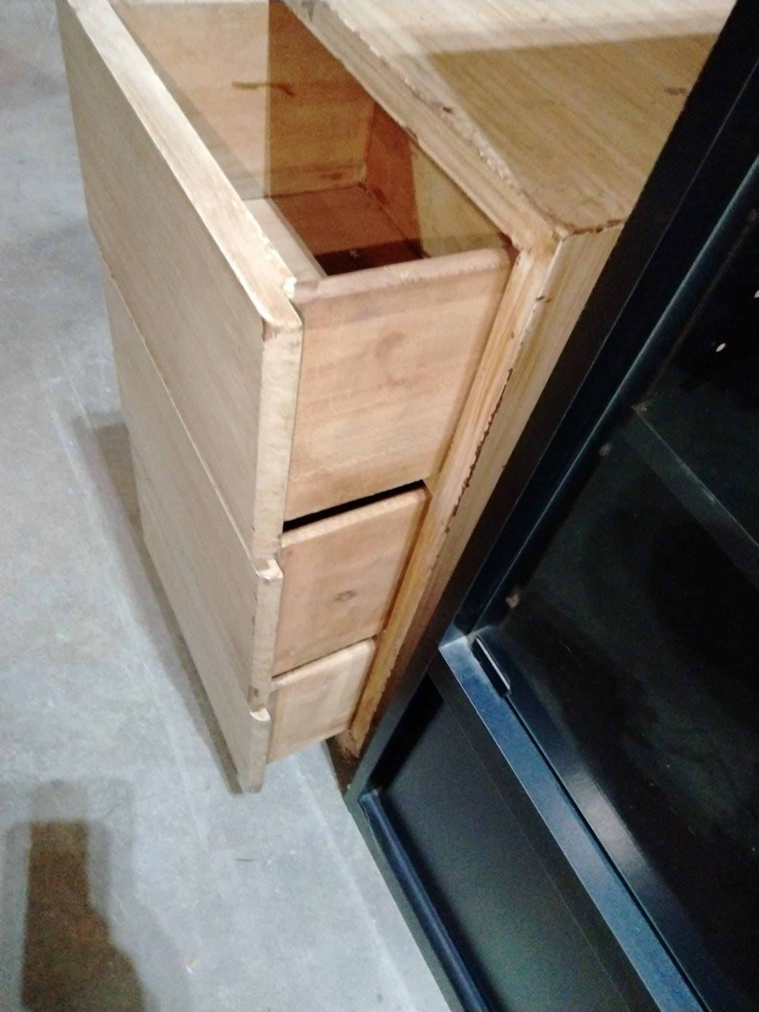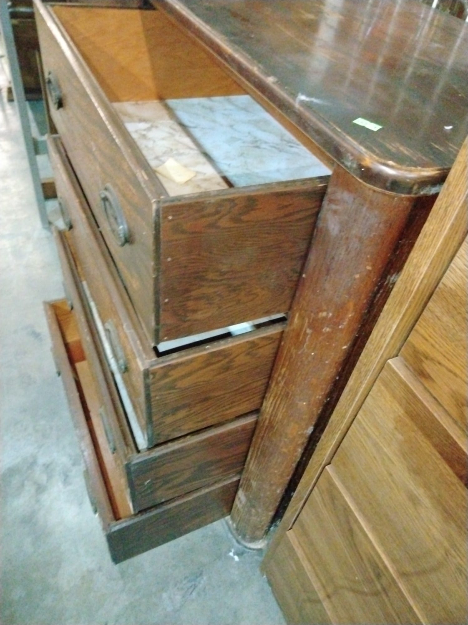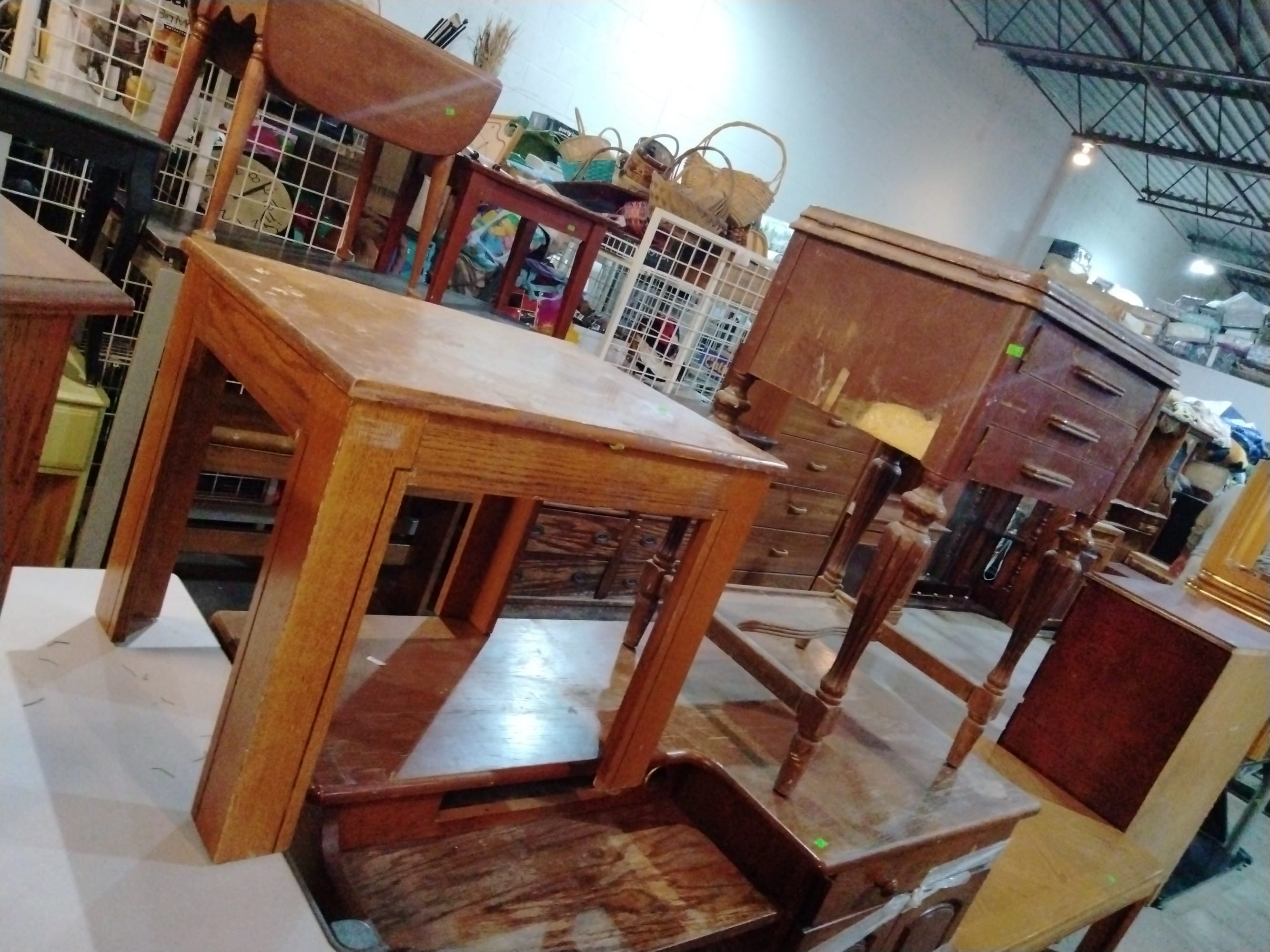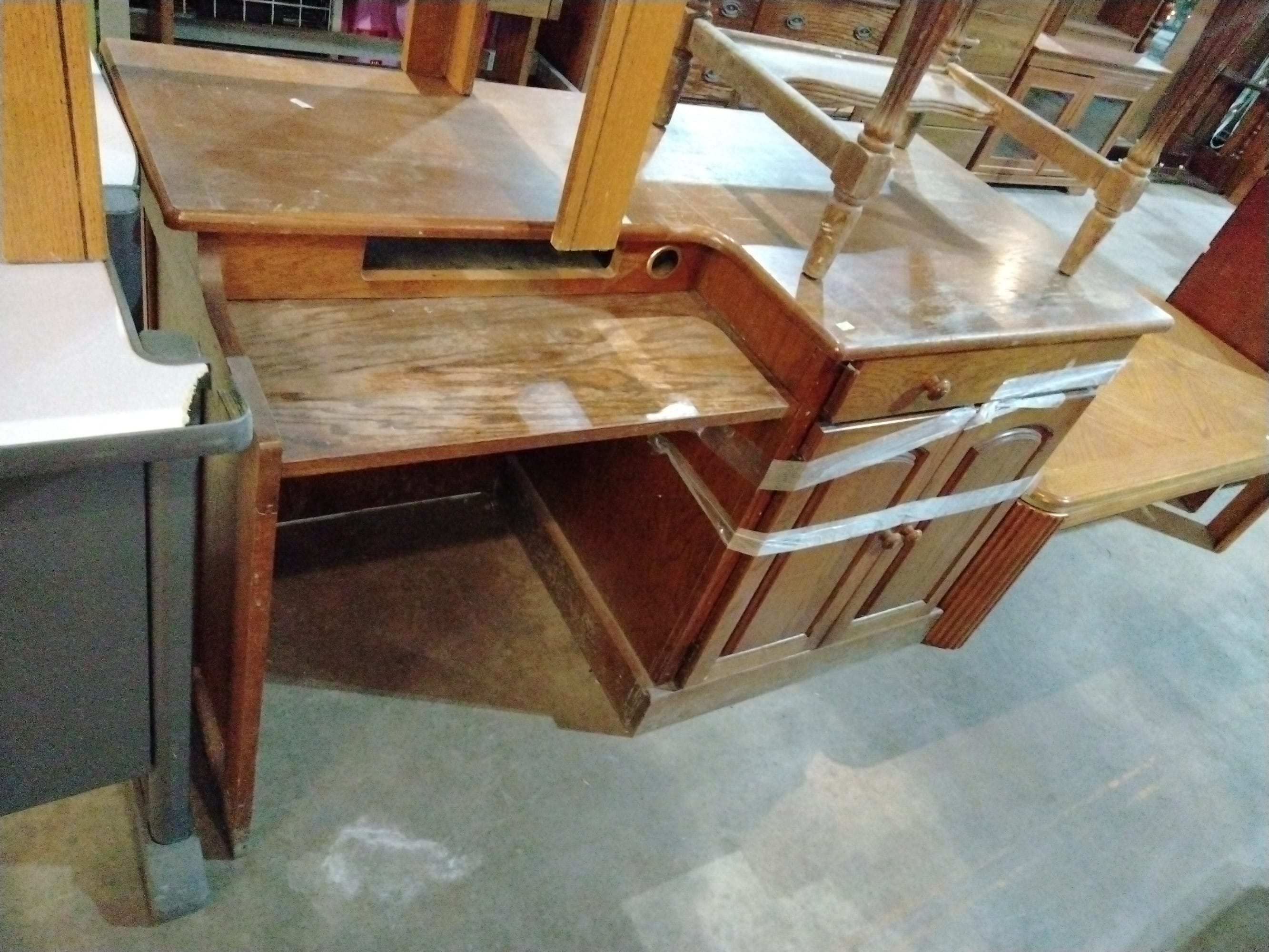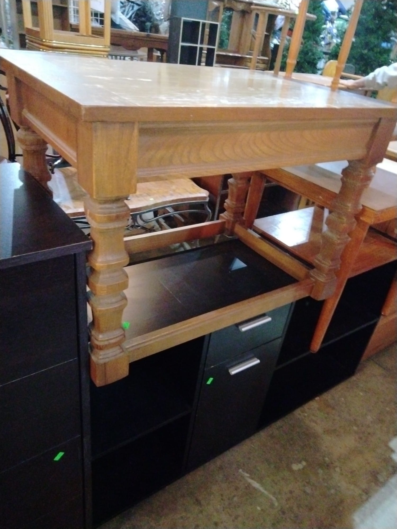167 W P Johnson file cabinet and end table with damage 27x27x19