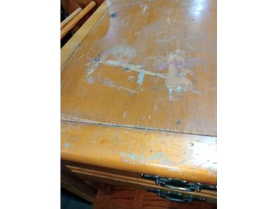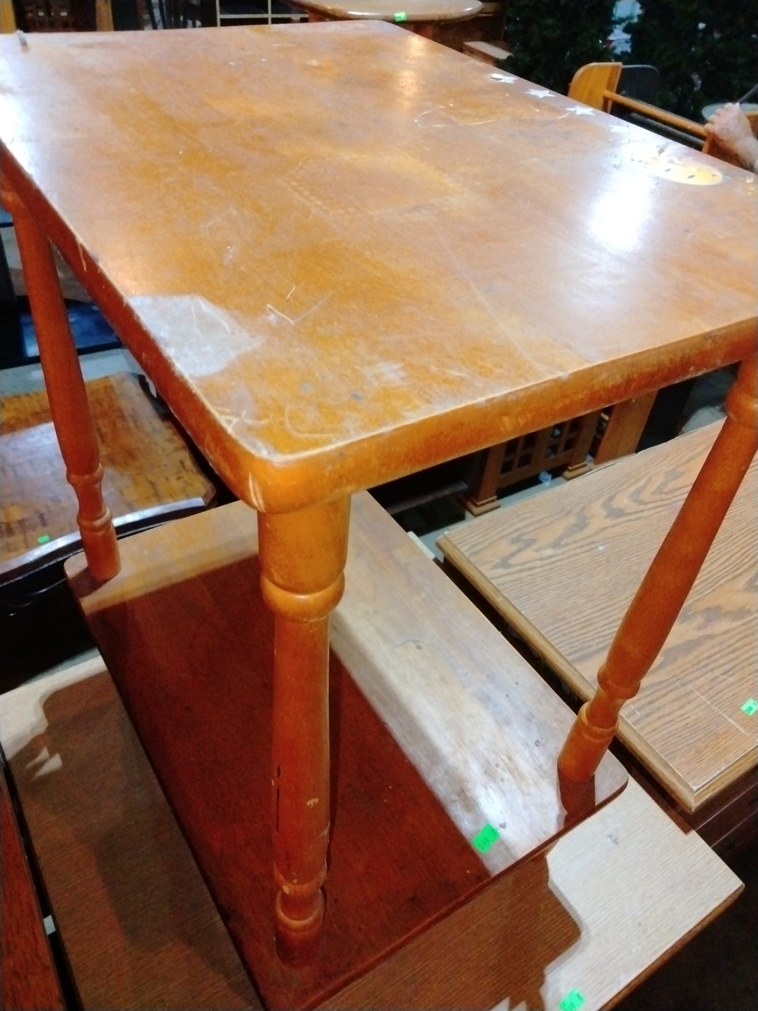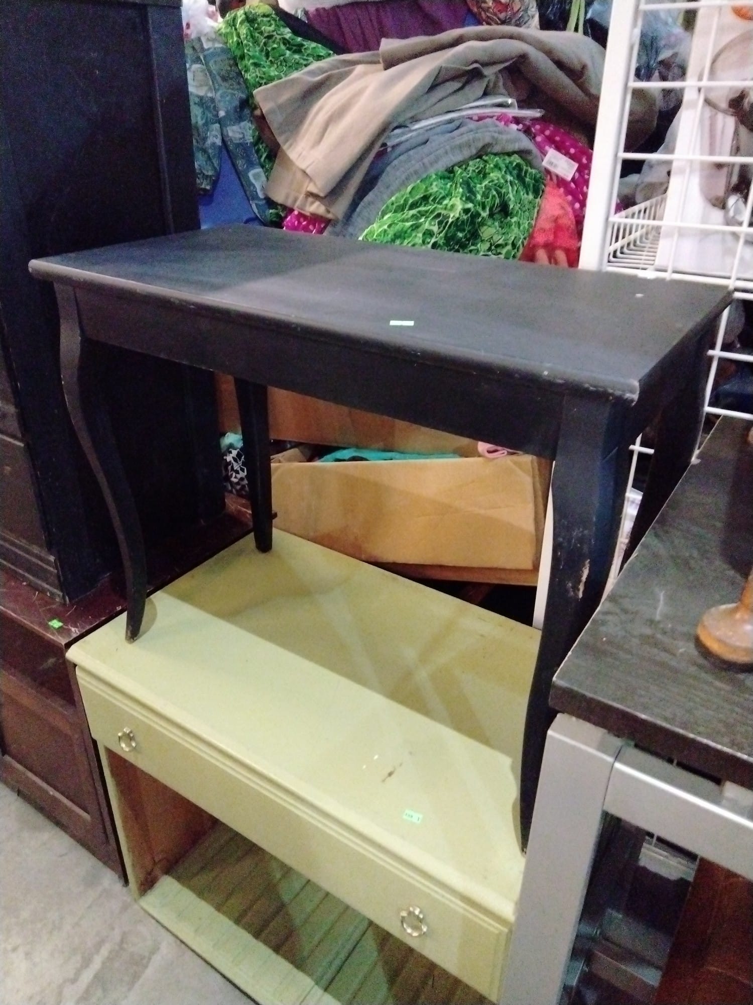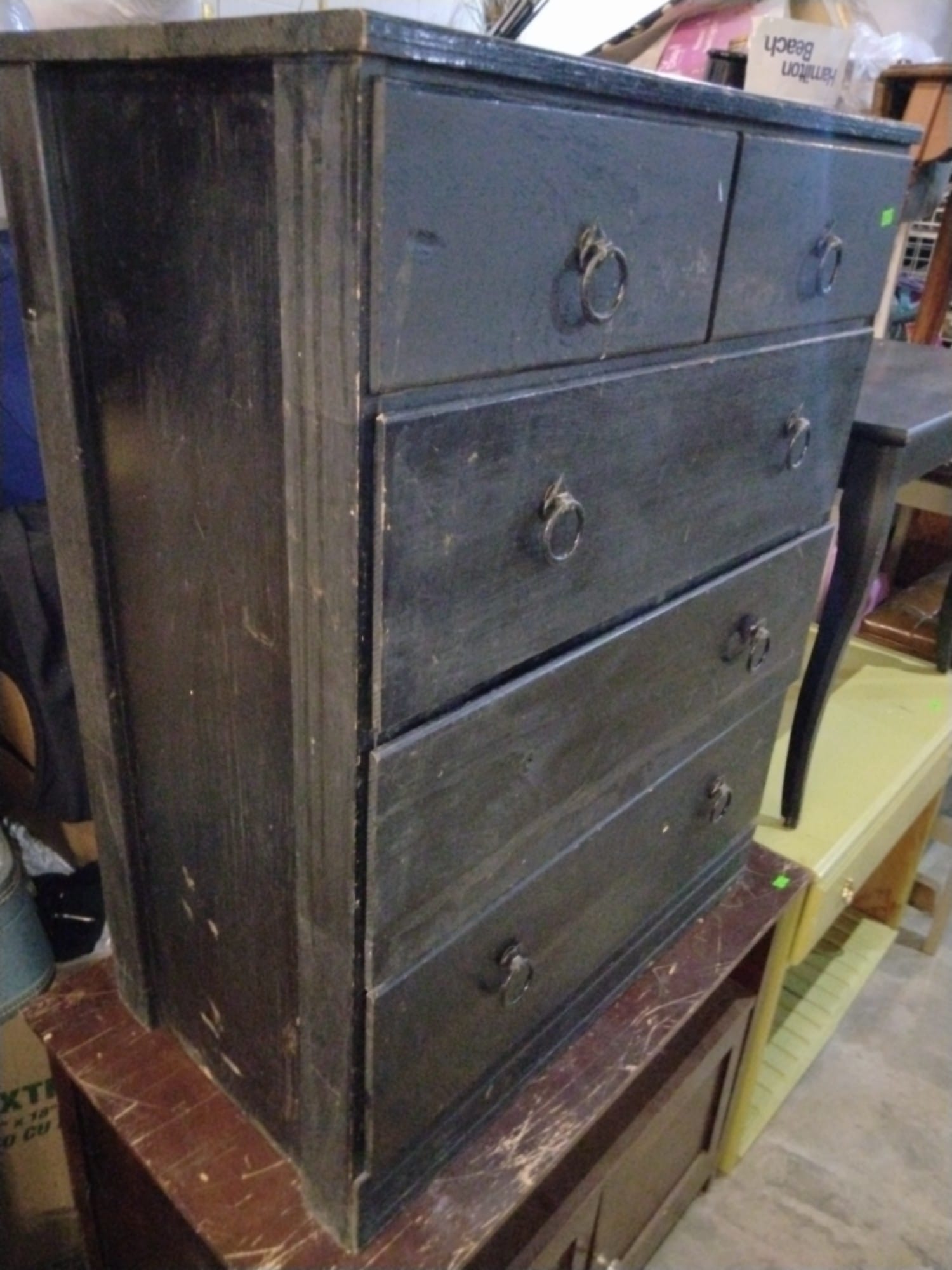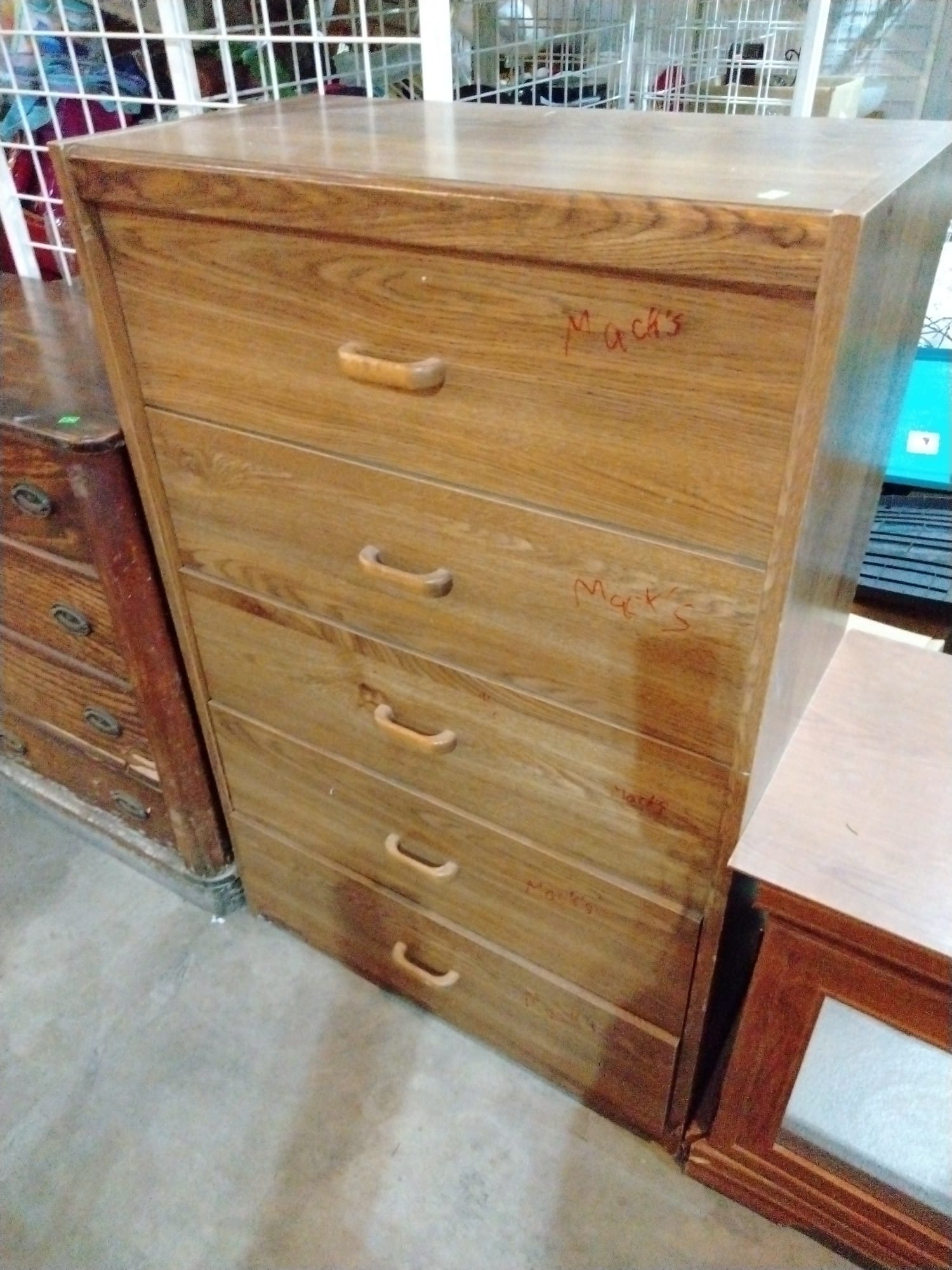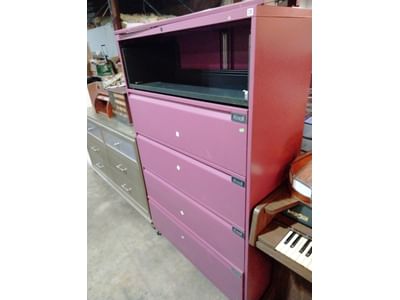 167 W P Johnson file cabinet and end table with damage 27x27x19