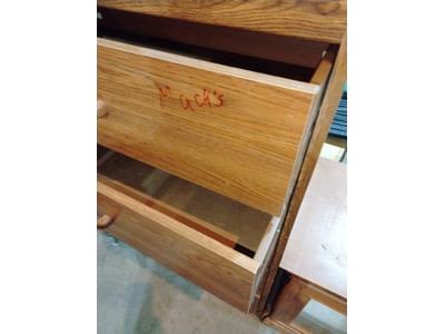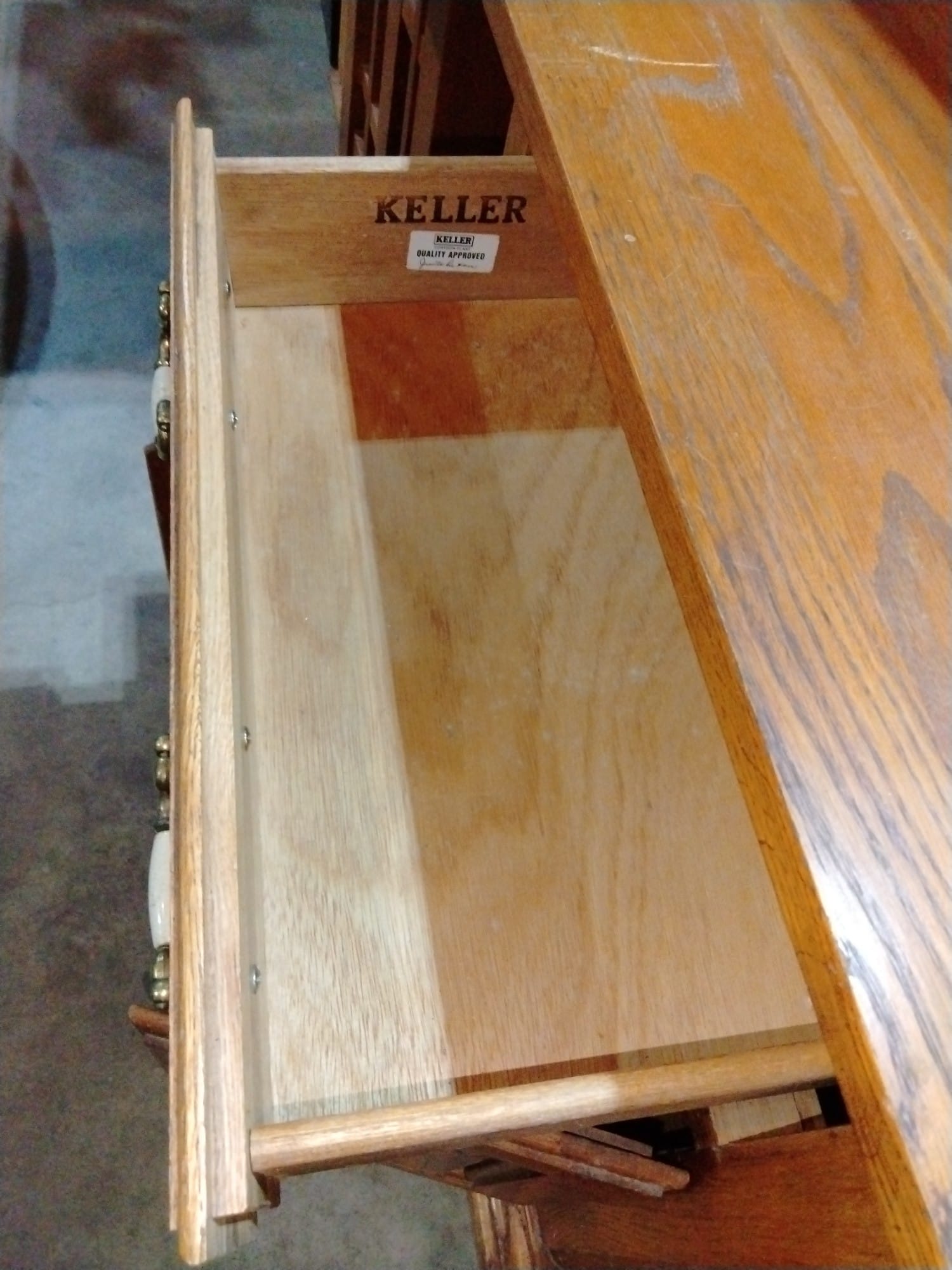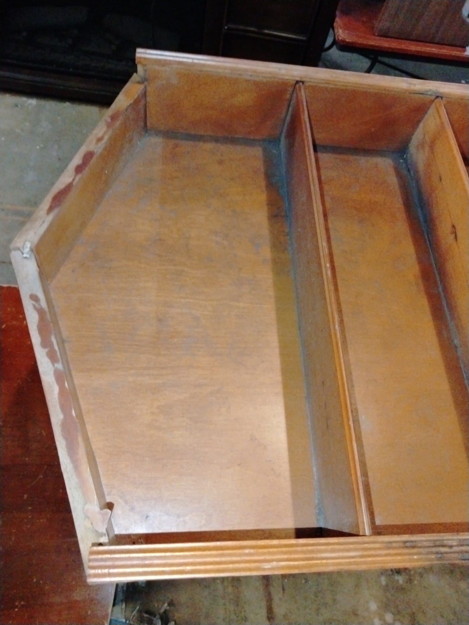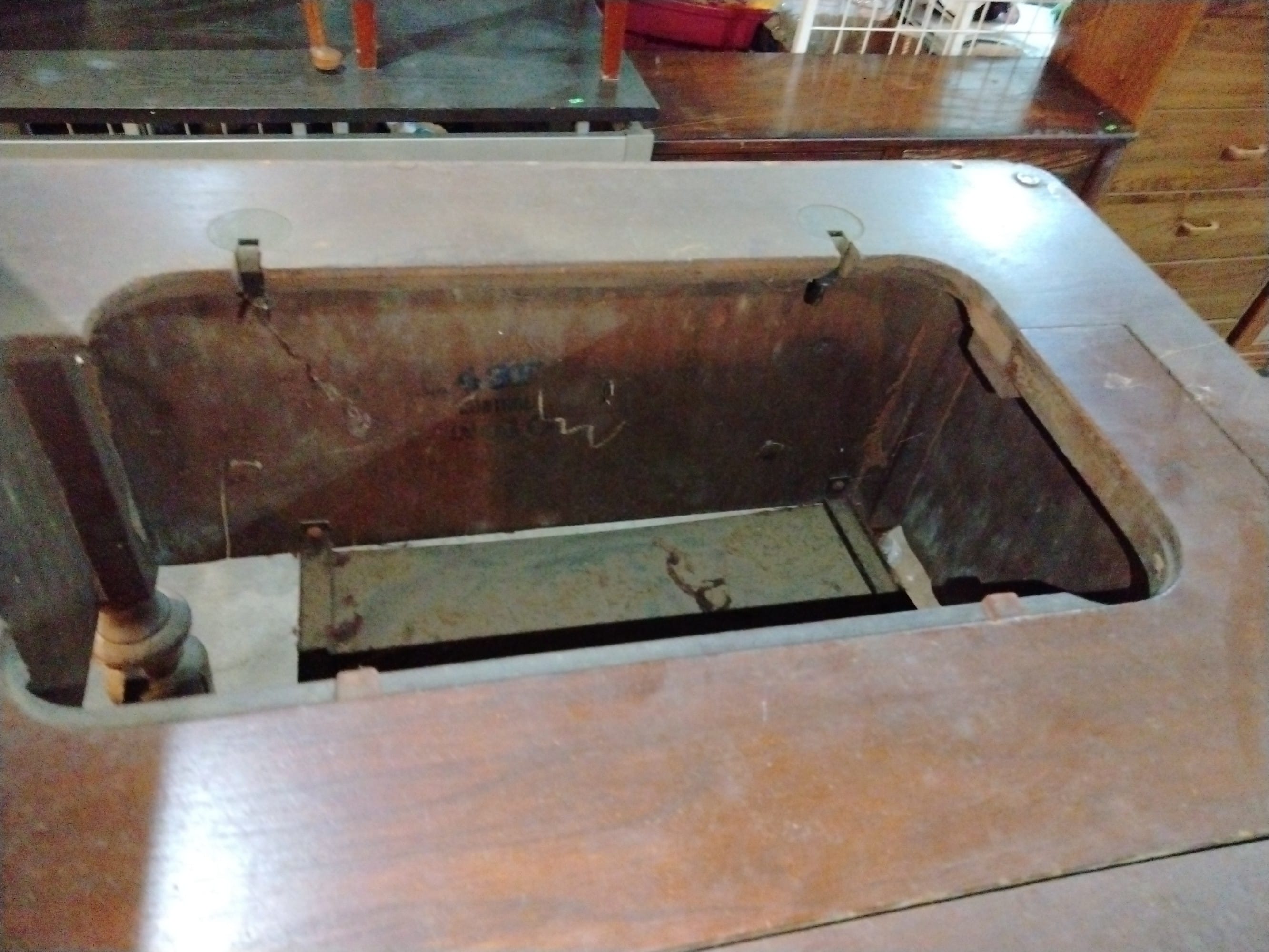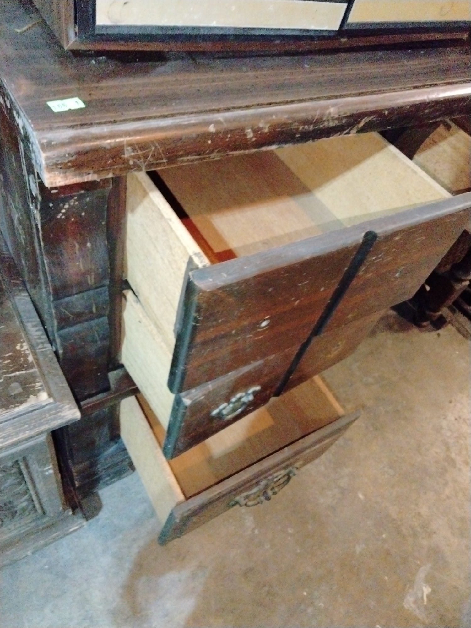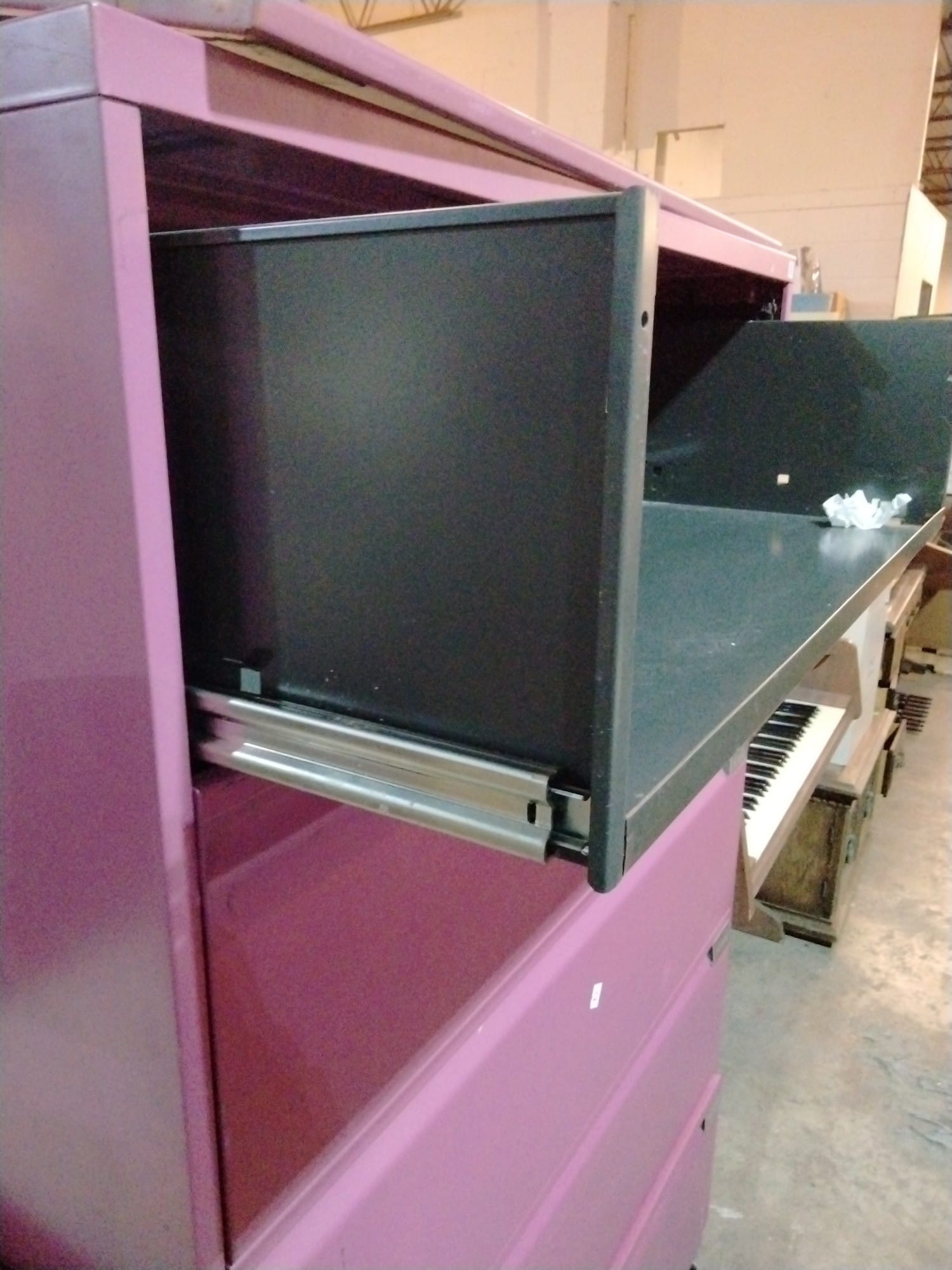 167 W P Johnson file cabinet and end table with damage 27x27x19