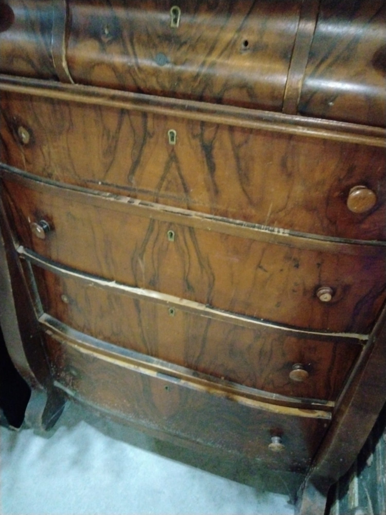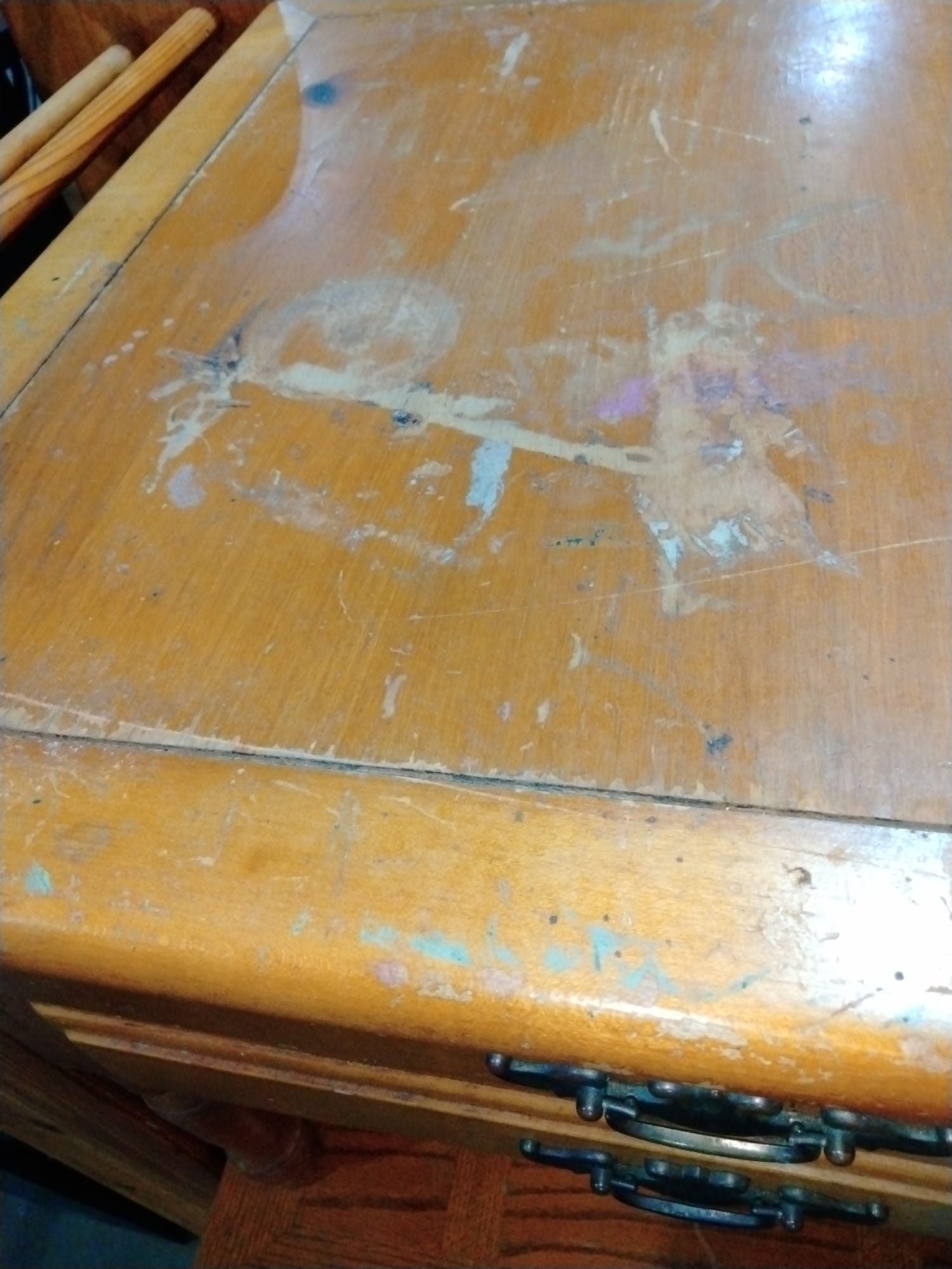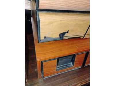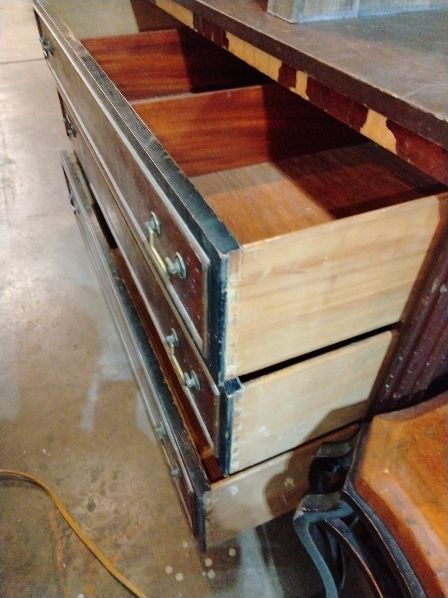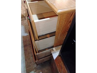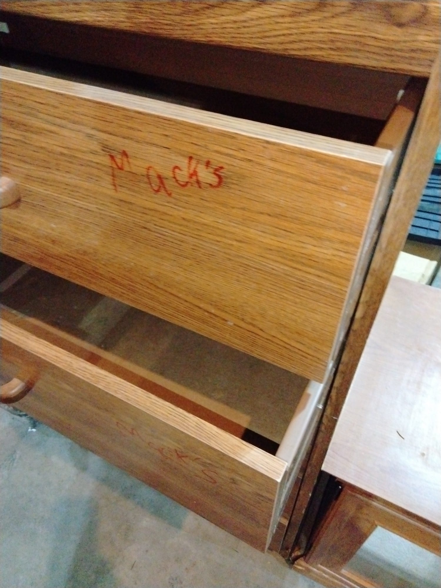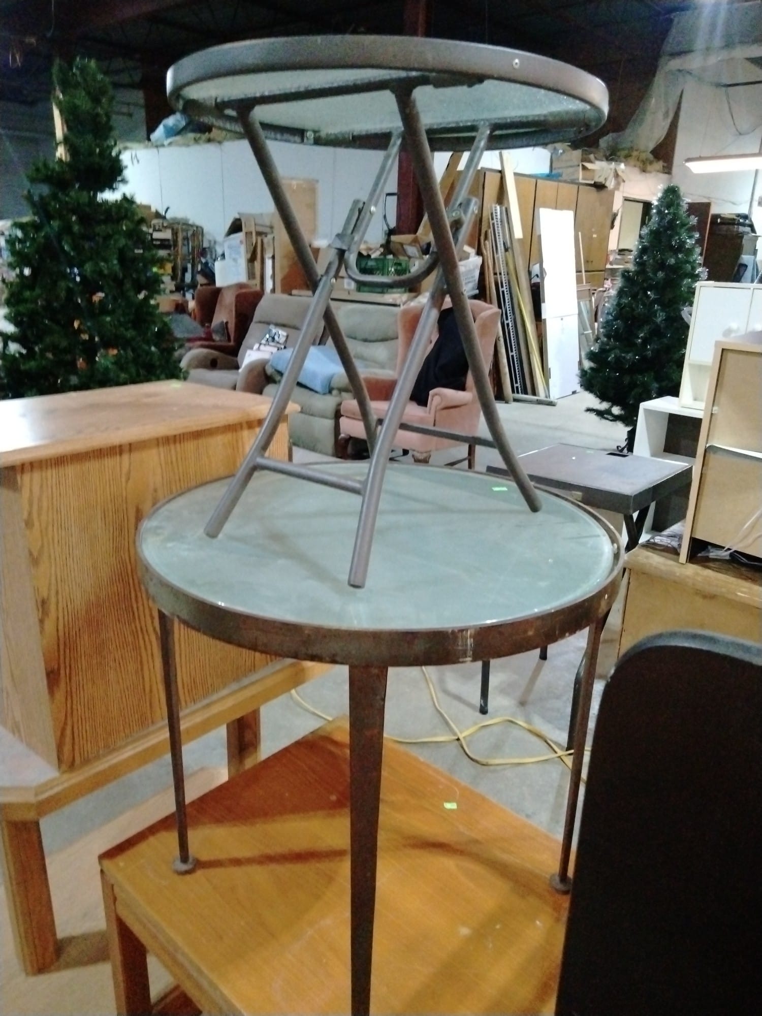 167 W P Johnson file cabinet and end table with damage 27x27x19