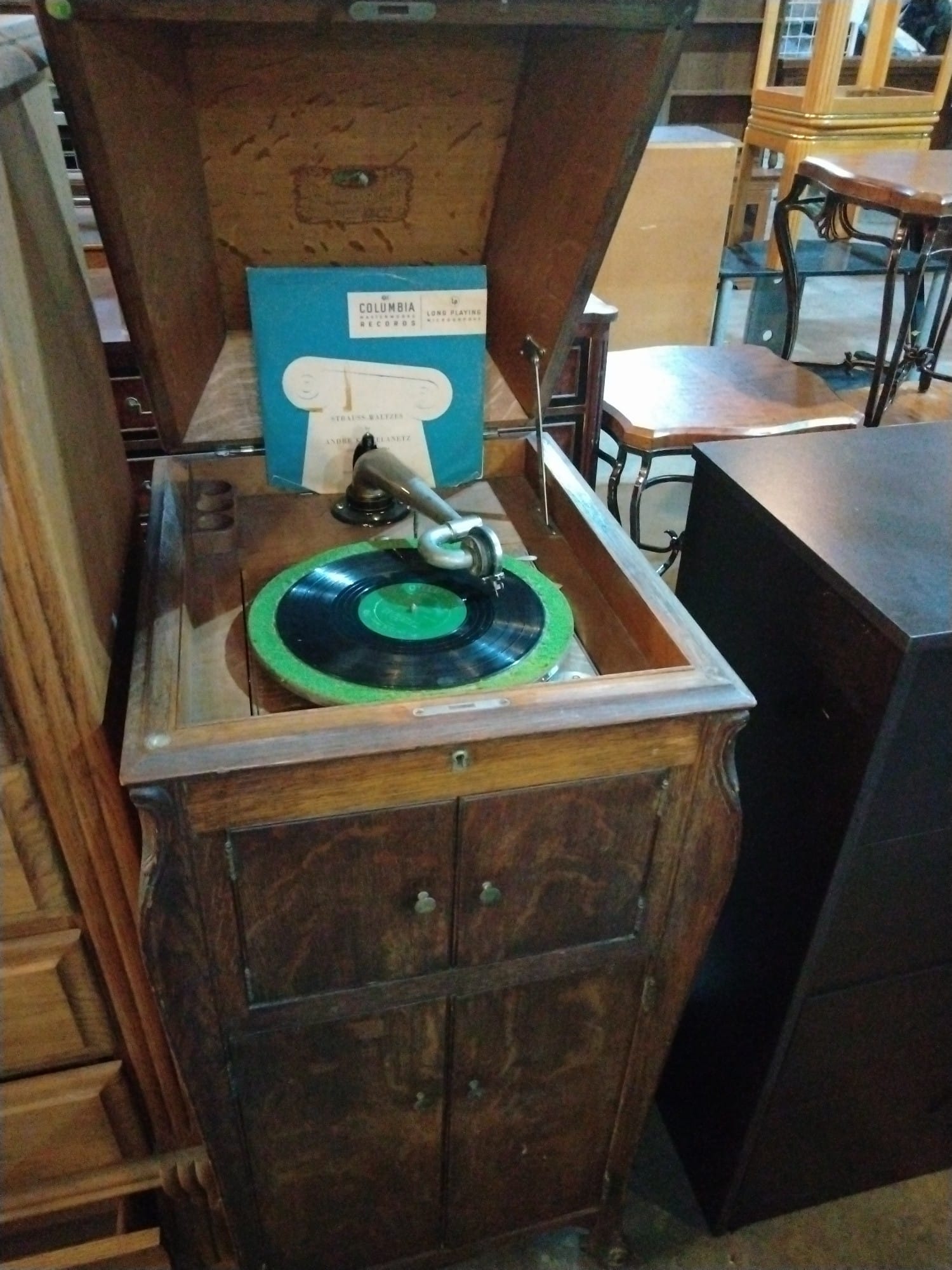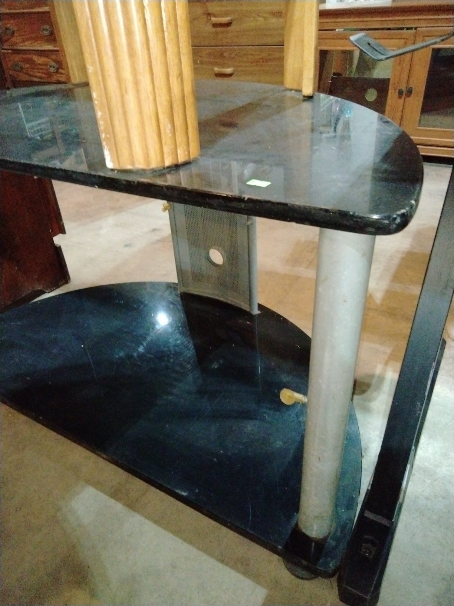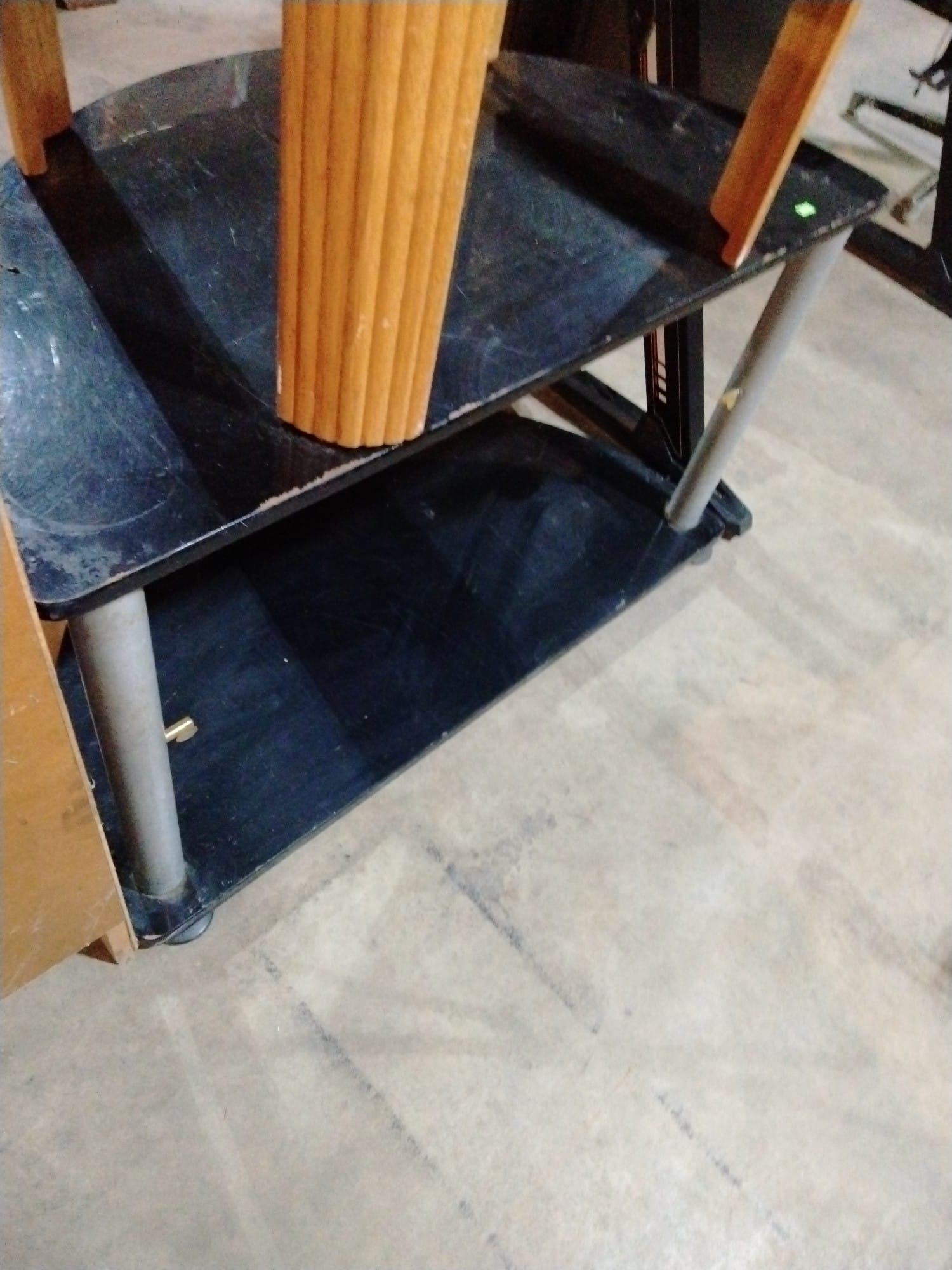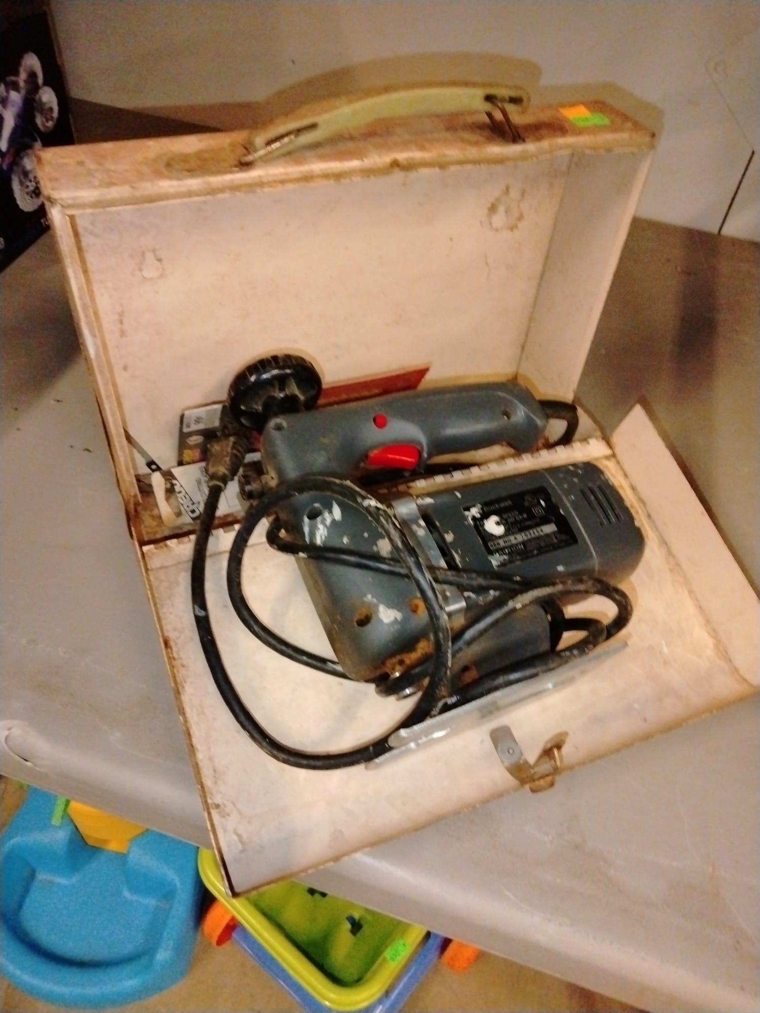167 W P Johnson file cabinet and end table with damage 27x27x19