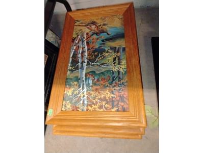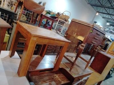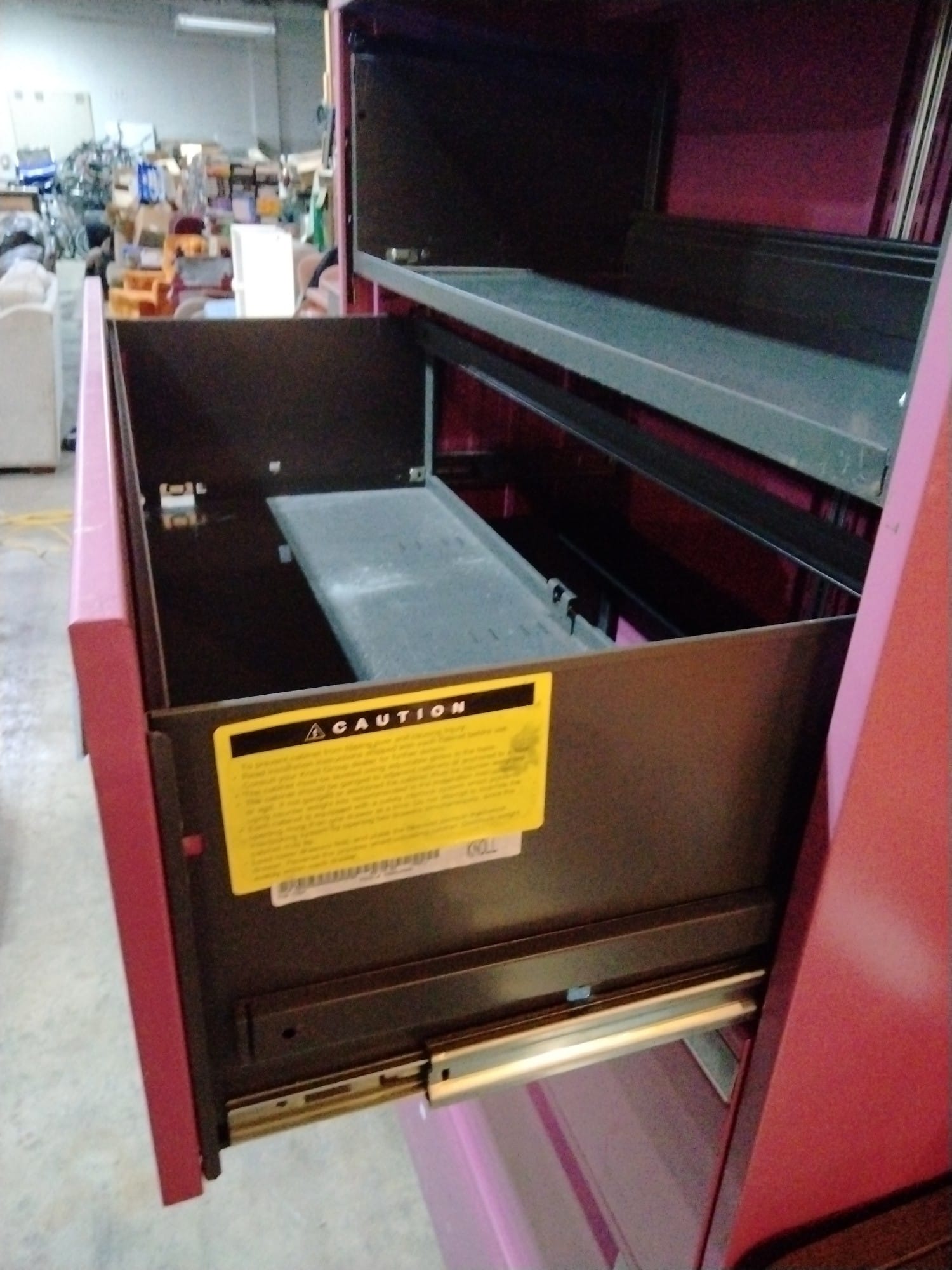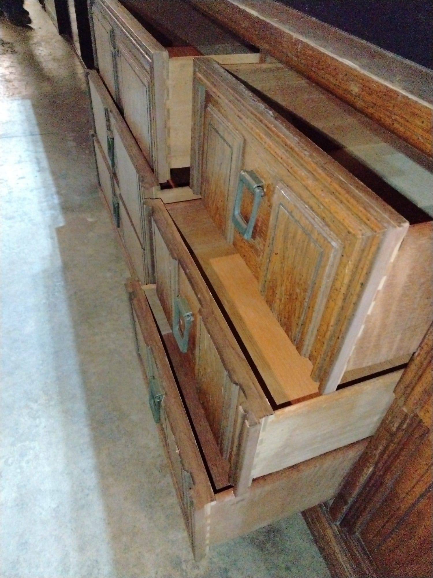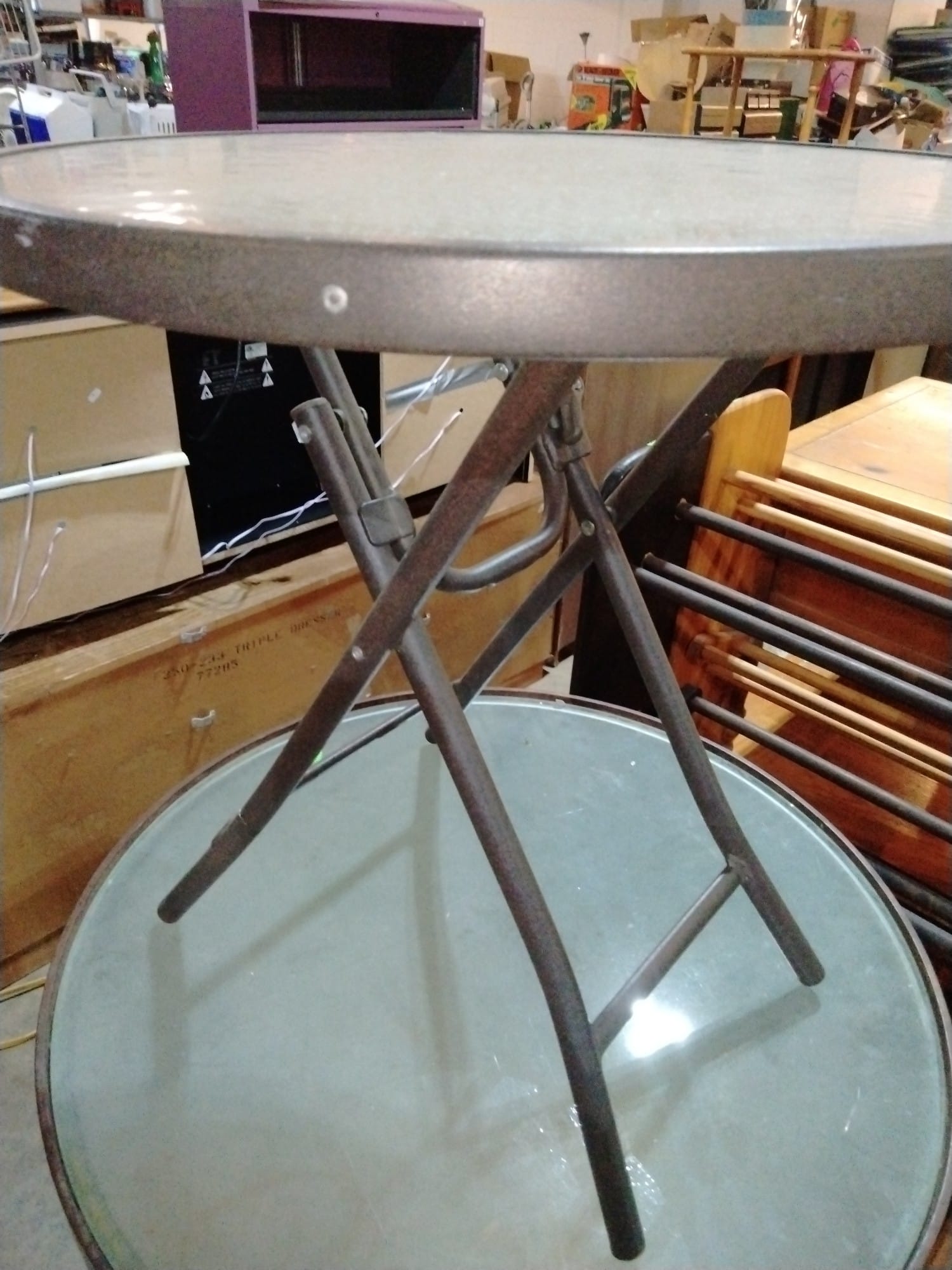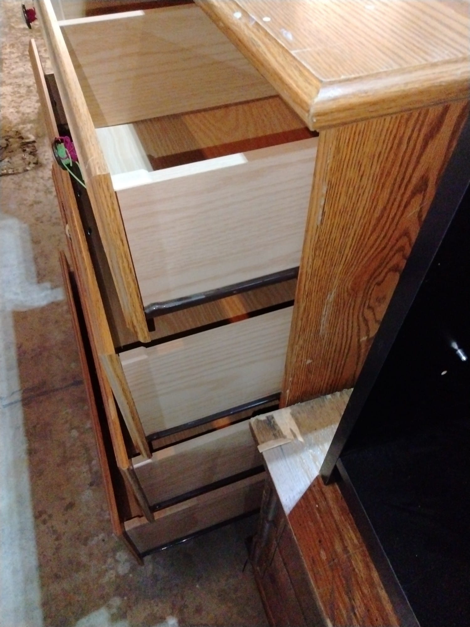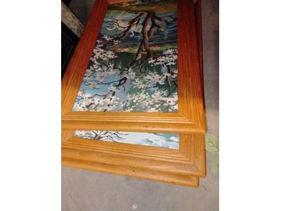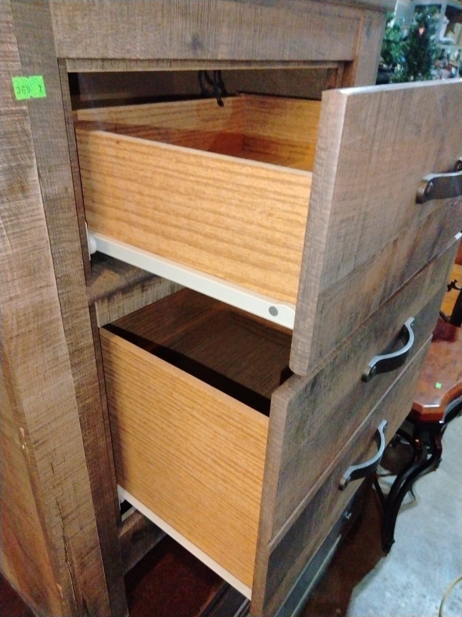 167 W P Johnson file cabinet and end table with damage 27x27x19