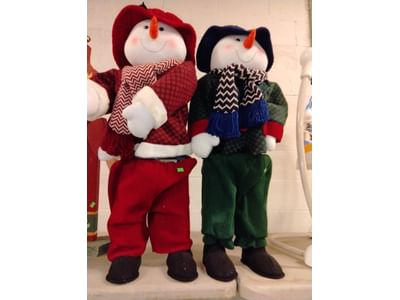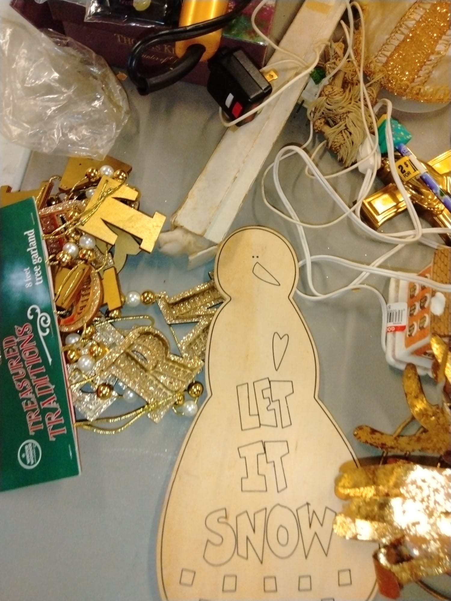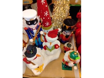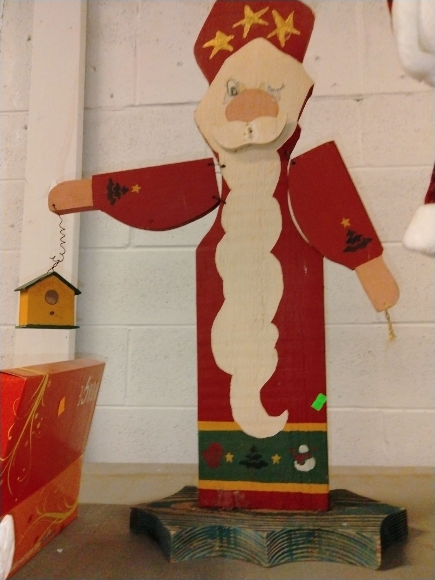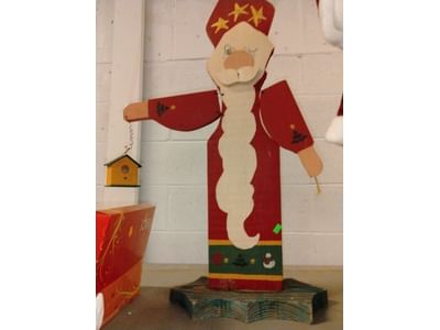825 Wood Christmas tree cutouts, snowmen and assortment, pedestal