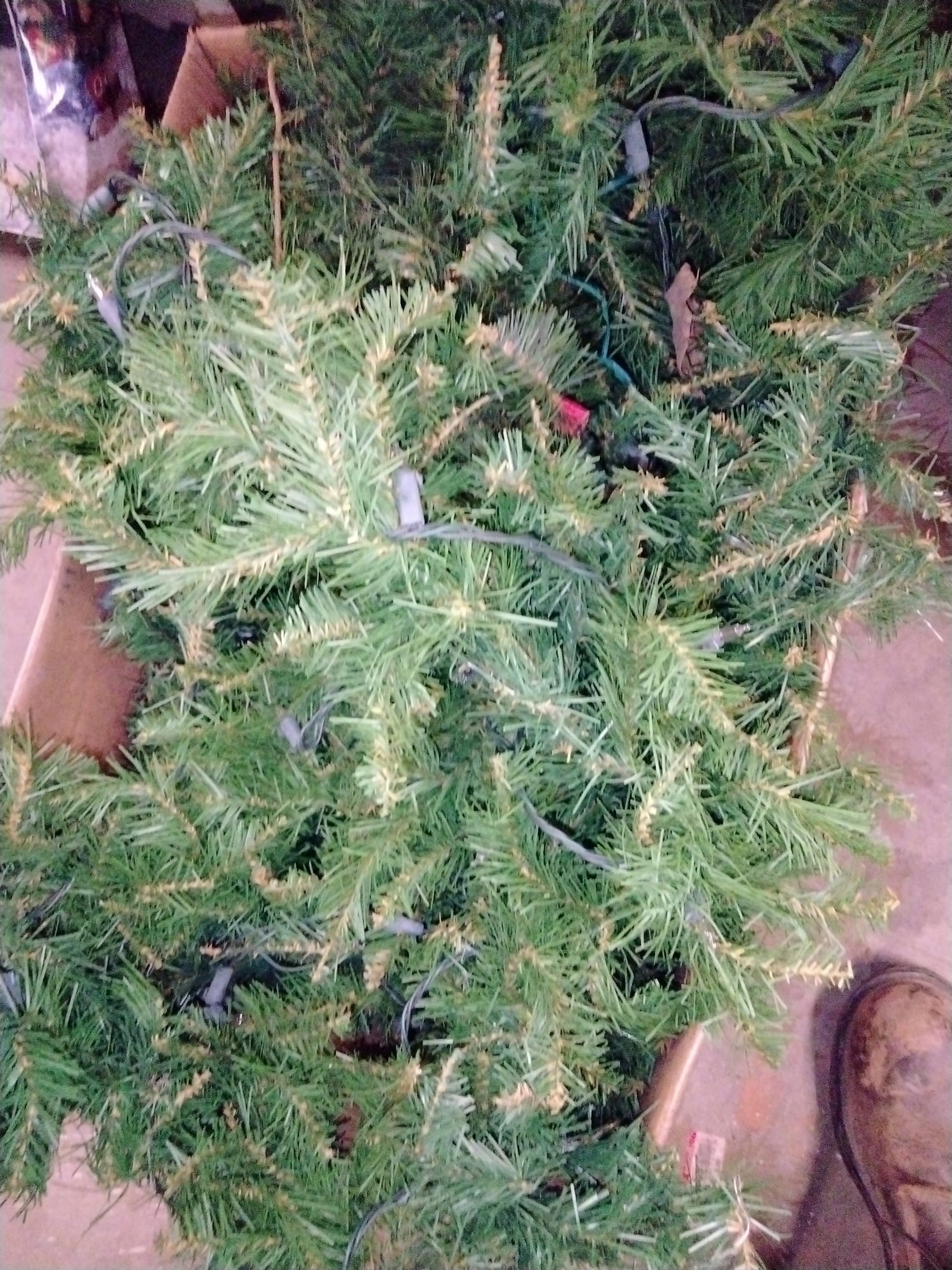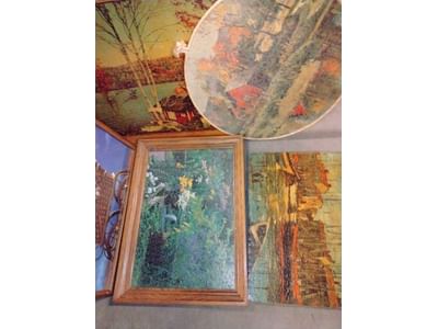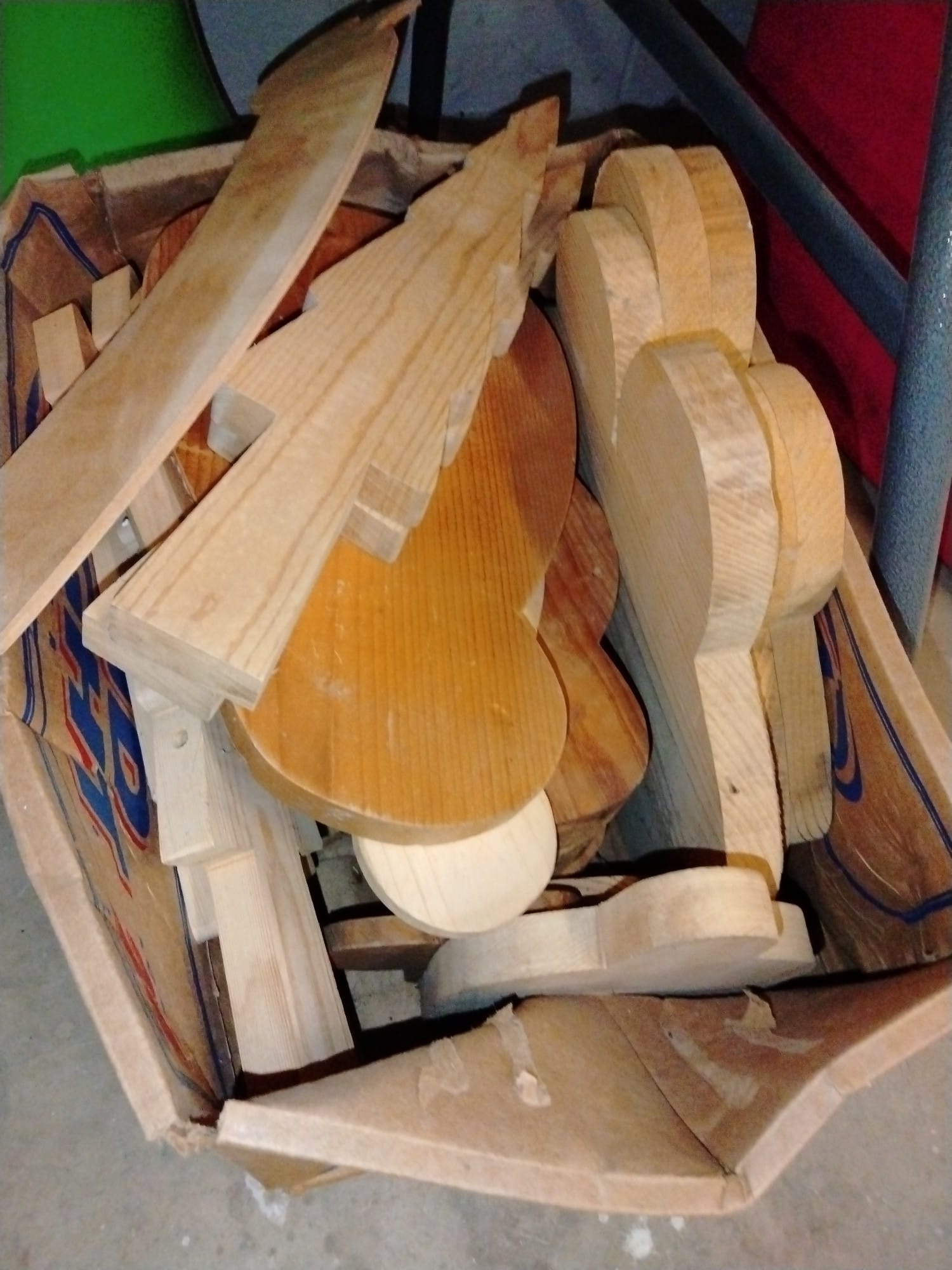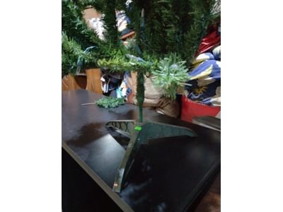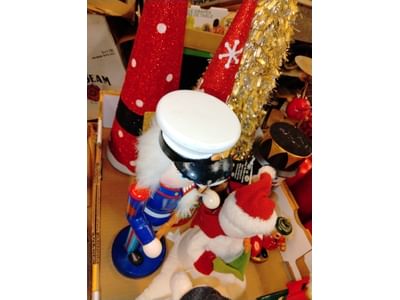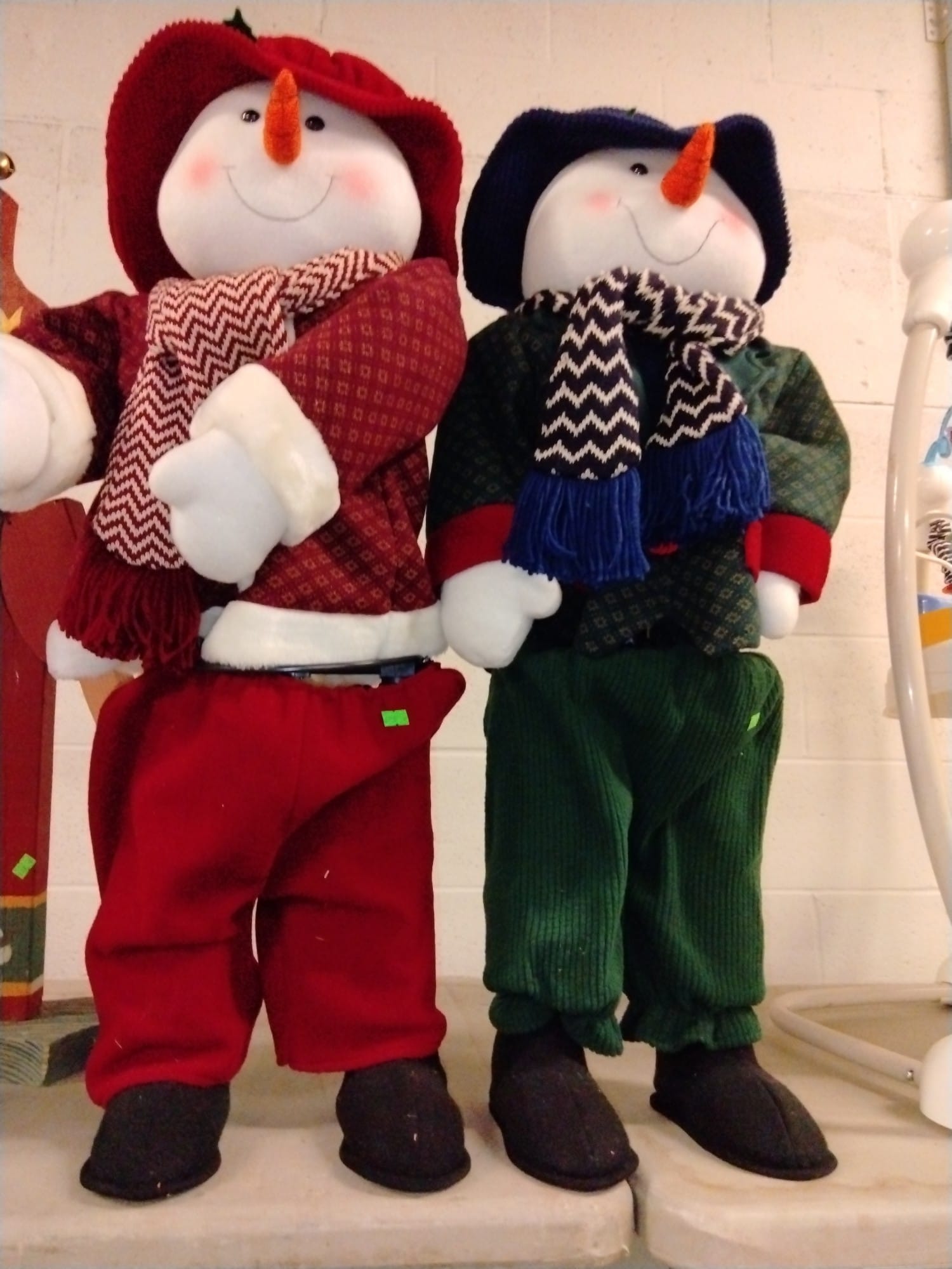 825 Wood Christmas tree cutouts, snowmen and assortment, pedestal