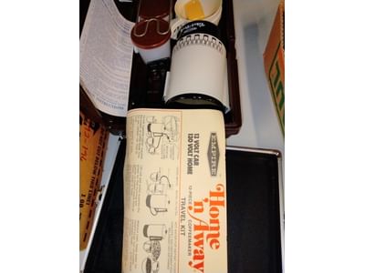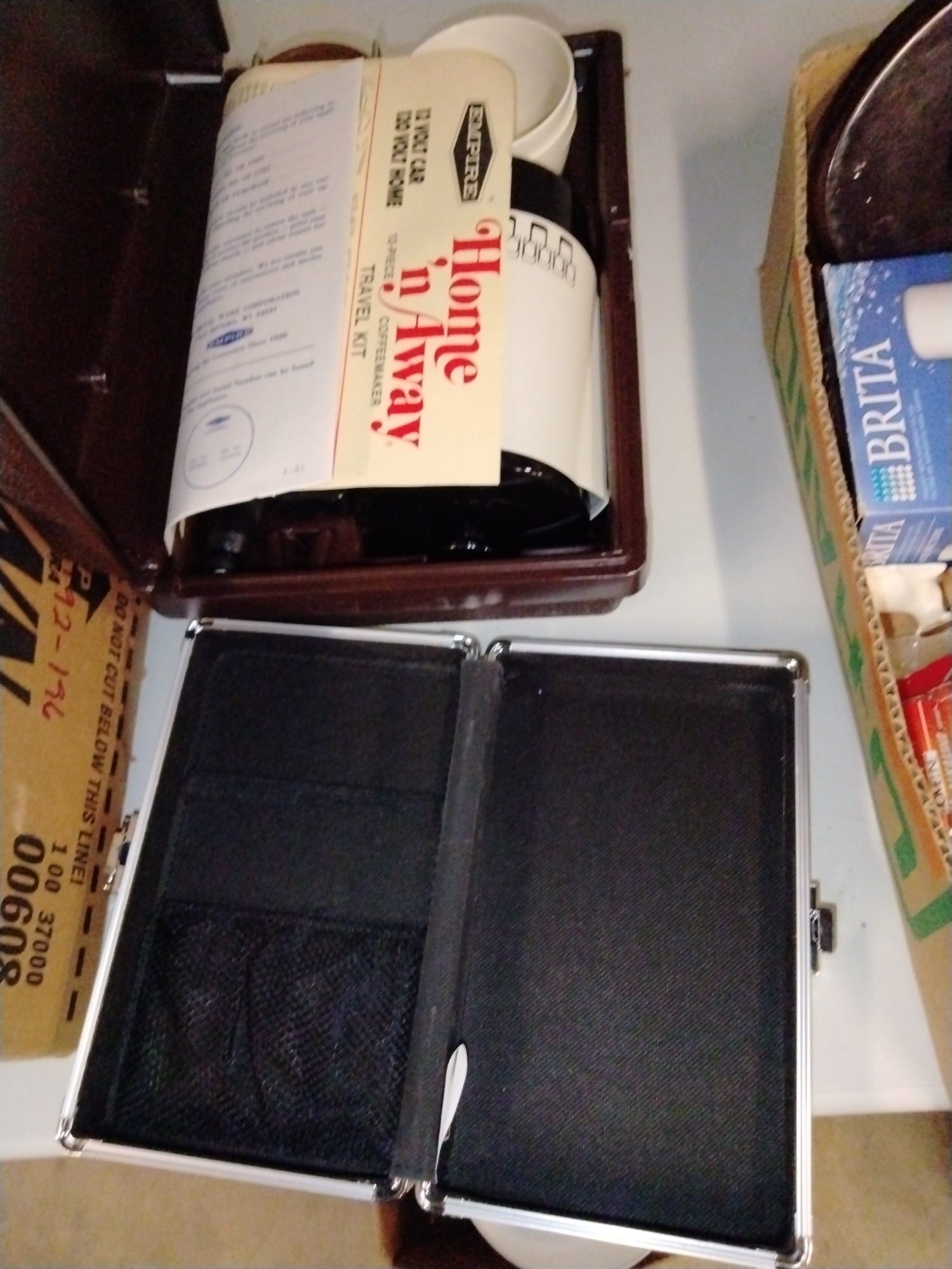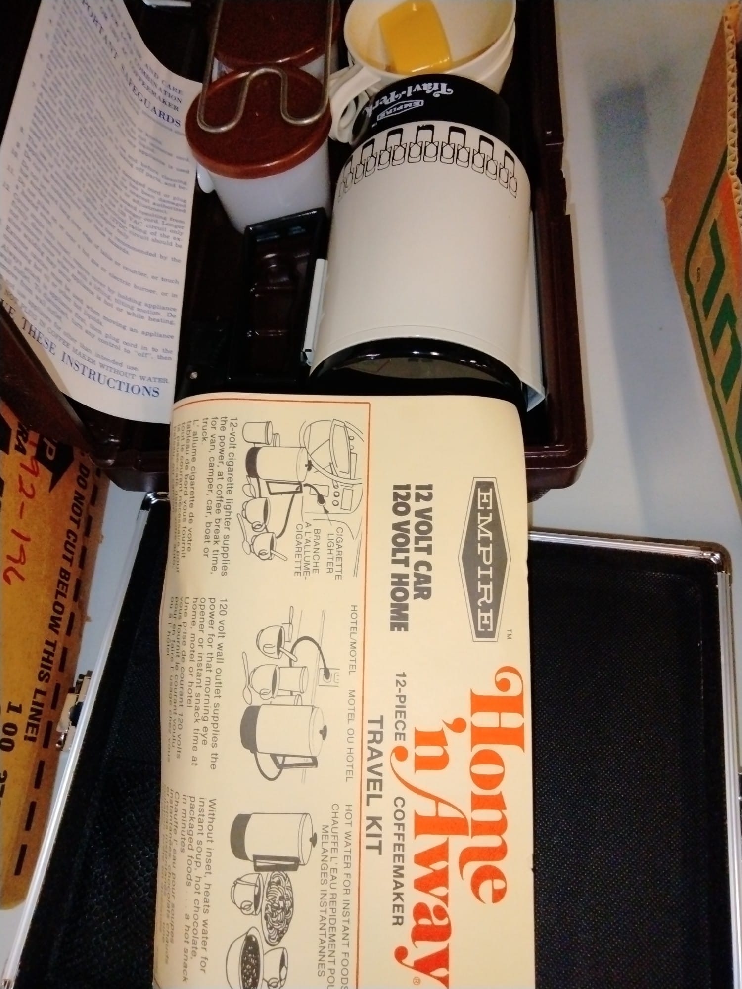 752 Coffee maker travel kit, box, light, tin, miscellaneous