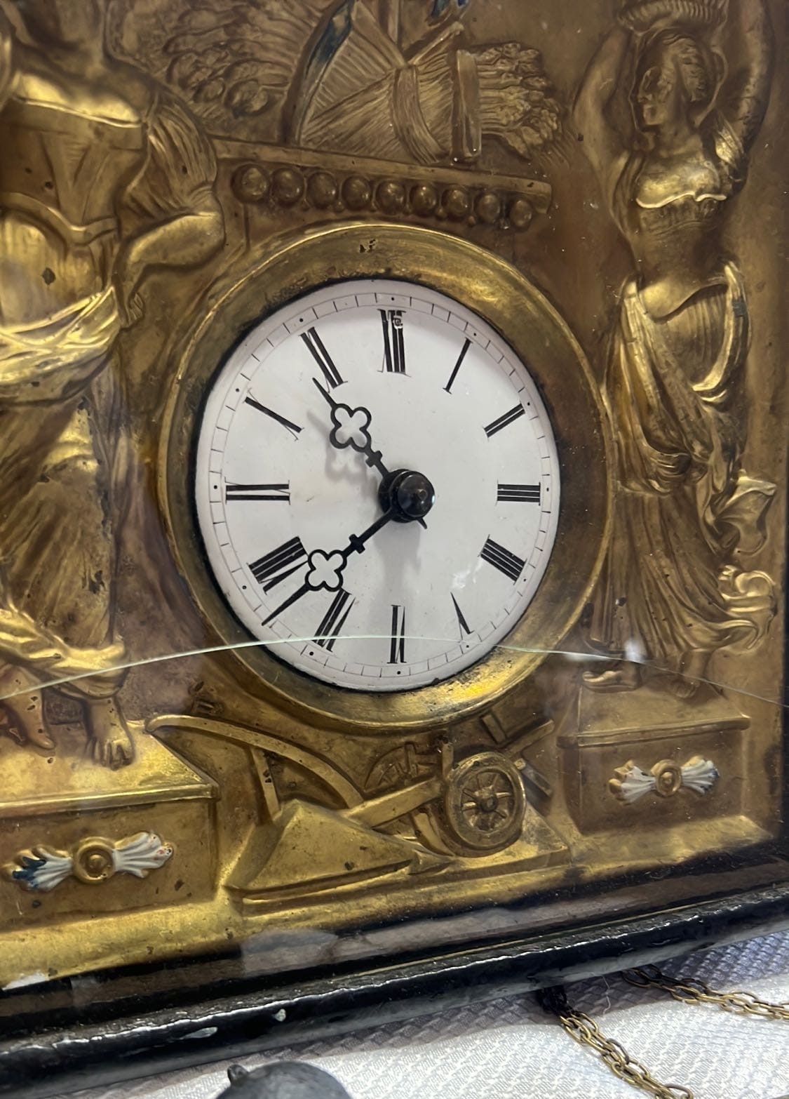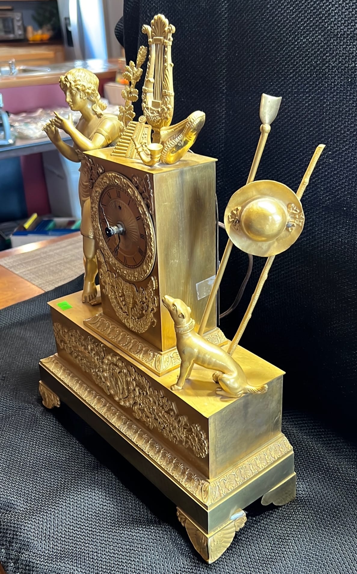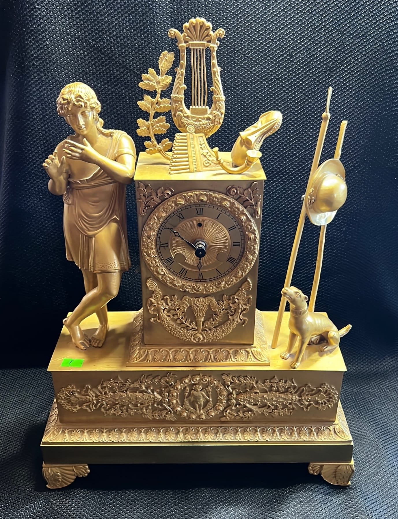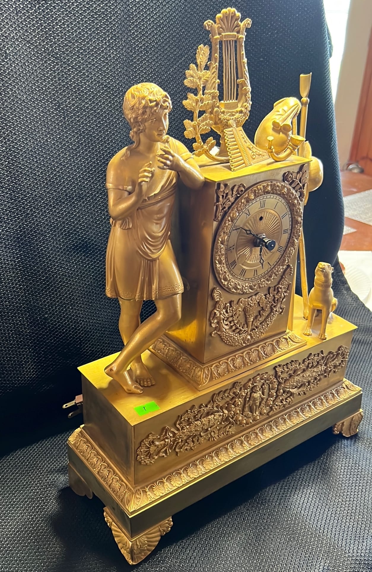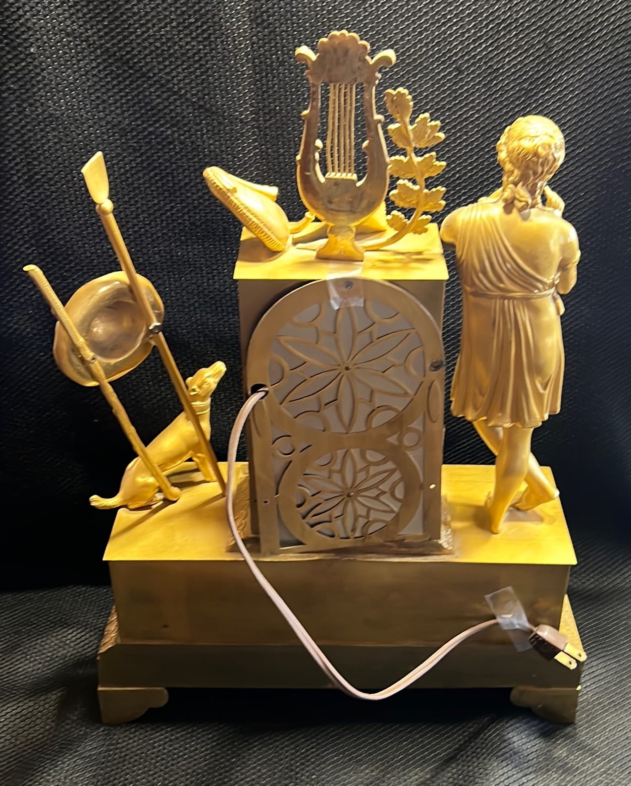 1 Early 1800’s guilt bronze Charles X clock (18.5x13), covered w/ gold leaf - Very rare clock w/ original works updated to electric