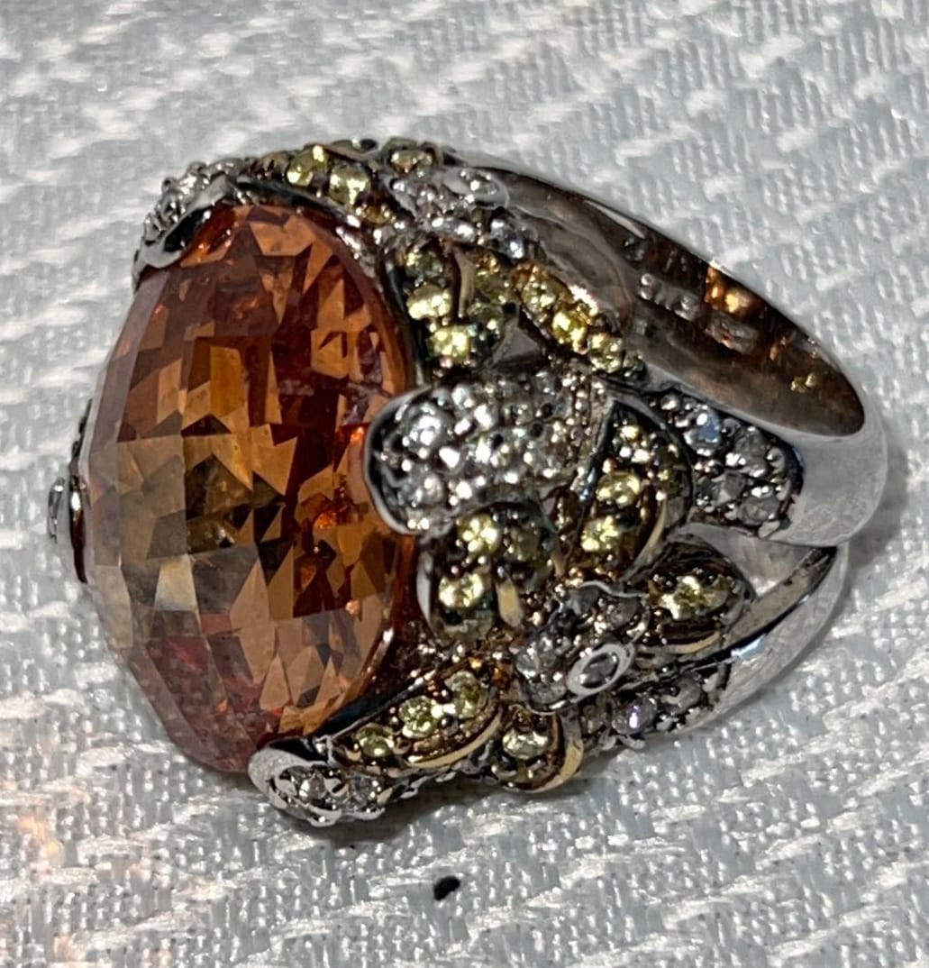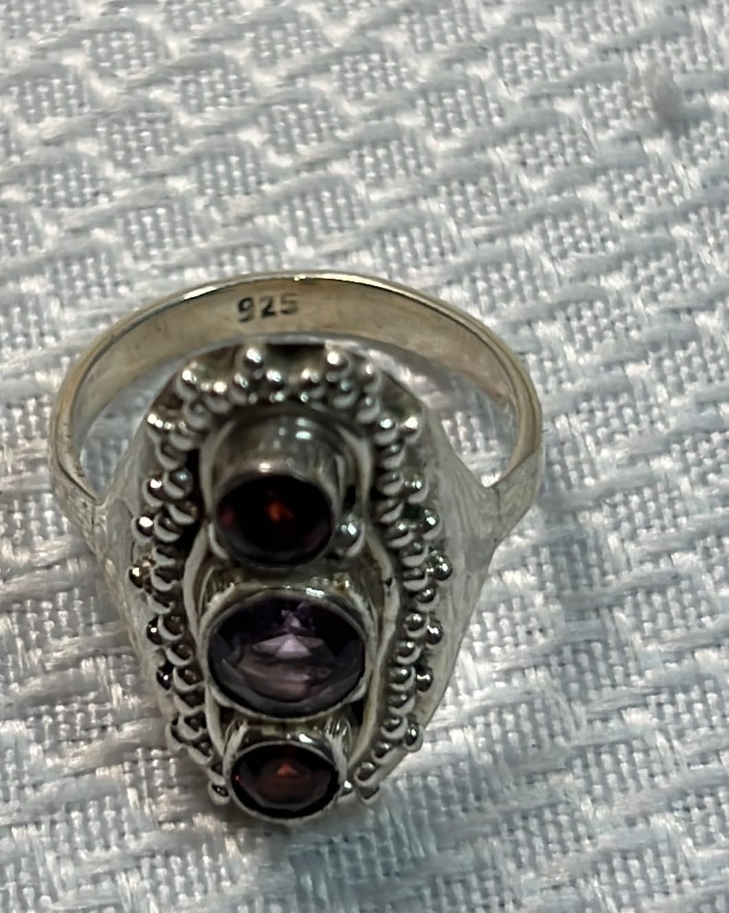 46 Vintage Sterling Silver Ring w/ 3 gemstones