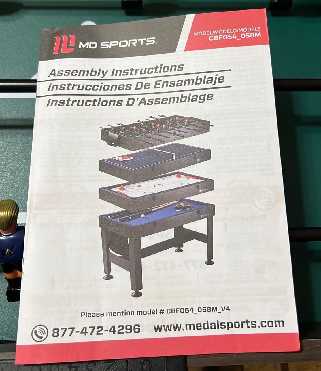 12 MD Sports CBF 054-058M 4-in-1 Game table includes Pool, Ping Pong, Air Hockey, Foose Ball - newly assembled (brand new $349 retail)