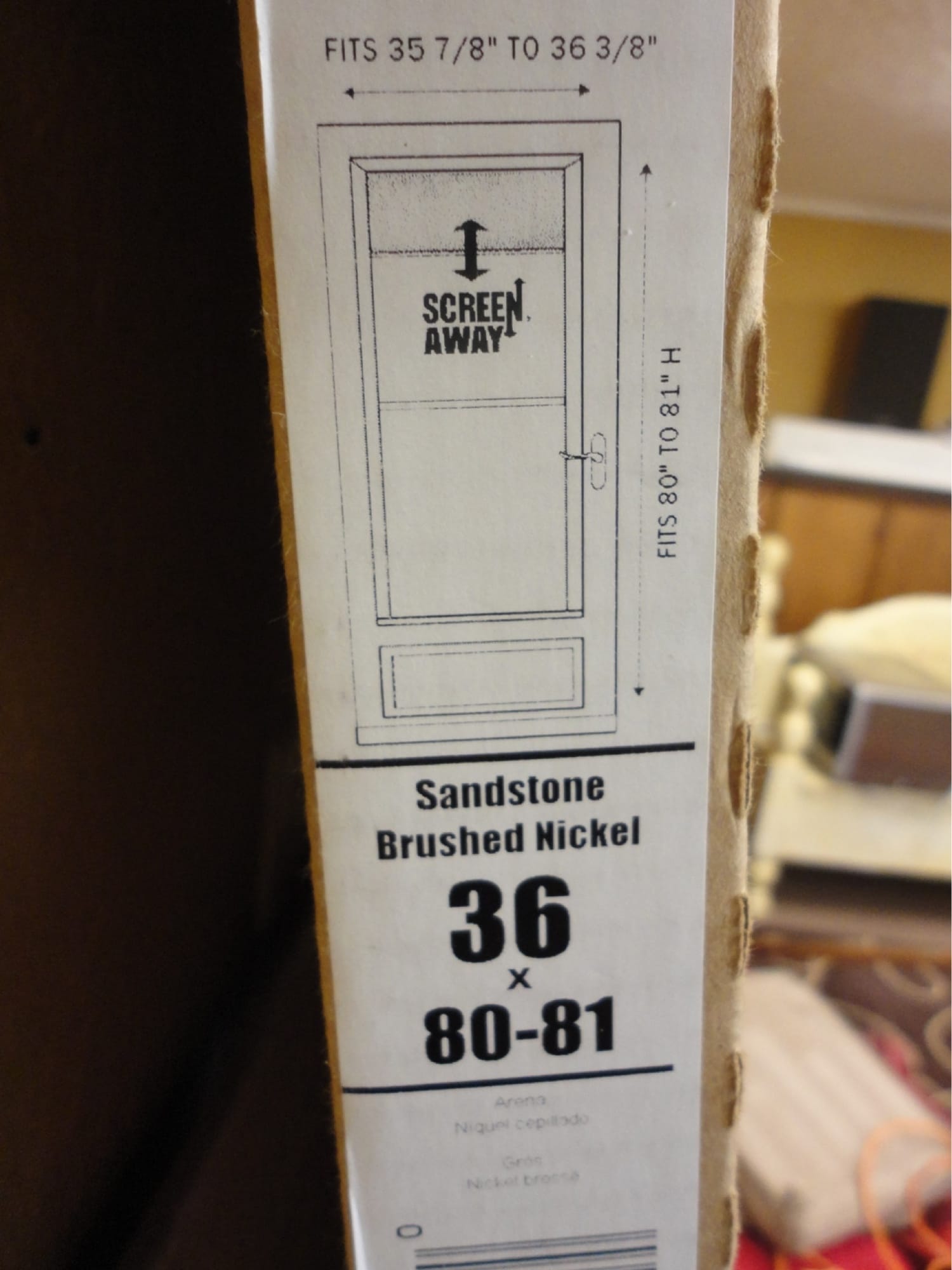 18 NIB Larson High Grade Screen Door Sandstone color w/ brushed nickle 36”x 80-81” Lifestyle mid-view type door ($299 retail)