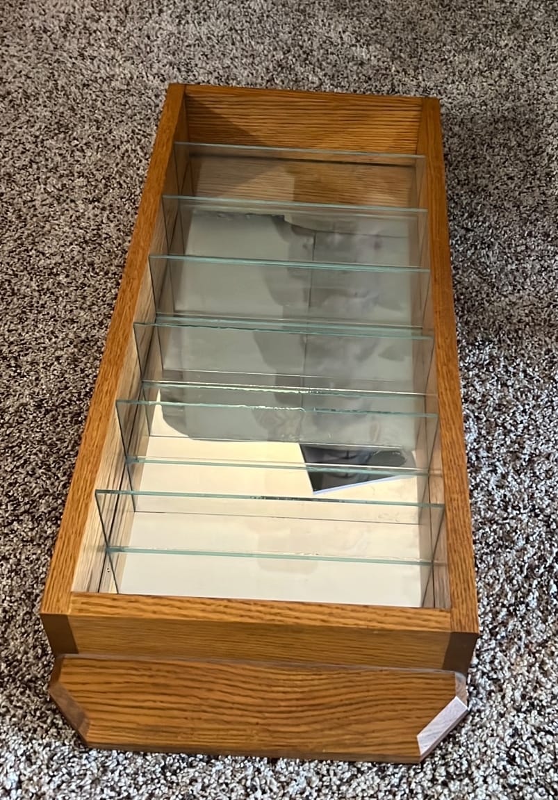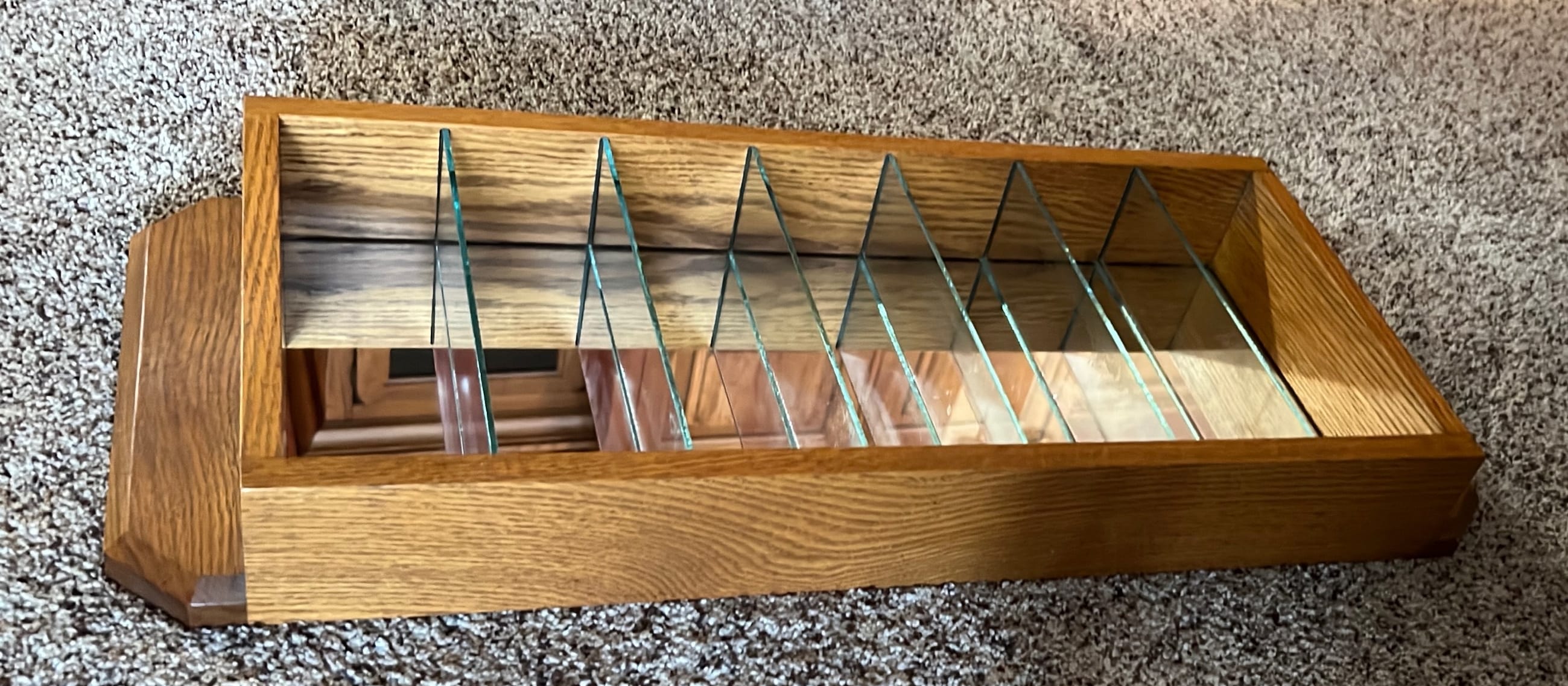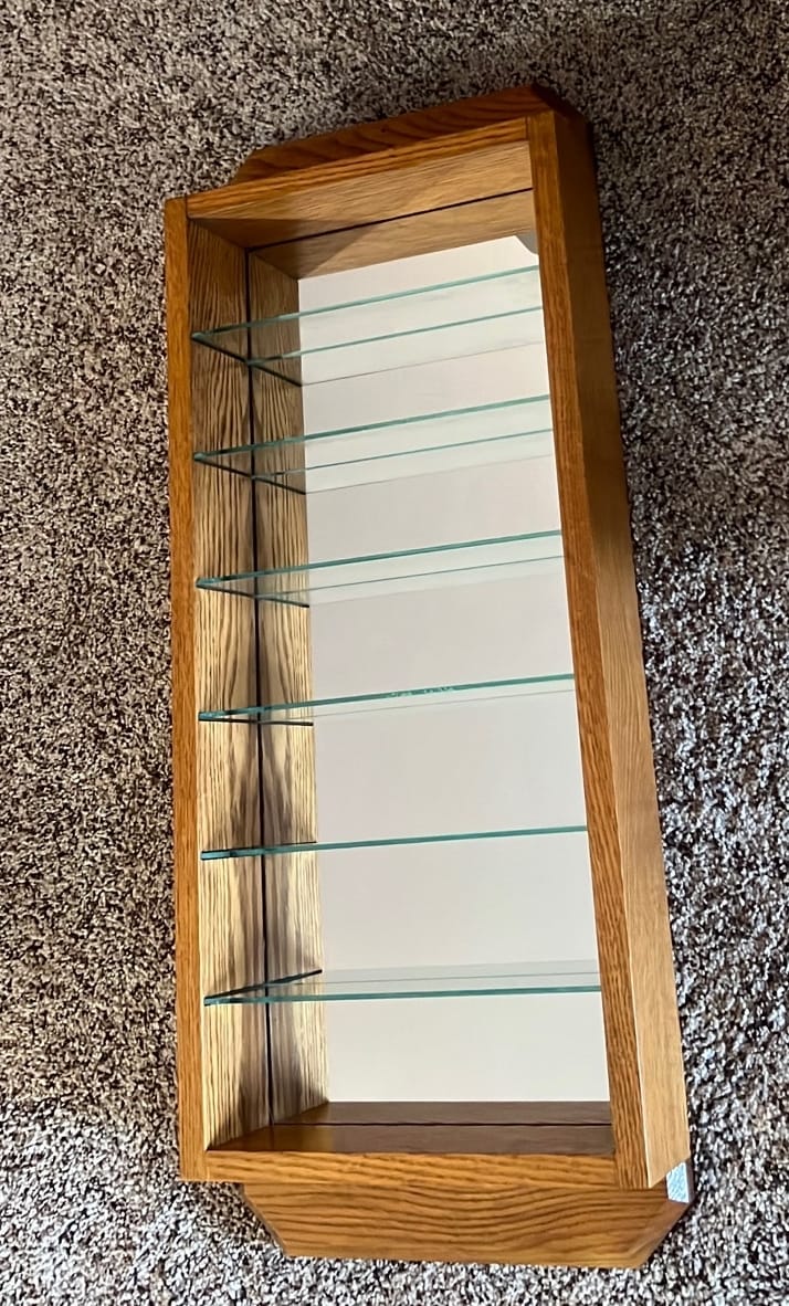 23c Hanging Solid Oak 6 Glass Mirror Shelf 10” wide x 3” deep x 24” tall