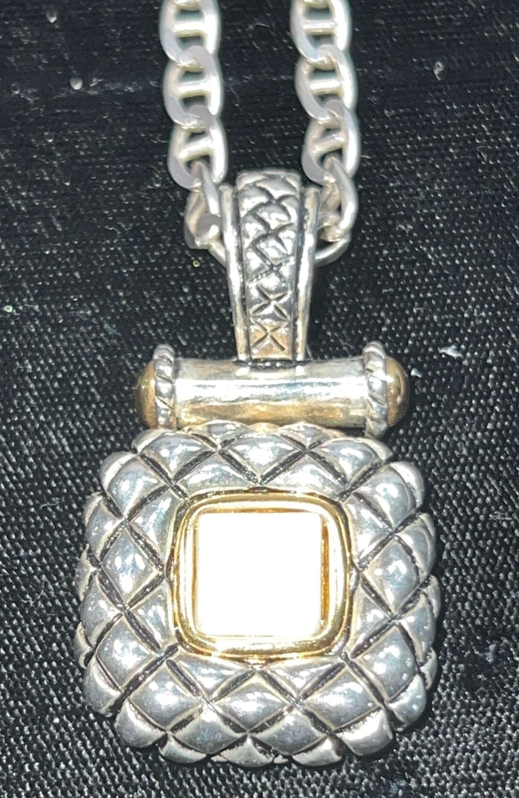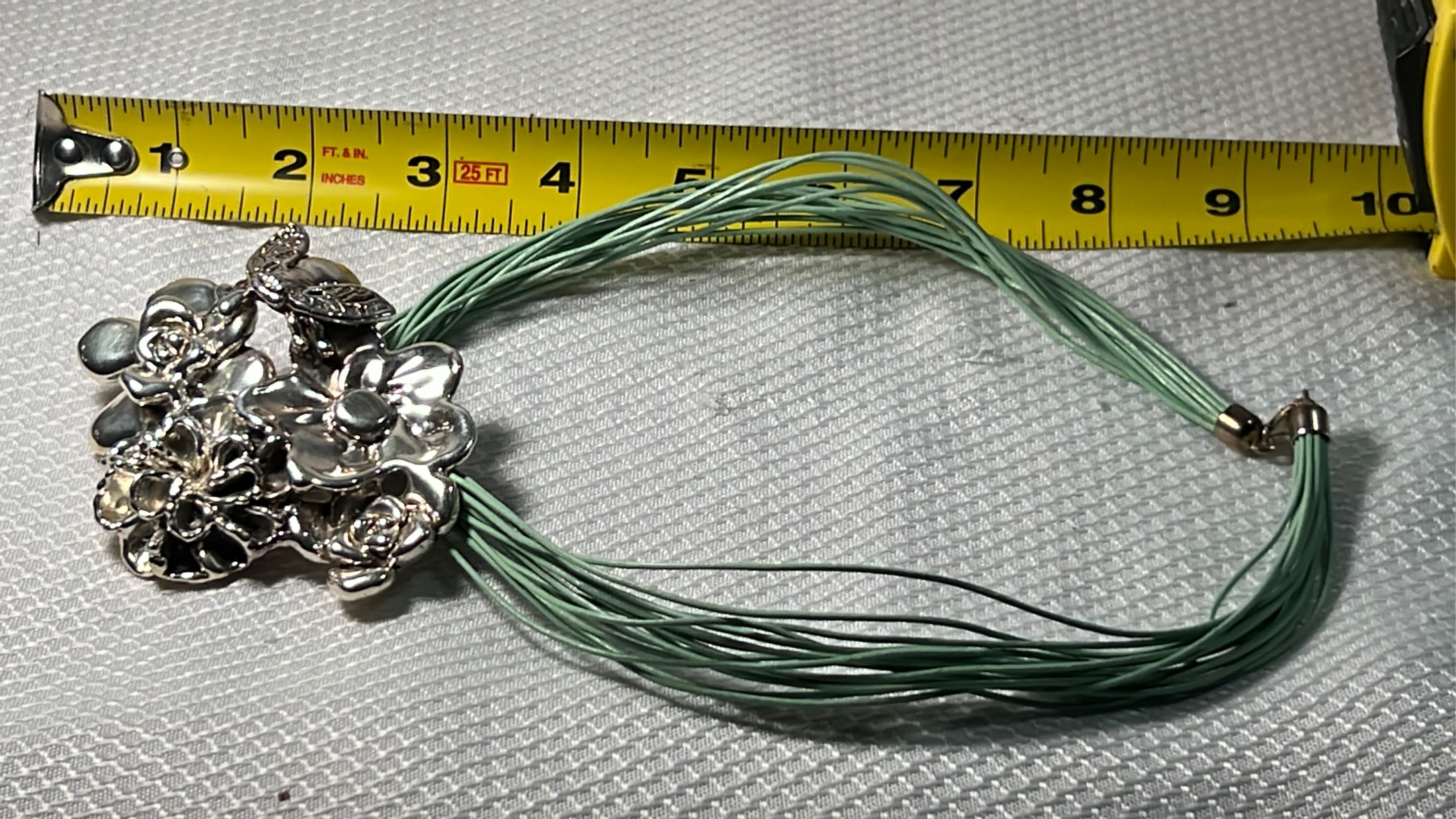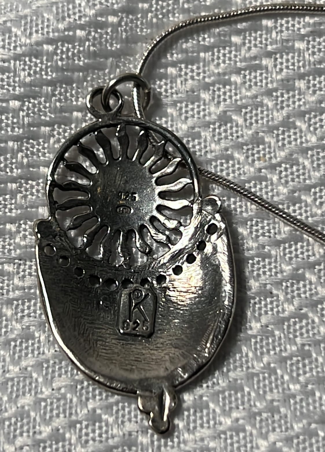 42 Vintage Sterling Silver Pendant on Green Rope Chain