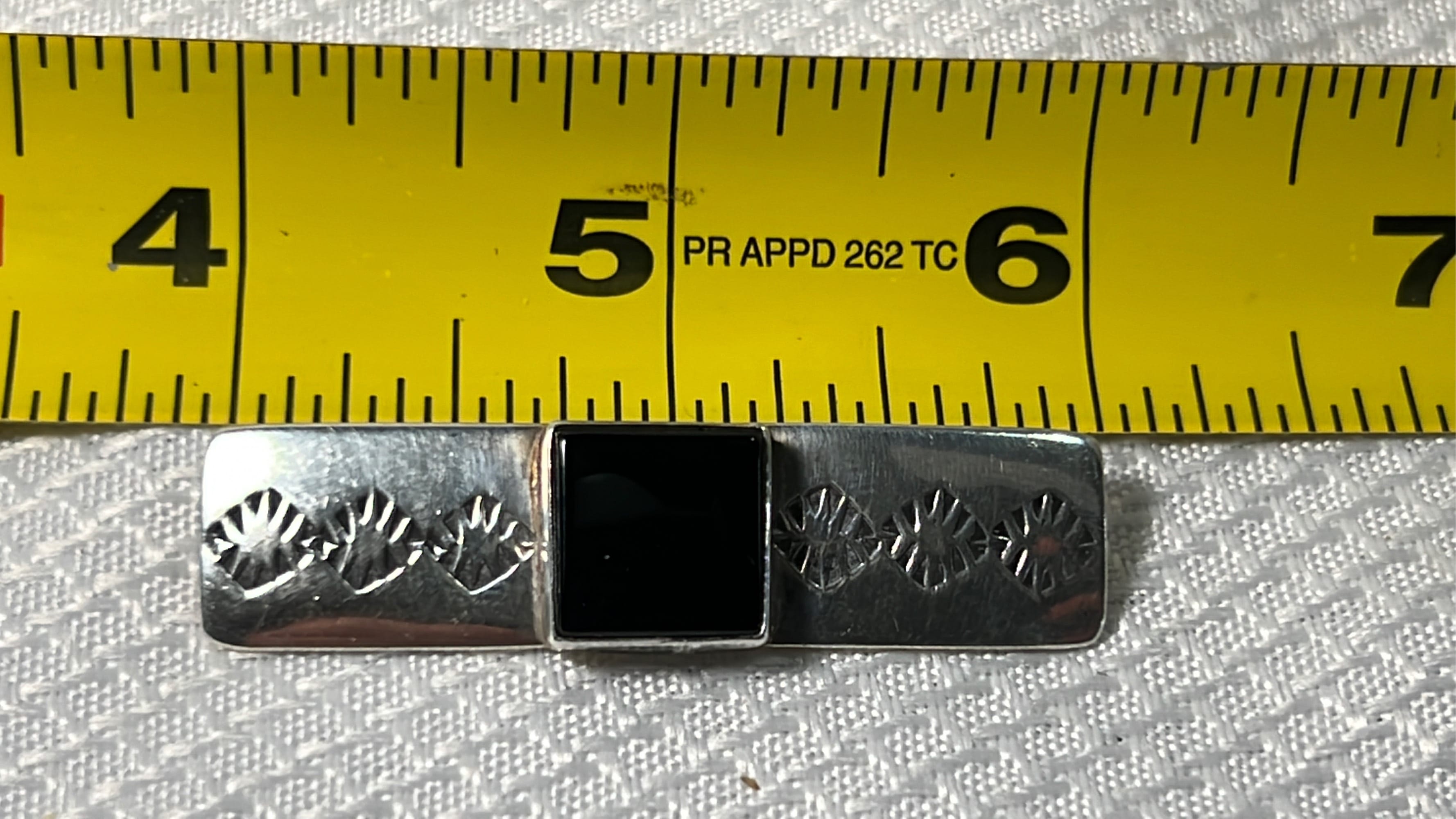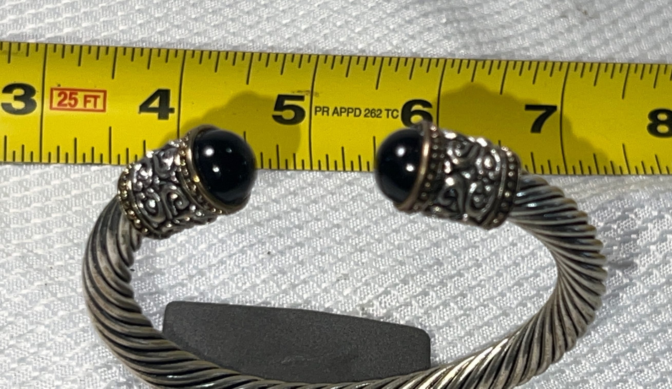 64 Vintage Unique Black Onyx Cable Cuff Bracelet, possible Sterling