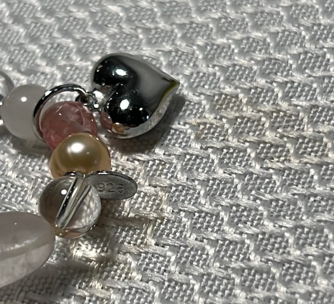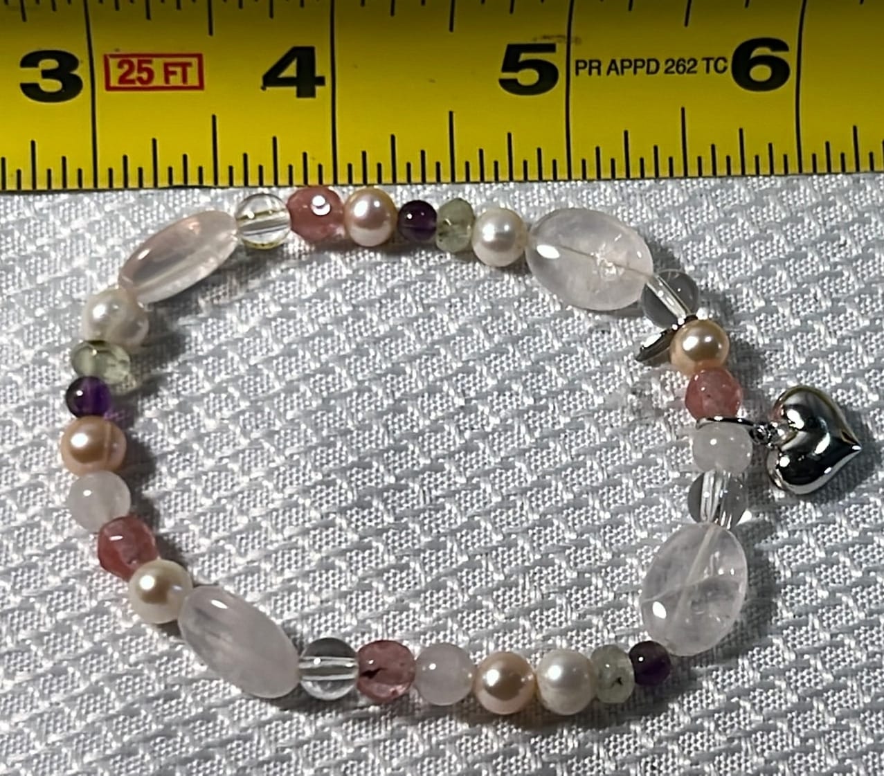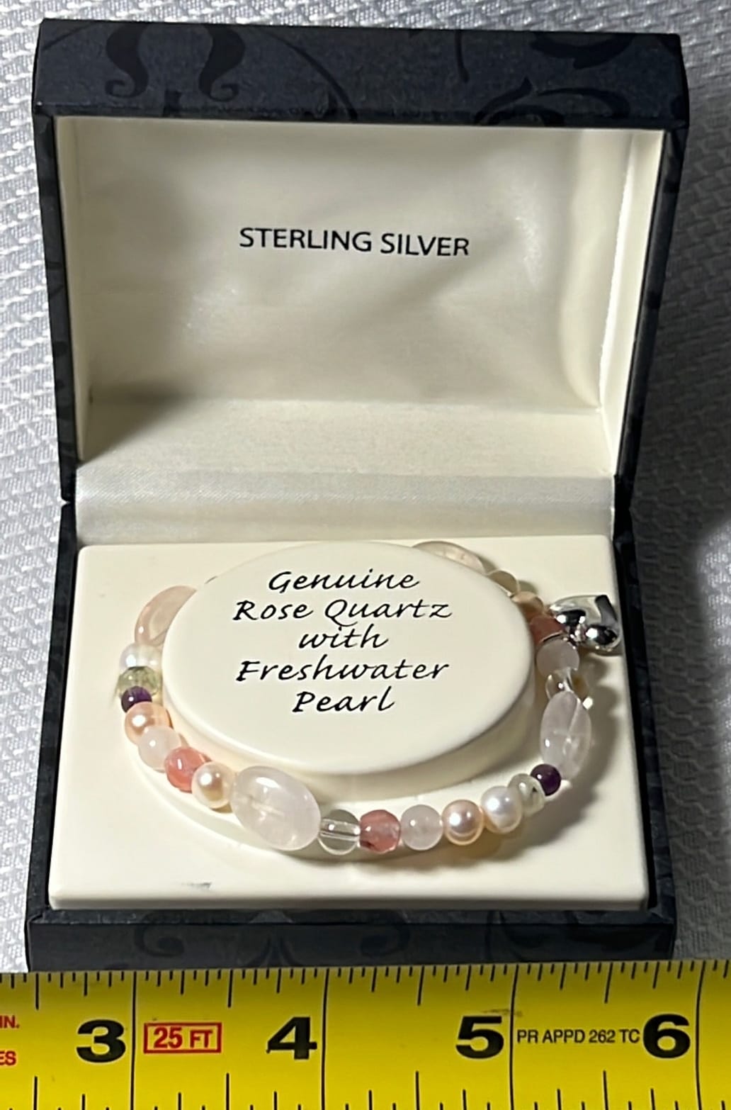 56 Sterling Silver Genuine Rose Quartz w/ Freshwater Pearl Bracelet