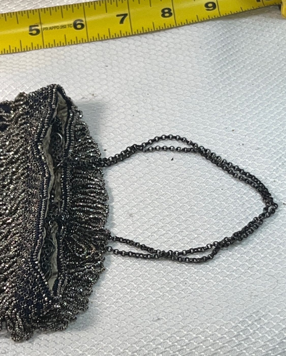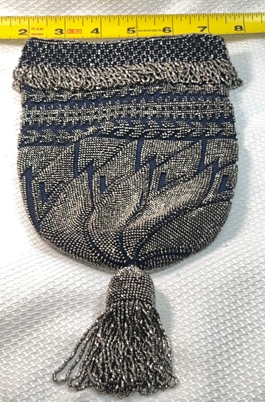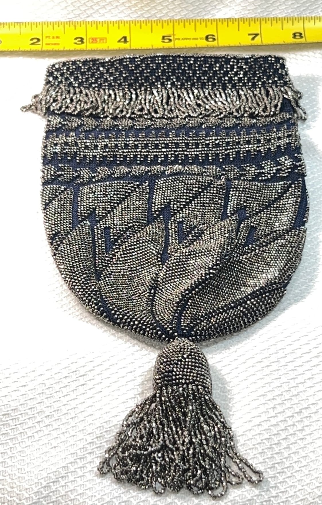 75 Early 20th Century Beaded Crotchet Reticule Purse with Greek Key Motif