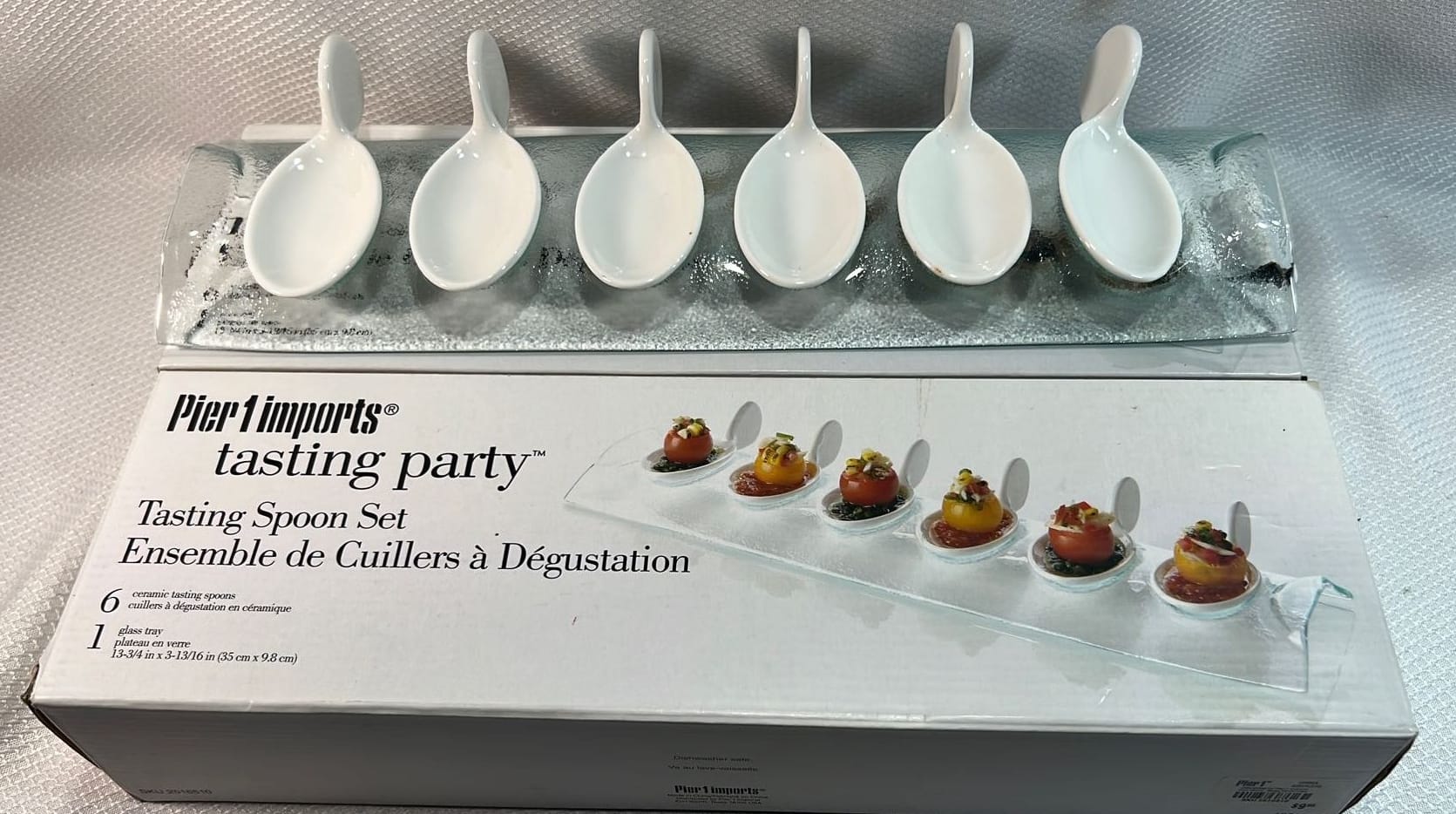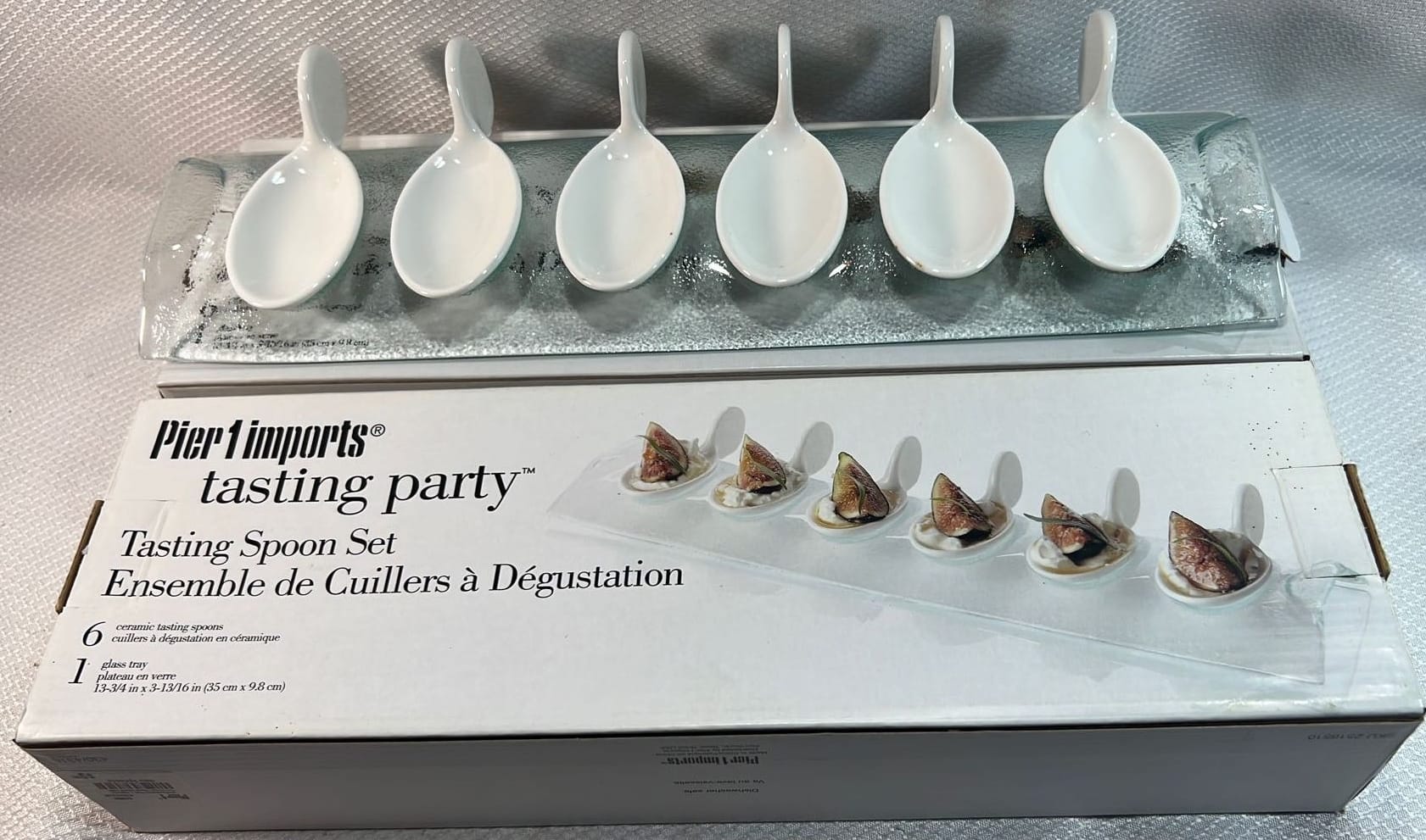 270 NIB (2) Pier 1 Imports tasting party including Tasting Spoon set & Glass Tray