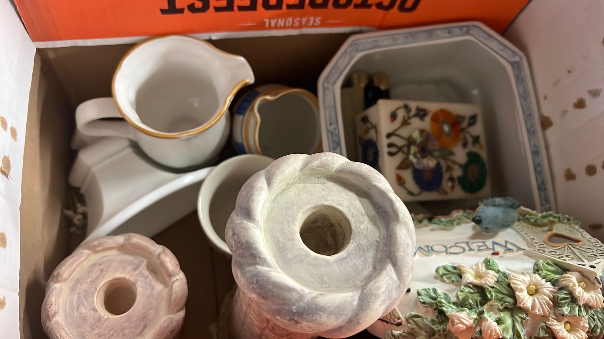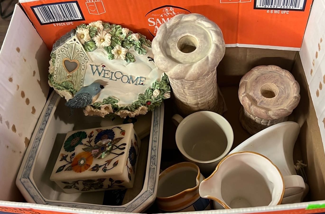 294 Mikasa Pitcher, Jewelry box, Candle Holders, Bowl, Musical Welcome Sign