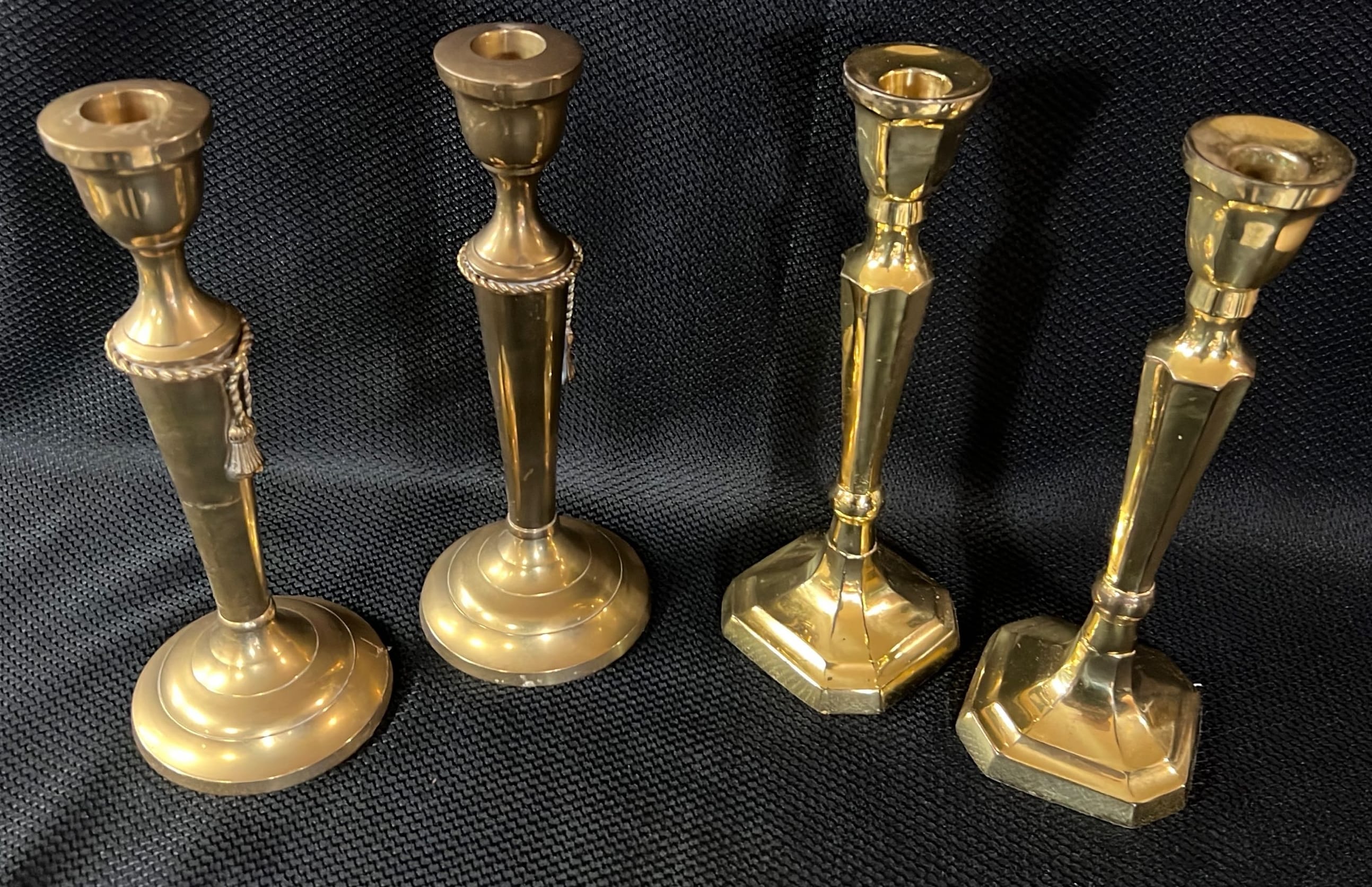 316 2 Pair Brass Candlesticks 8”, 9.5”