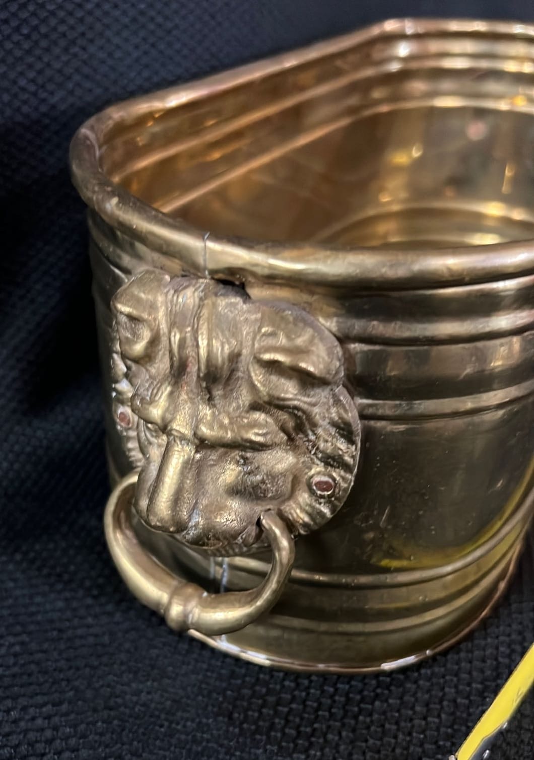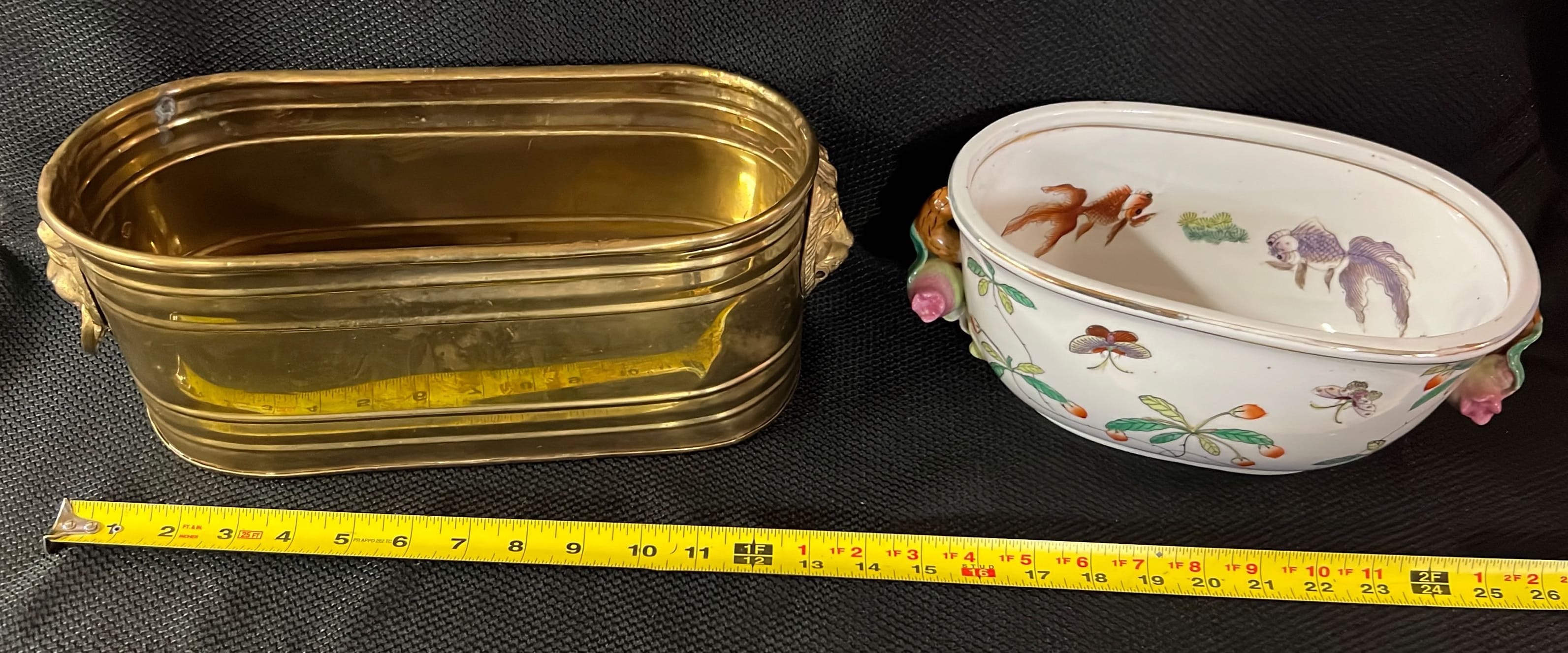 320 Brass Planter (missing one ring), Porcelain Planter with Two Handles