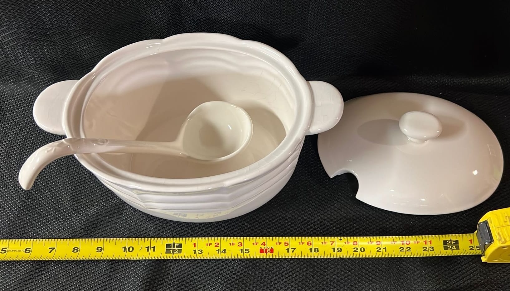 269 Small Porcelain Tureen with Double Handle Blue, yellow & white