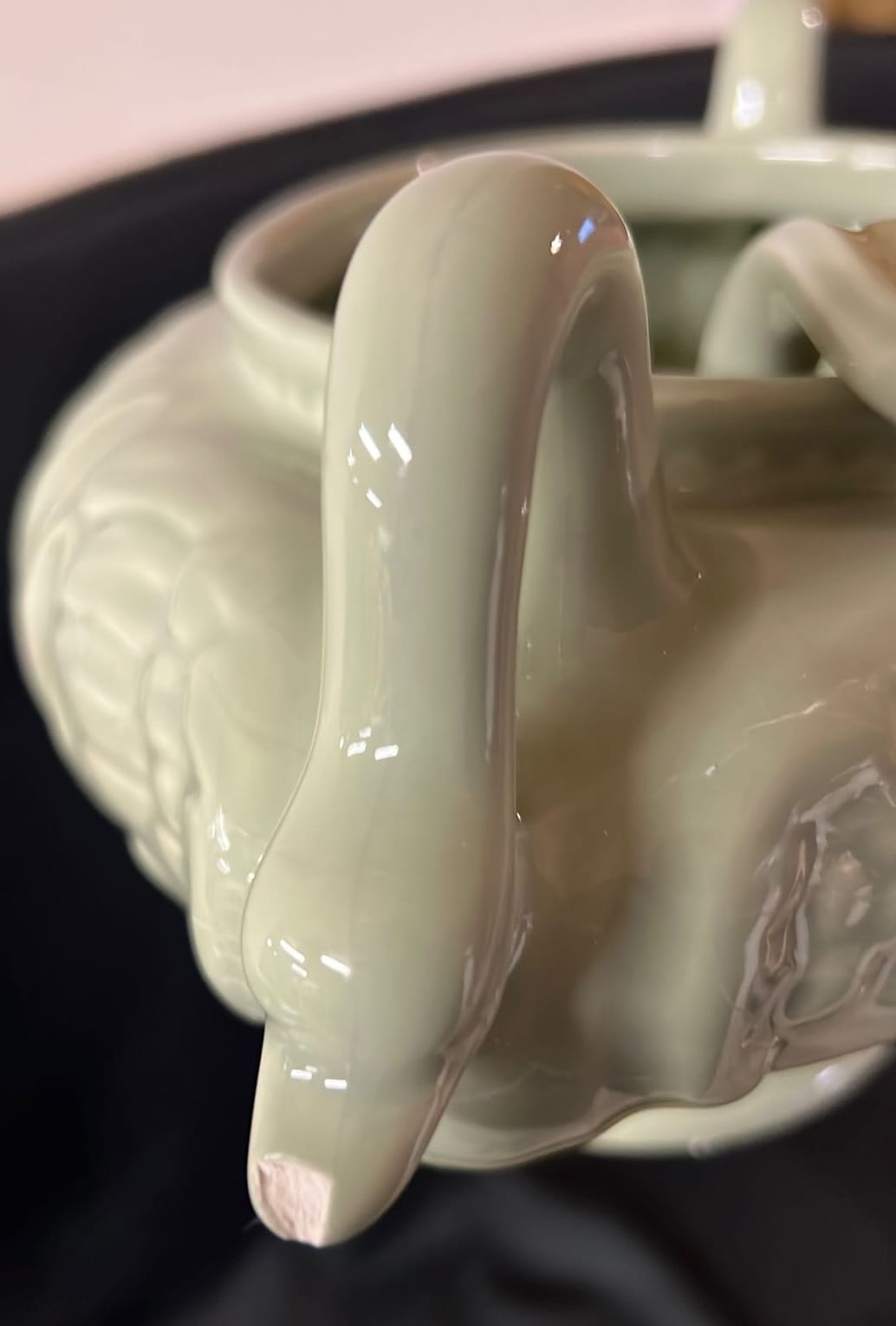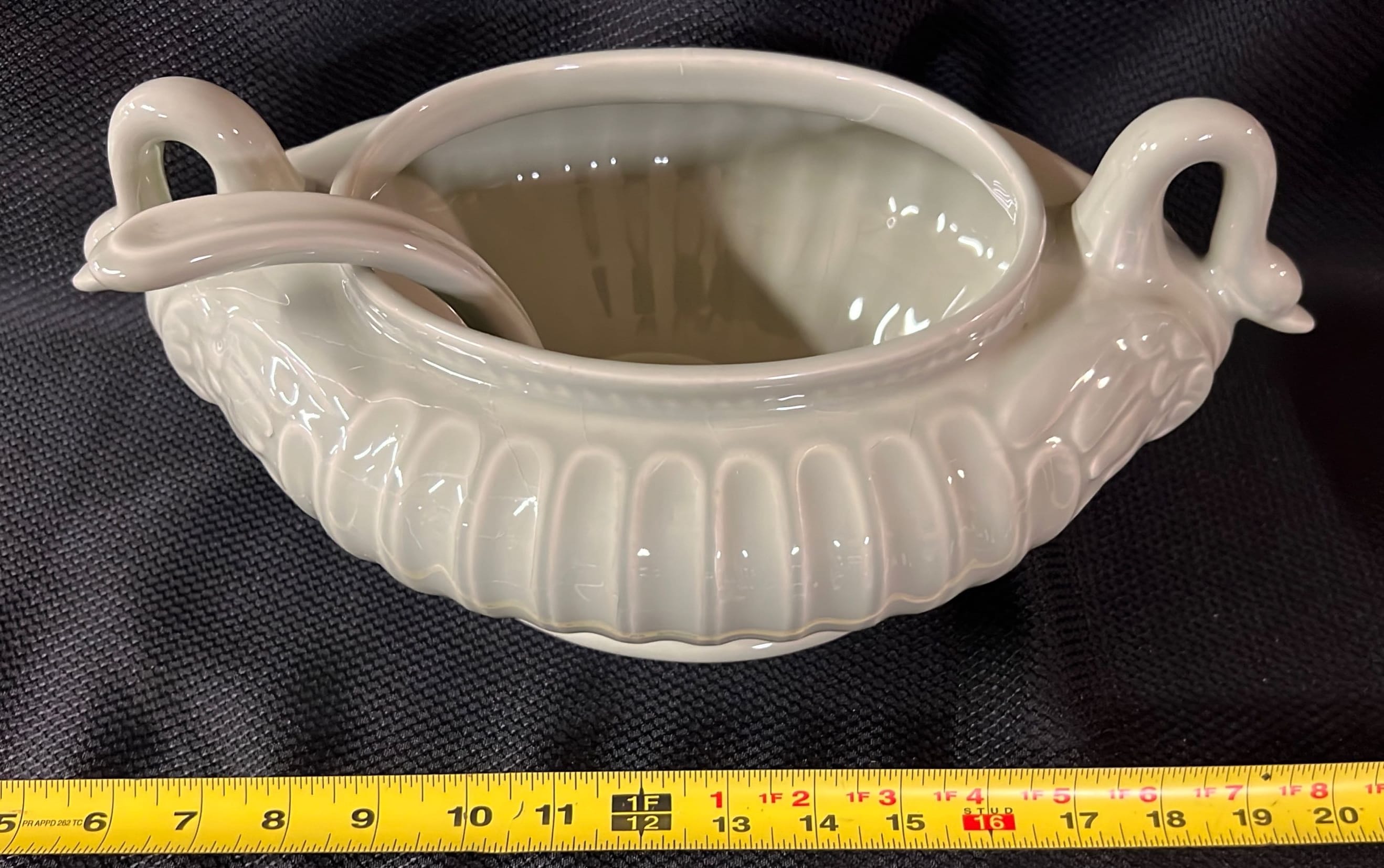 325 Green Tureen with Spoon (missing lid and has chip on swan)