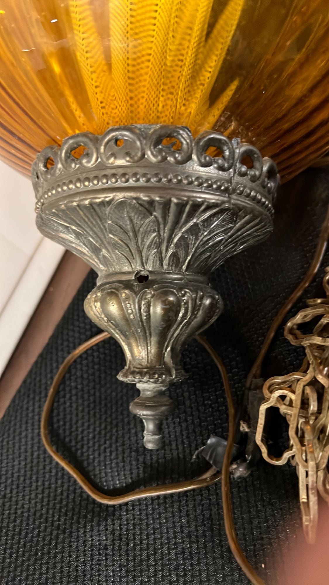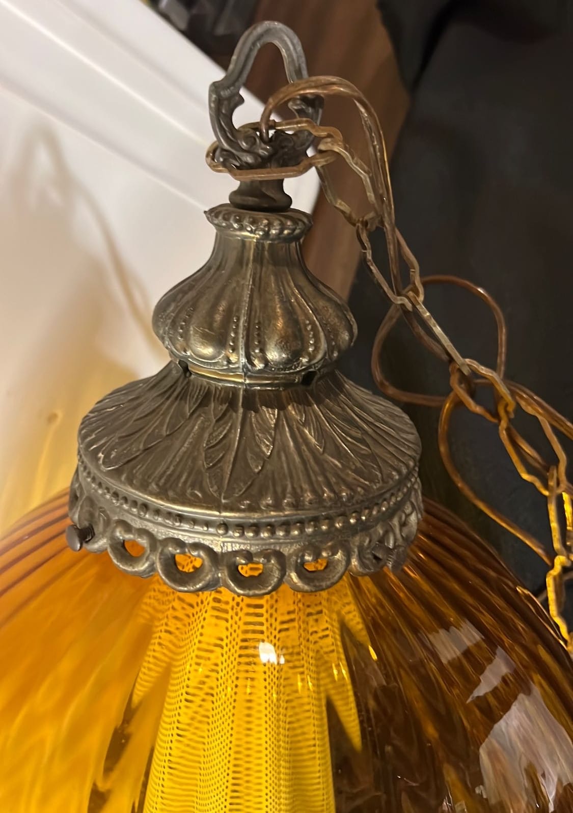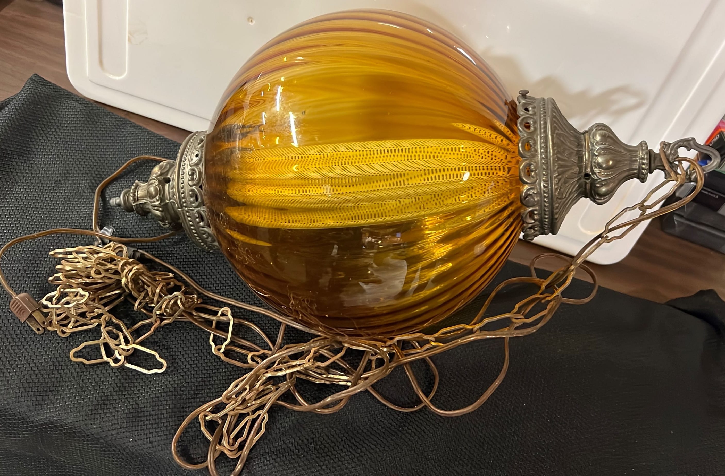334 Vintage Amber Pendant Hanging Light 24” (in working condition)